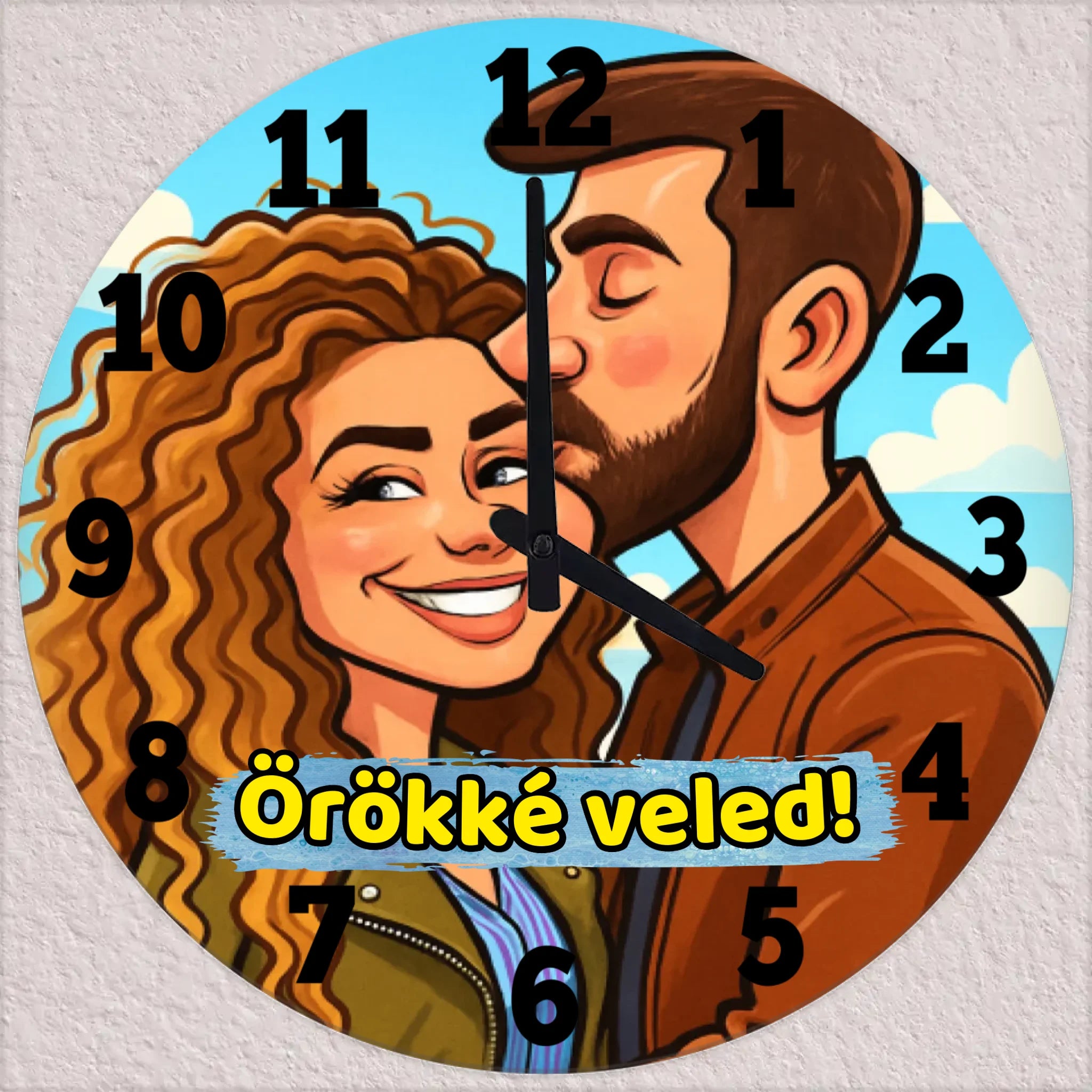 A faliórák prémium anyagokból készülnek: a 30 cm-es változat üvegből, a 20 cm-es pedig MDF-ből. A tartós, nem fakuló nyomat biztosítja, hogy a karikatúra hosszú éveken át megőrizze minőségét. Ideális ajándék születésnapra, évfordulóra, karácsonyra vagy bármilyen különleges alkalomra.