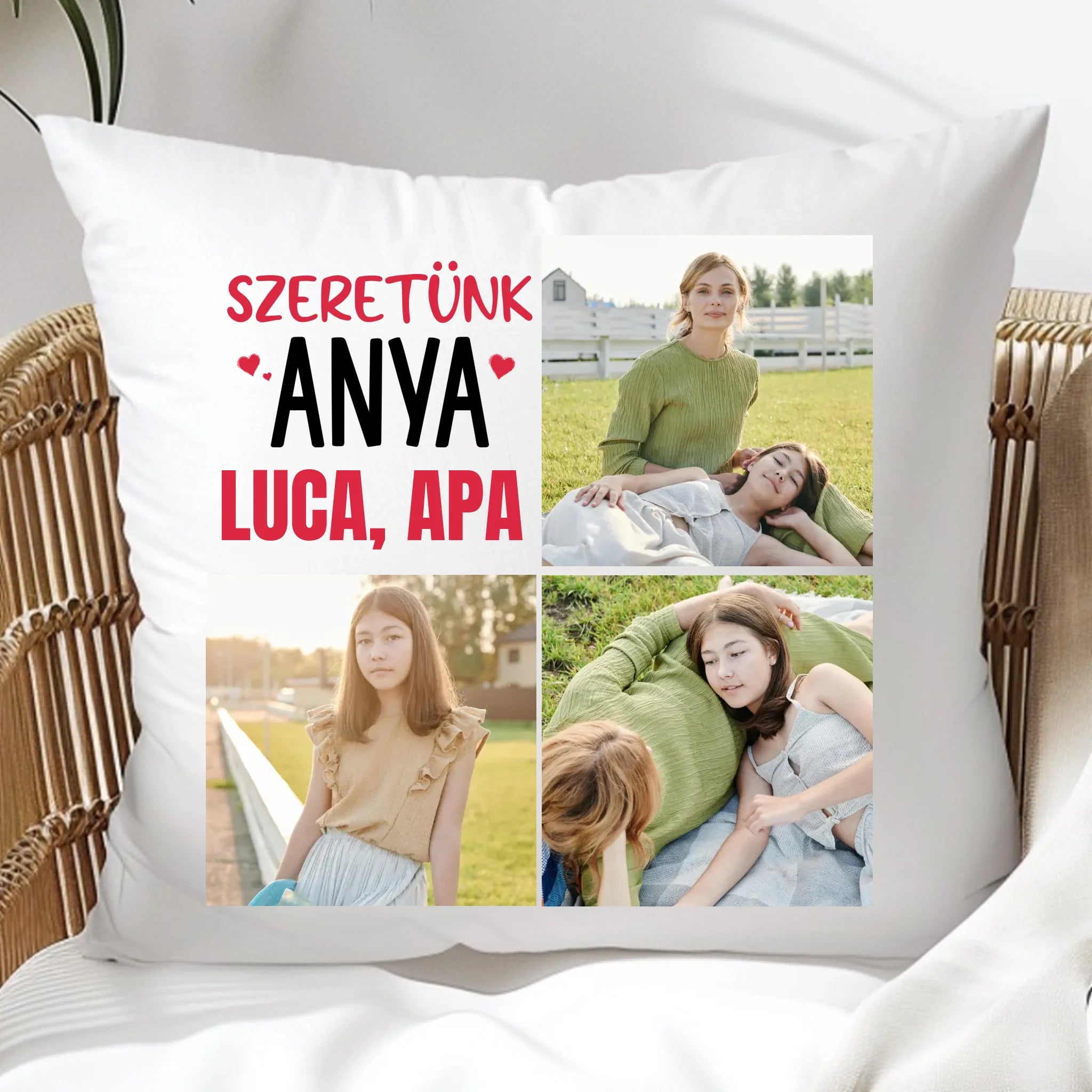Egyedi párna anyák napjára, melyre saját képet is kérhetsz. A kedves felirat garantálja, hogy mosolyt csalj édesanyád arcára, legyen szó anyák napjáról, születésnapról, névnapról vagy karácsonyról.