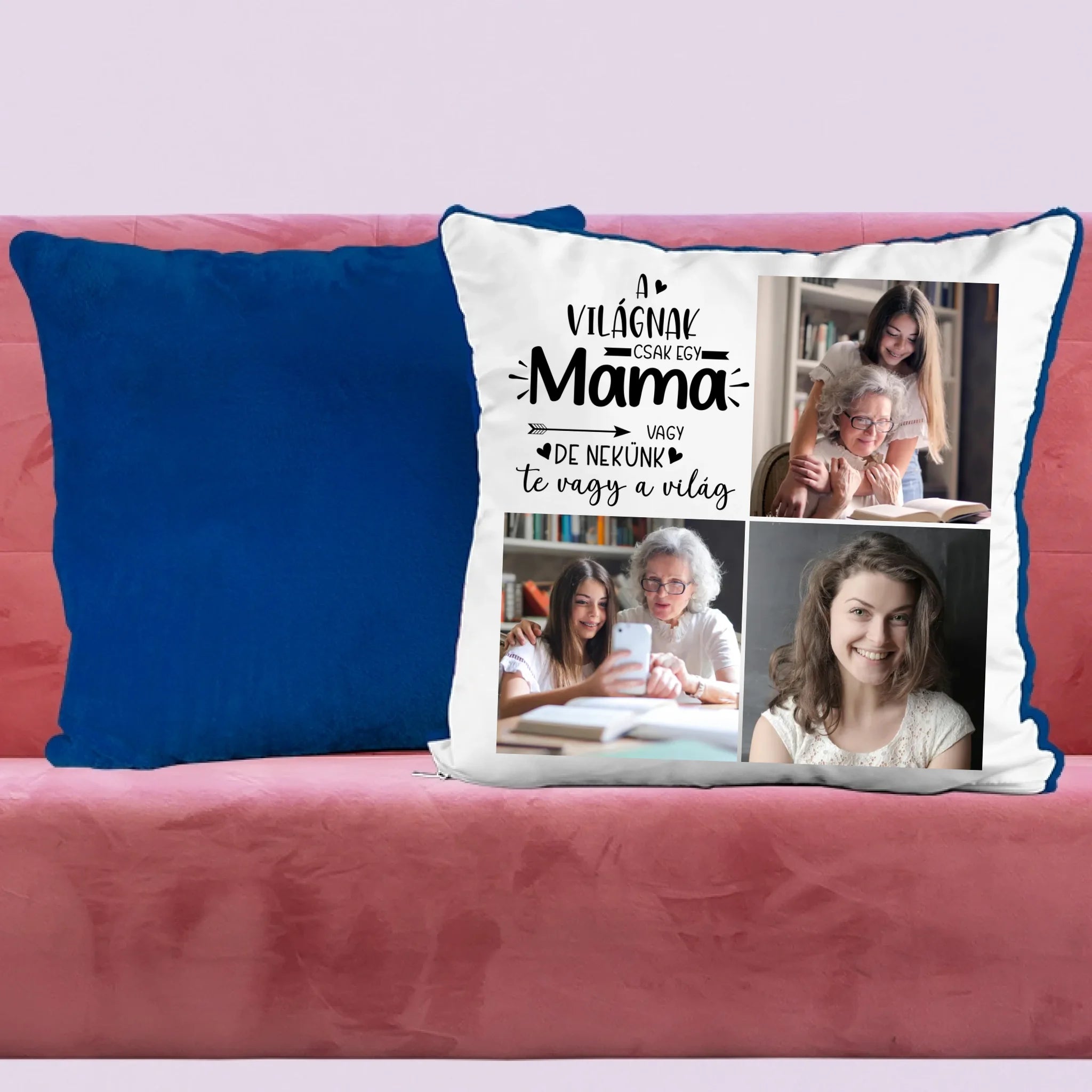 Egyedi fényképes párna mamának 3 fotóval és felirattal.