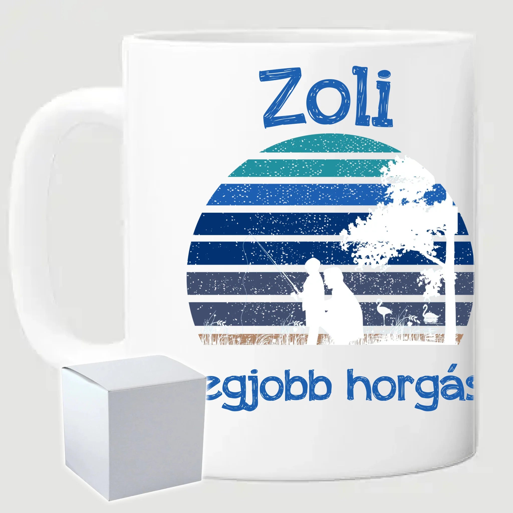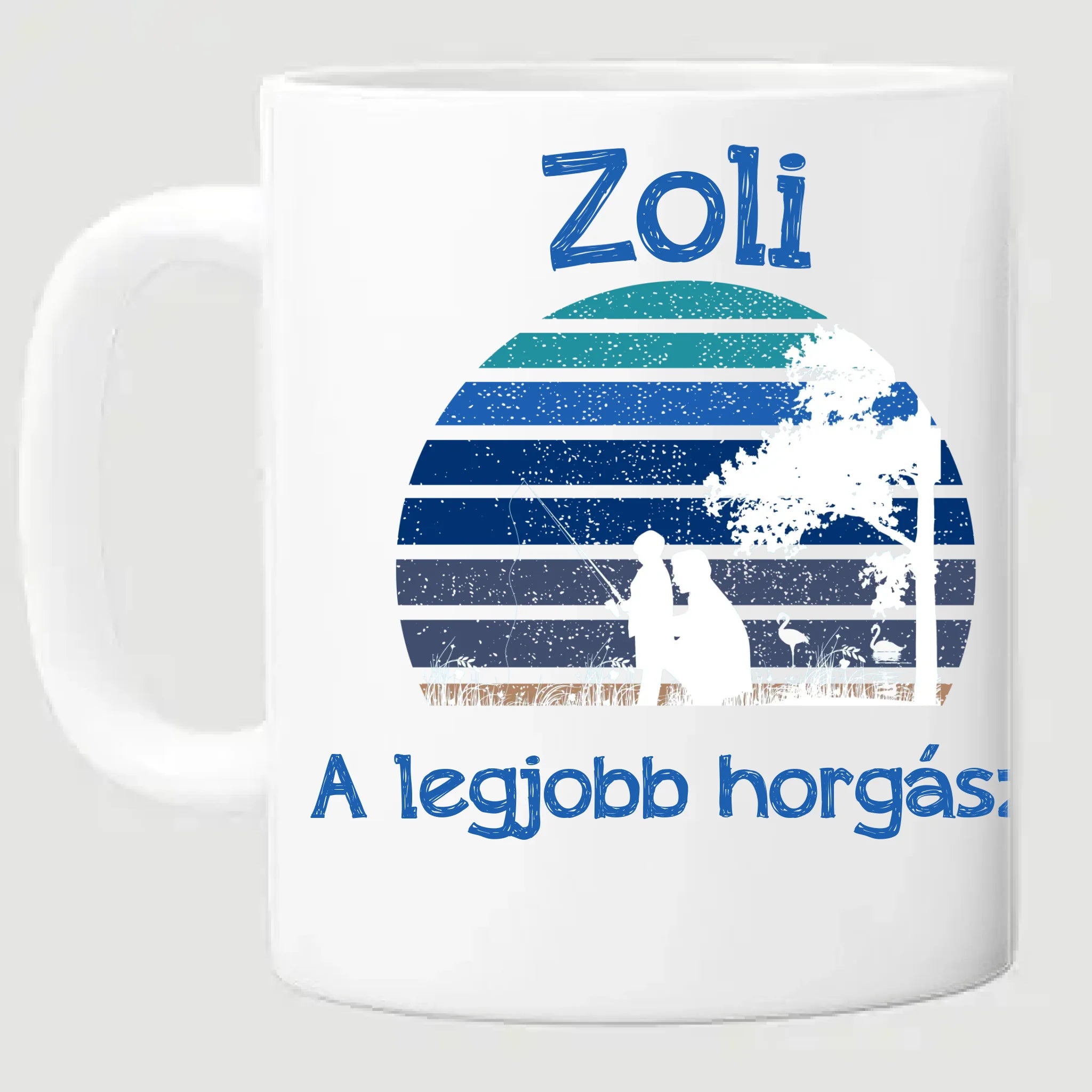 Egyedi bögre apák napjára horgász apukáknak. Az egyedi bögre remek ajándék apák napjára! Az egyedi bögre nyomtatása nagyon magas hőfokon történik, ezáltal az anyag szerkezetébe sütjük bele, így a nyomat rendkívül tartós lesz és nem kopik, nem fakul ki. A fényképes bögréhez bármilyen fotót választhatsz, illetve feliratot is adhatsz hozzá.