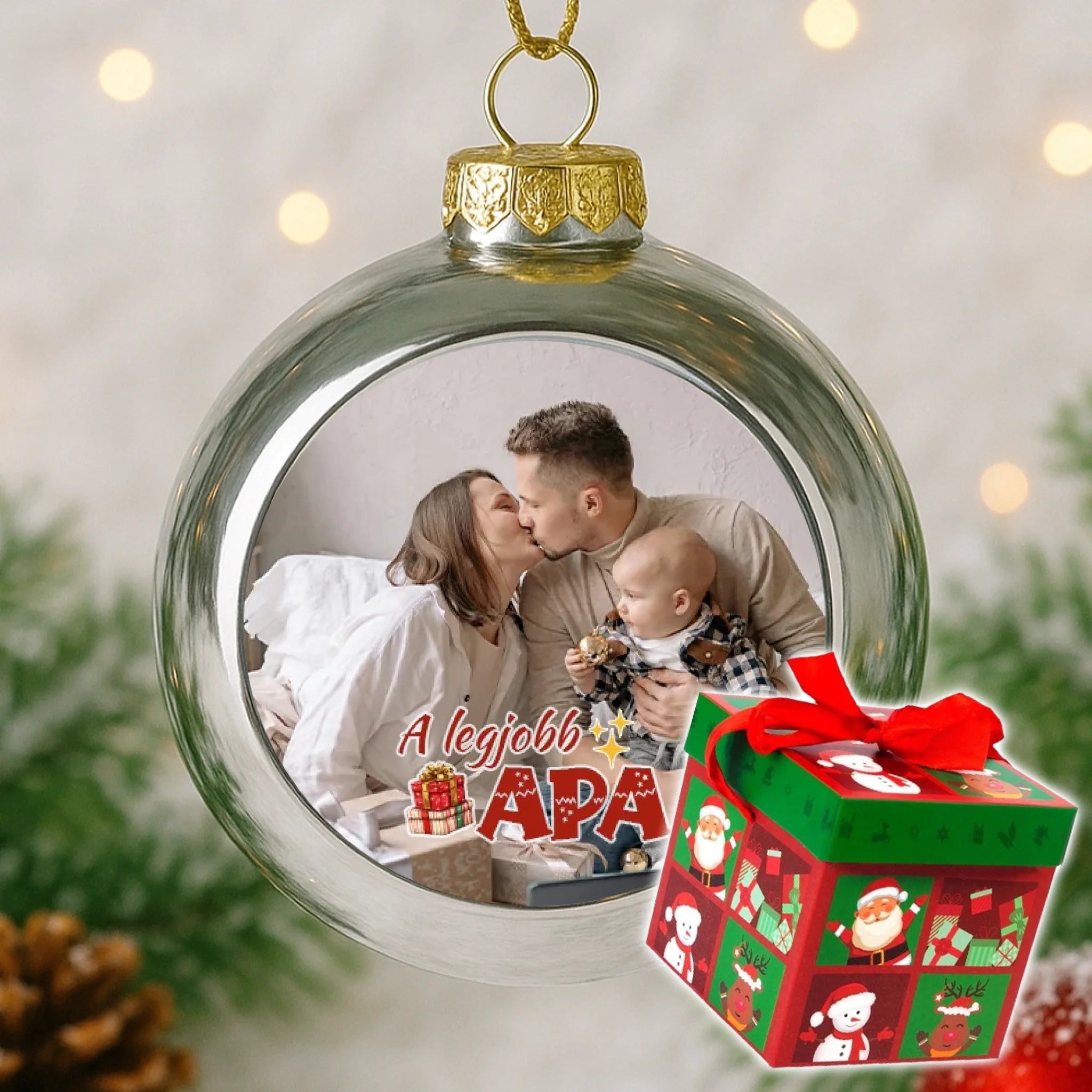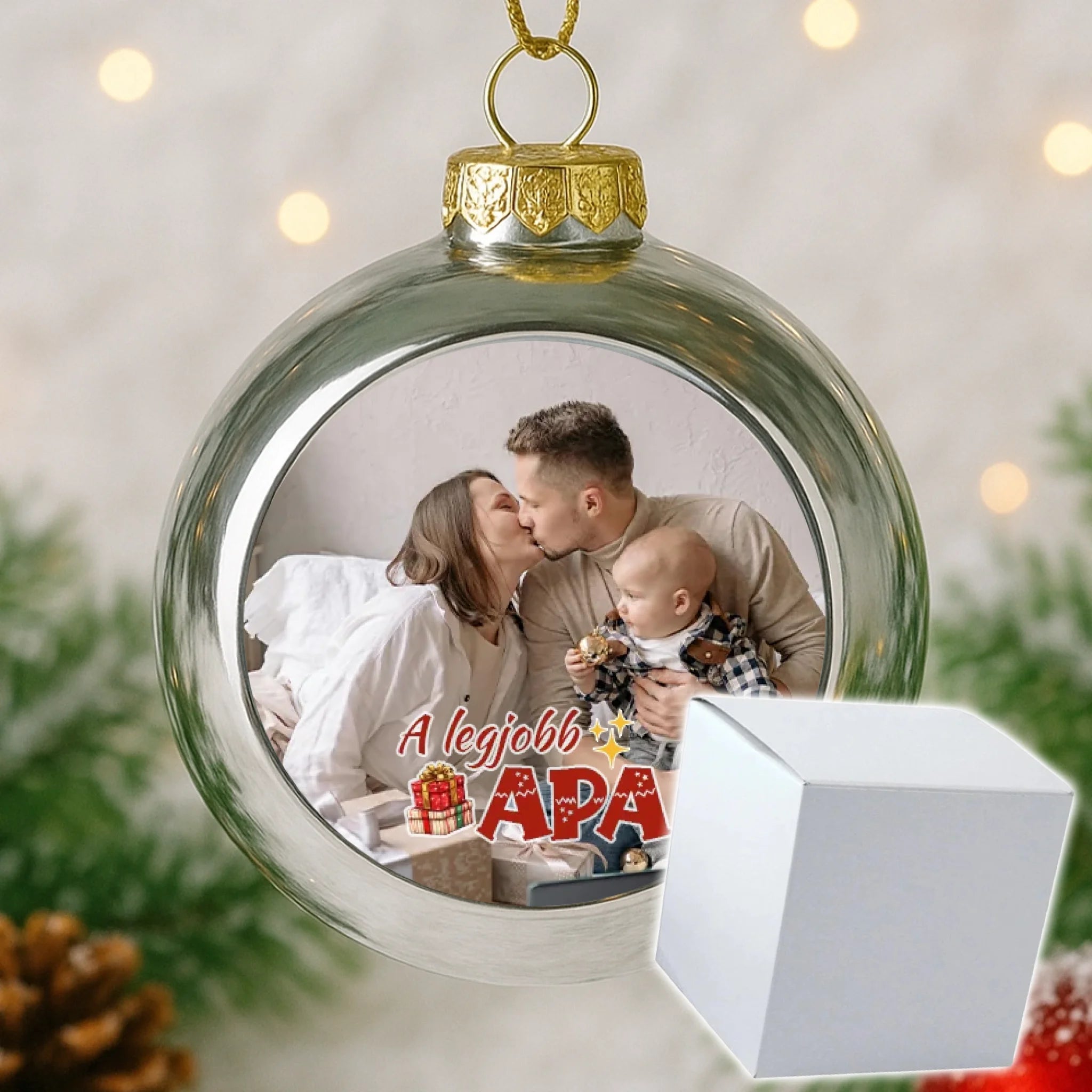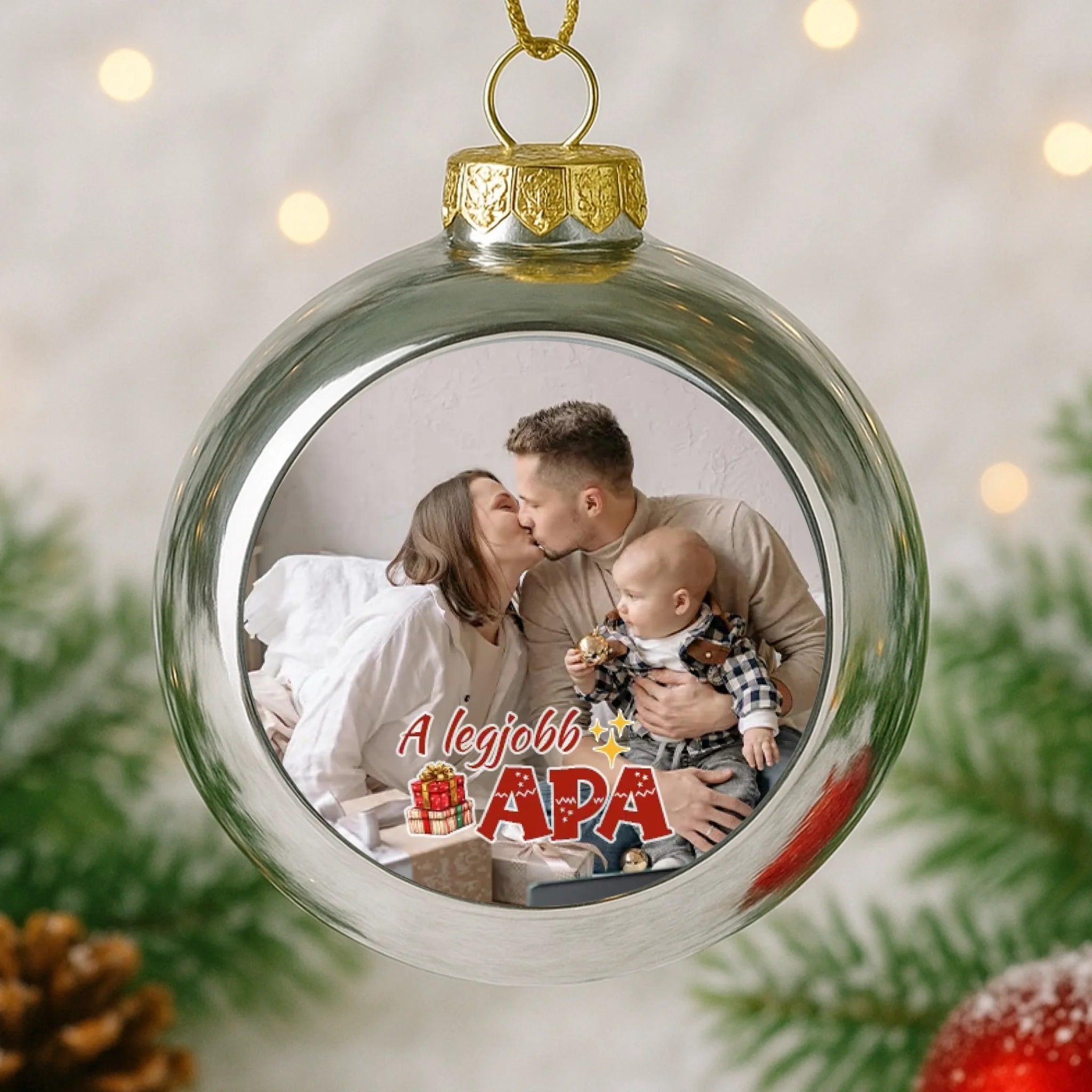 Fényképes karácsonyi gömbdísz Apának ezüst színű