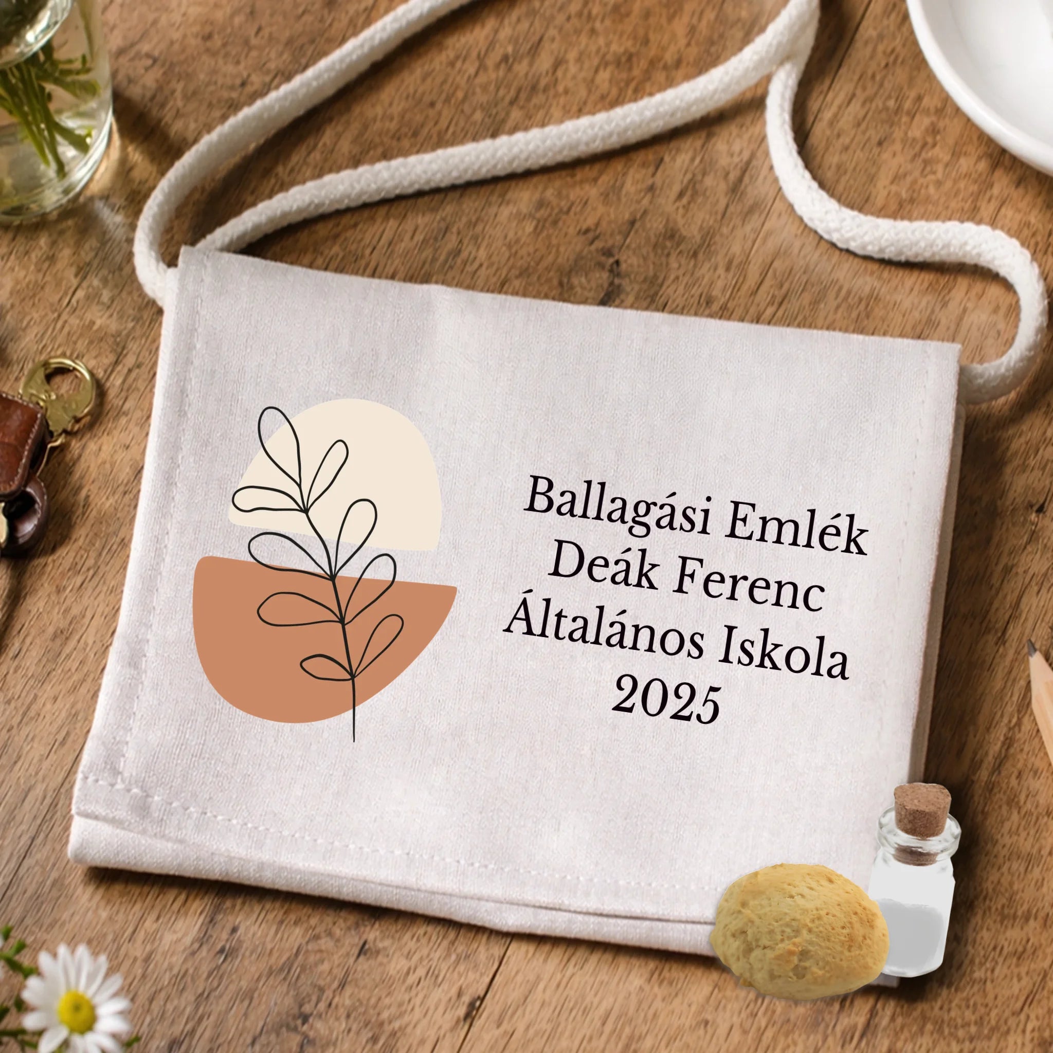 Ballagási tarisznya minimalista motívummal