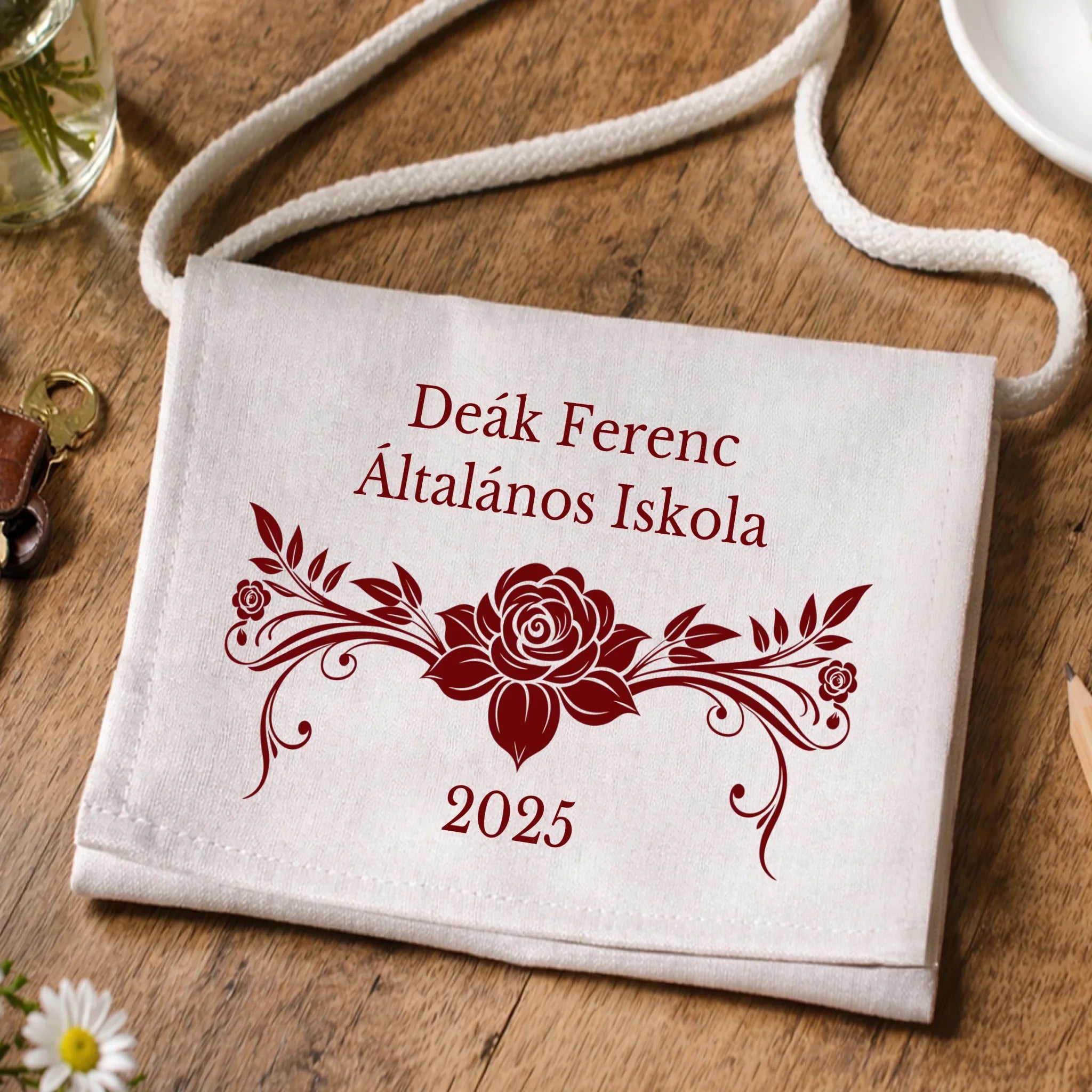 Ballagási tarisznya rózsás mintával