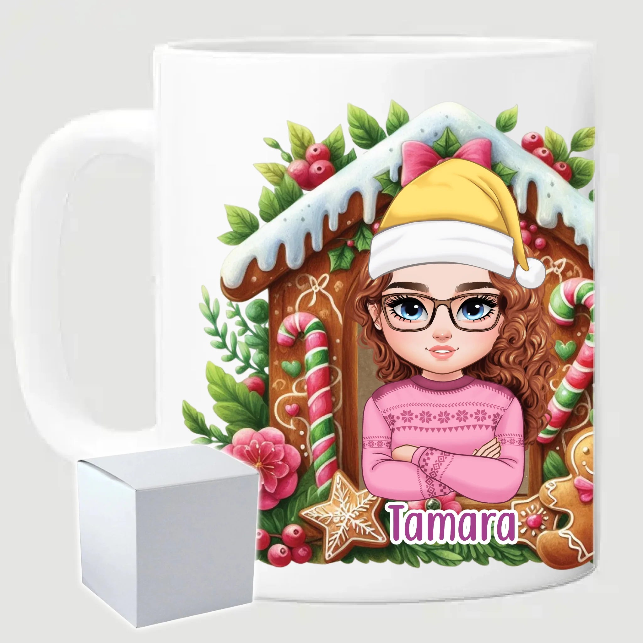 Lepd meg szeretteidet egy különleges, egyedi karakteres karácsonyi bögrével, amelyen illusztrált női karakter jelenik meg! ✨ A karakter teljesen személyre szabható: választhatsz frizurát, ruhát, kiegészítőket és karácsonyi hátteret. Így a bögre vidám, személyes és egyedi ajándék lesz, amit minden nő örömmel fog használni.