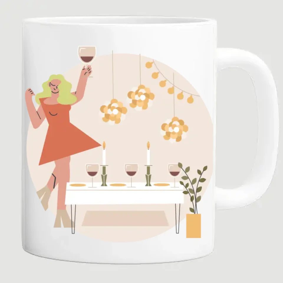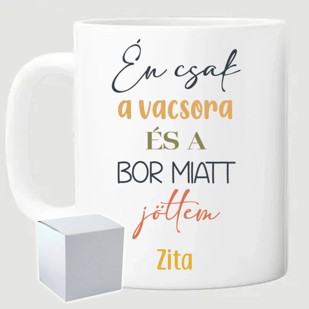 A vacsora és a bor miatt jöttem - bögre választható hajszínnel