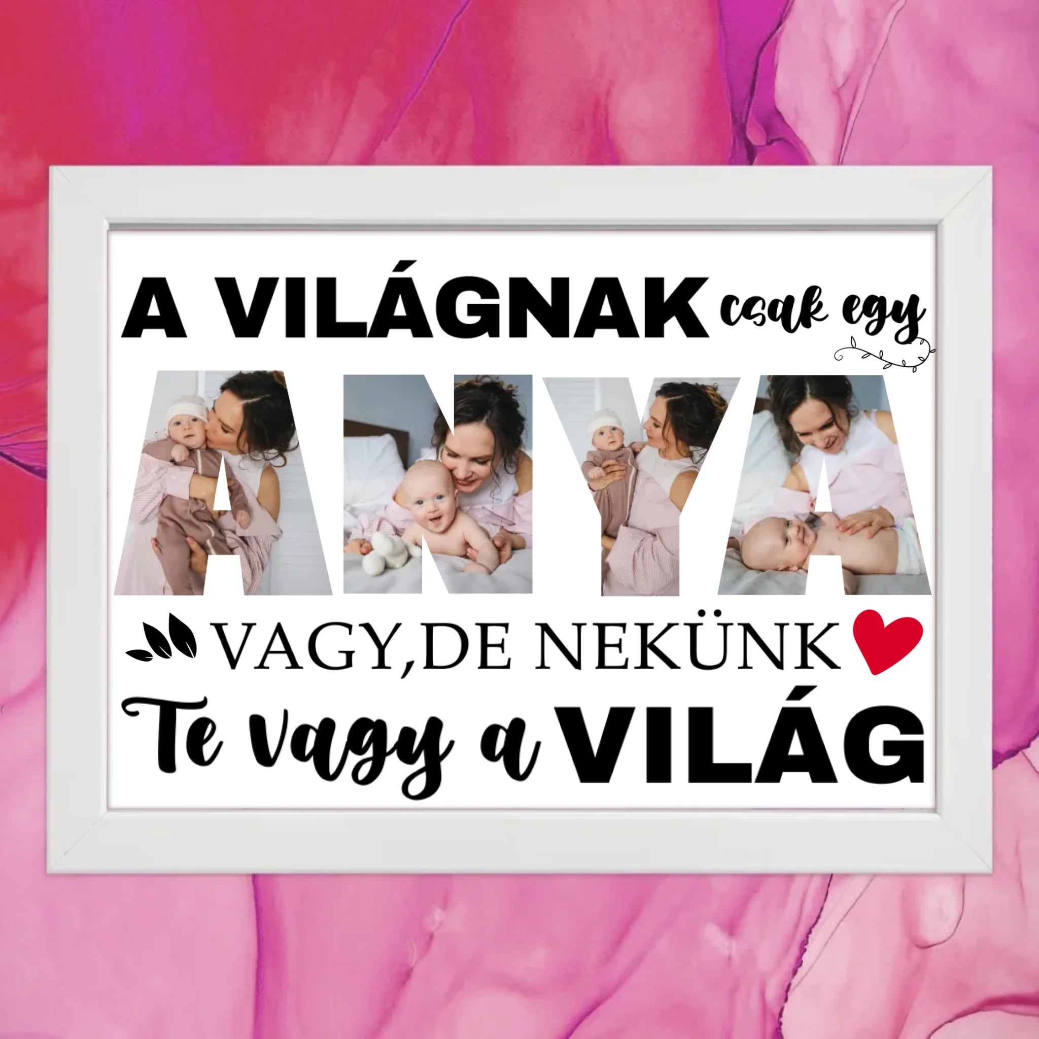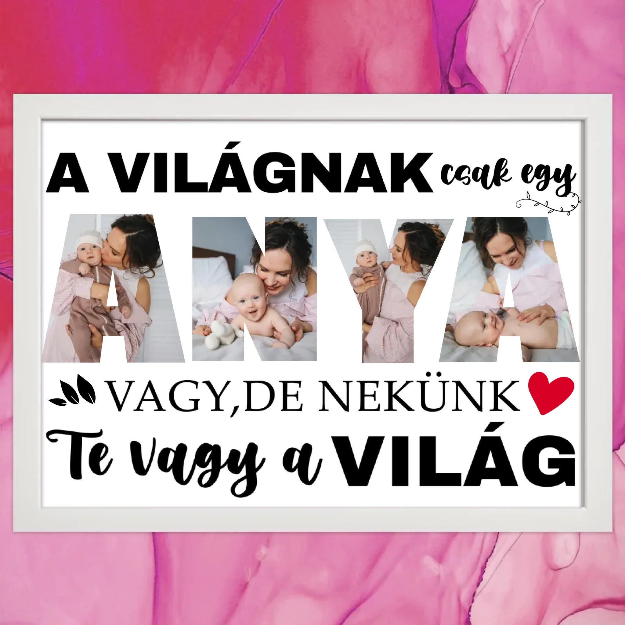 A világnak csak egy anya vagy, de nekünk te vagy a világ - egyedi fényképes falikép anyának