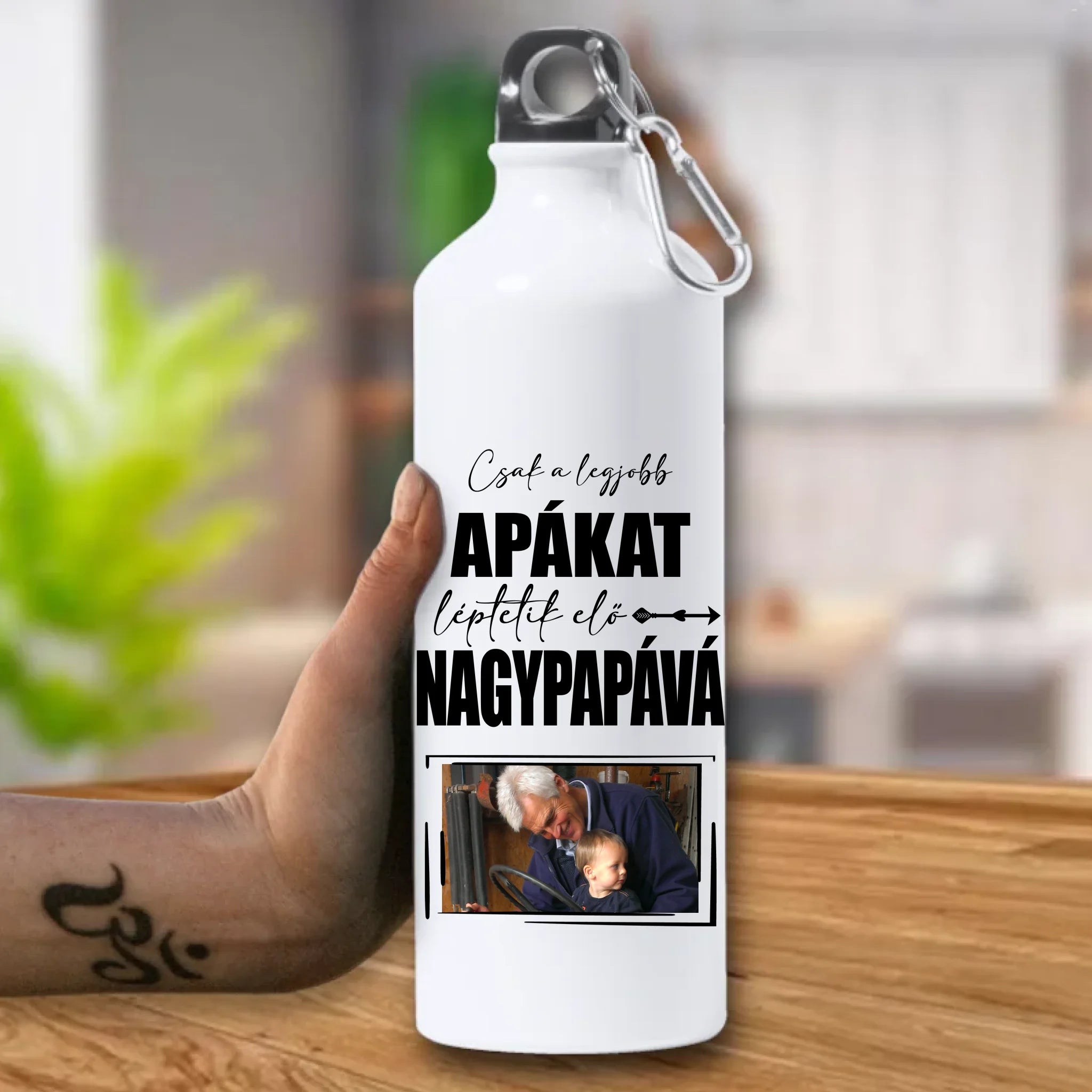 Egyedi kulacs, saját fotóddal, szövegeddel. Tökéletes társ túrázáshoz, illetve a mindennapokban. Tartós, rozsdamentes acélból készült, így teljesen környezetbarát. A kulacs mérete: 800 ml.