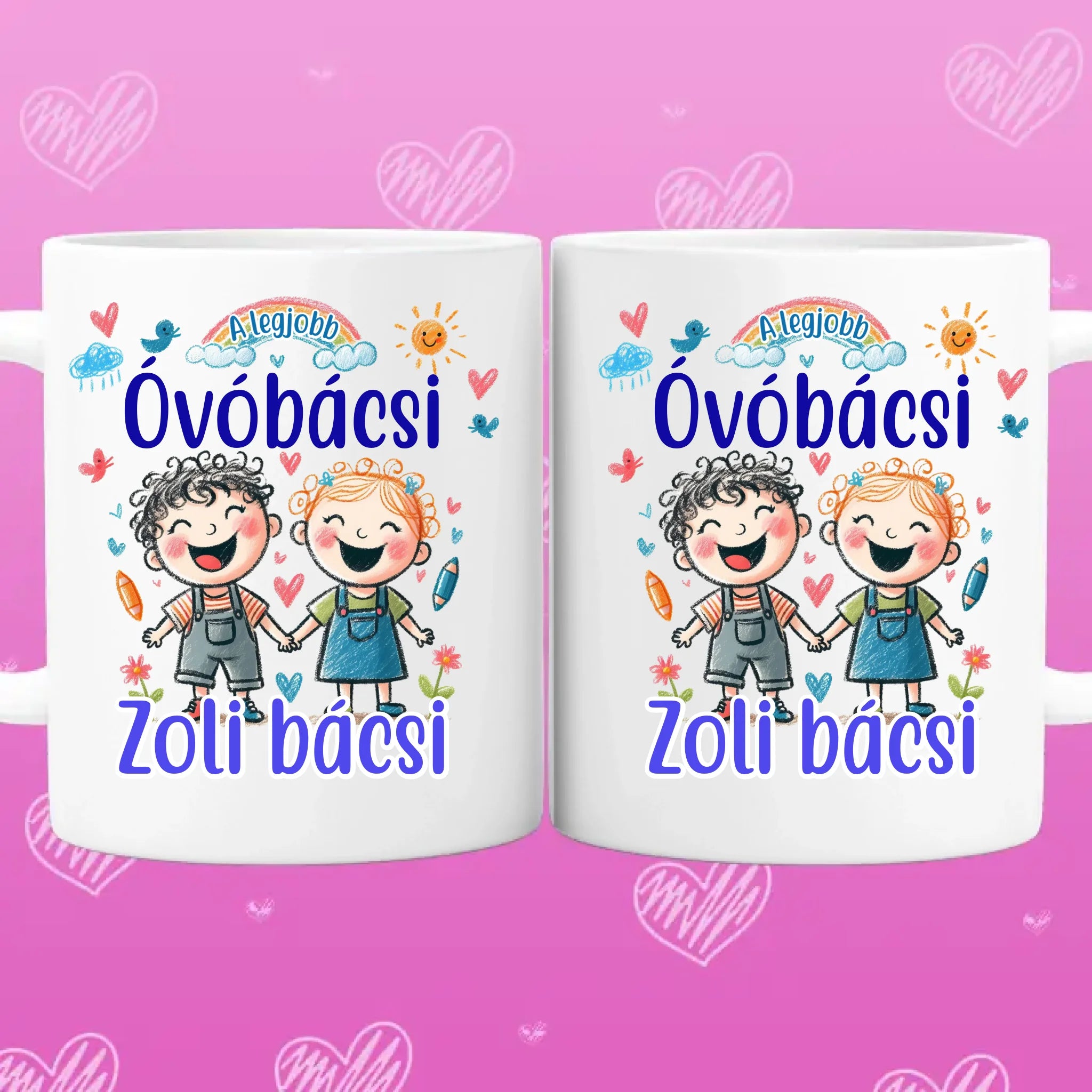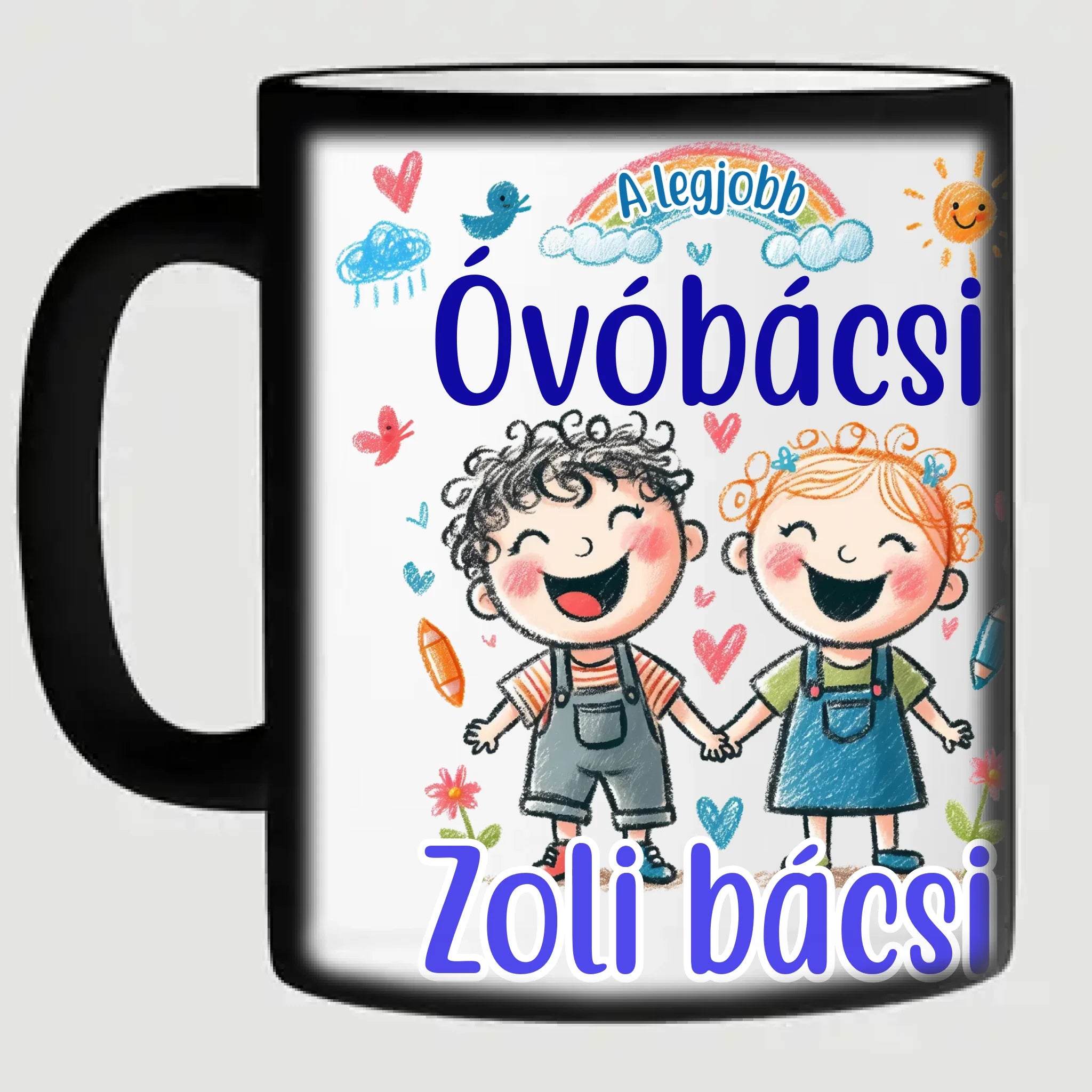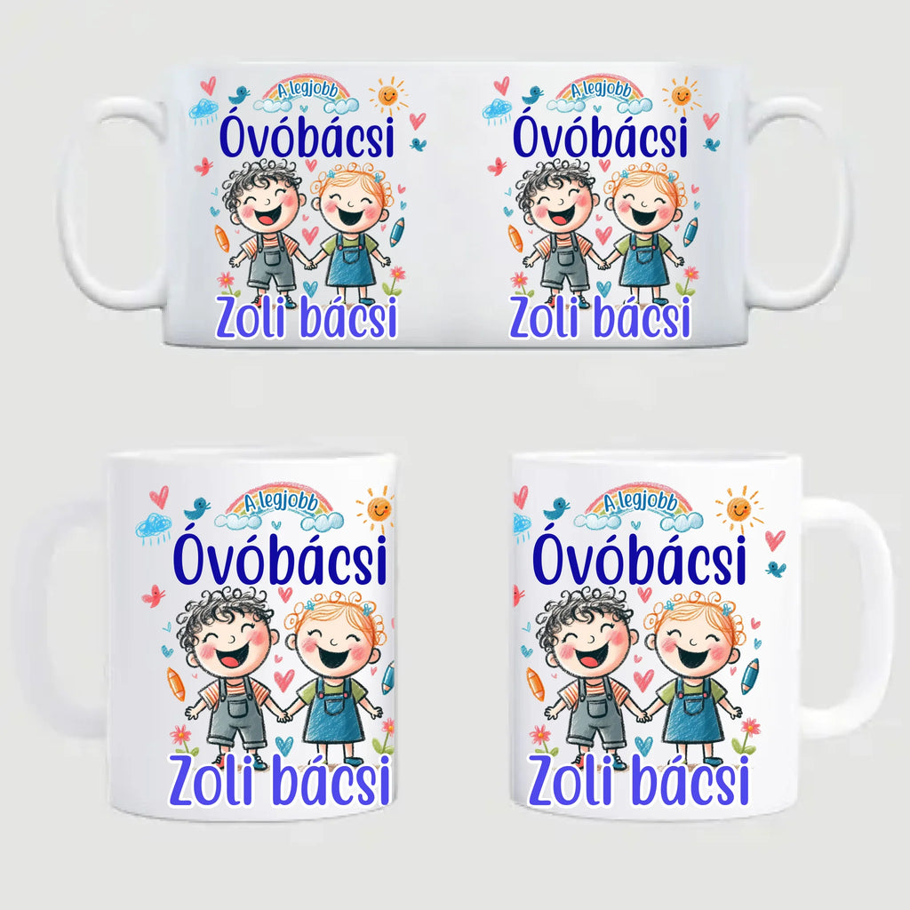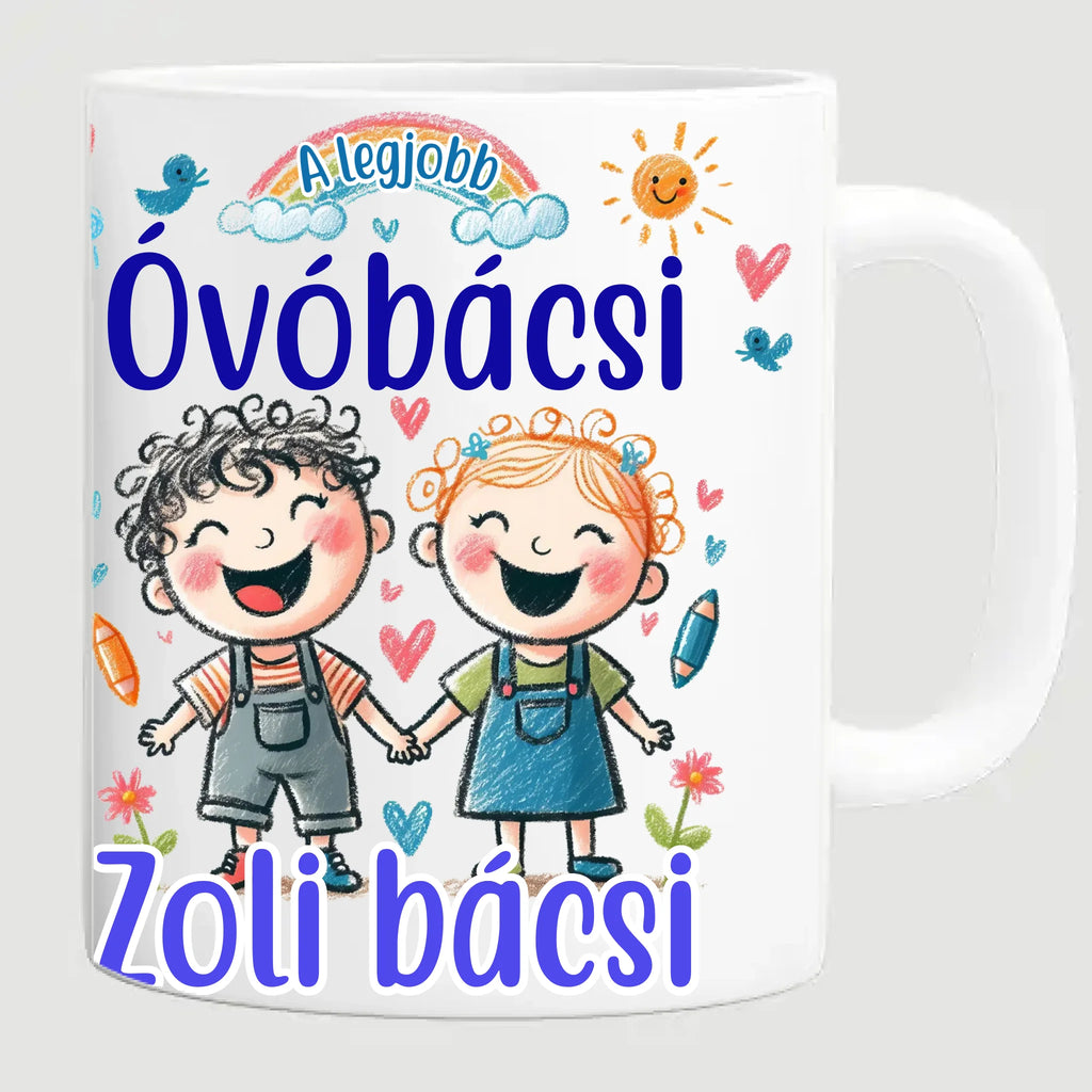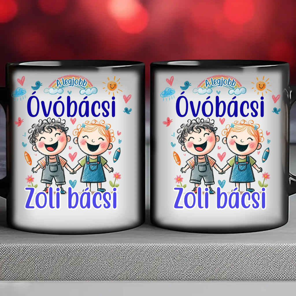 Egyedi neves és feliratos bögre pedagógusnapra óvónéninek, óvóbácsinak vagy dadusnak