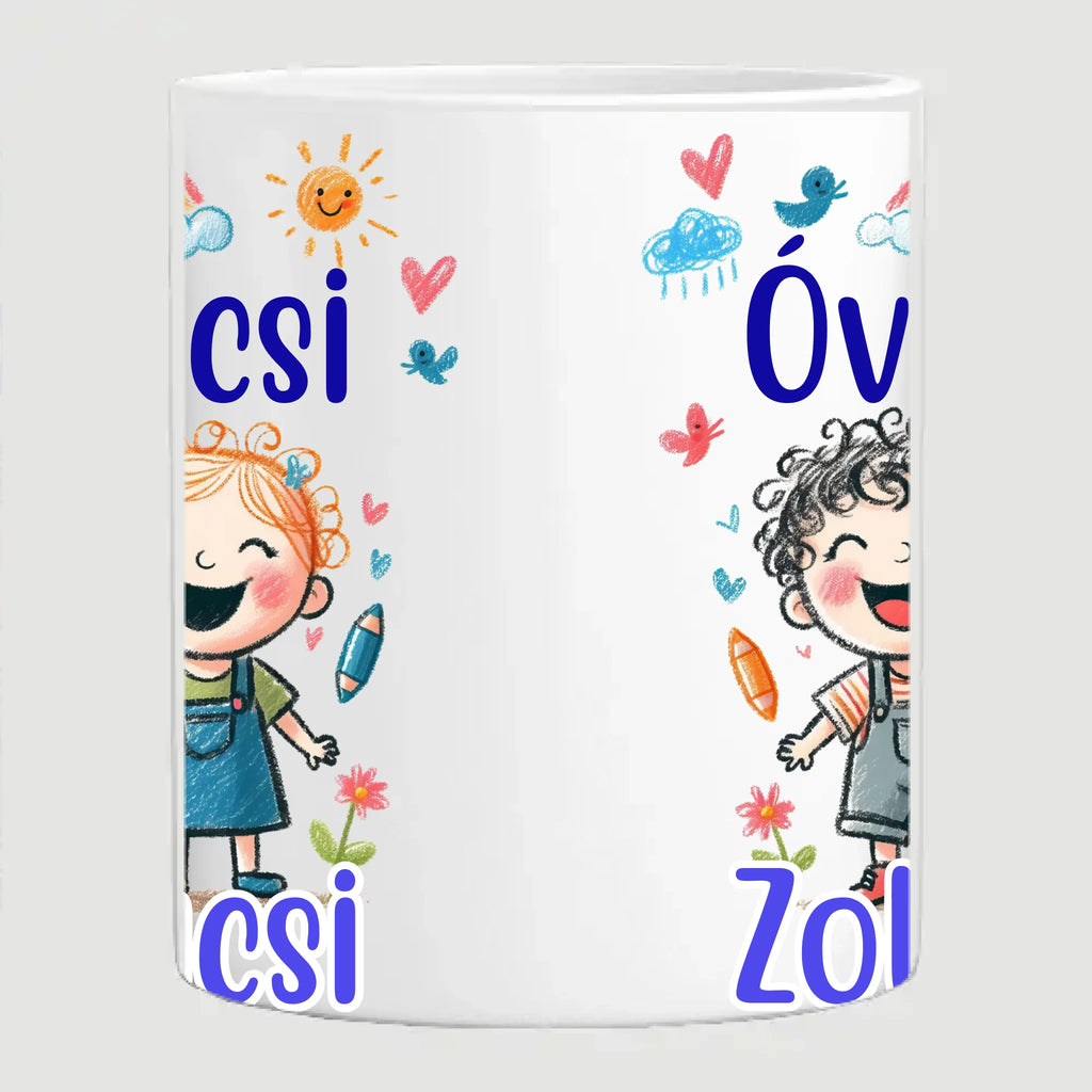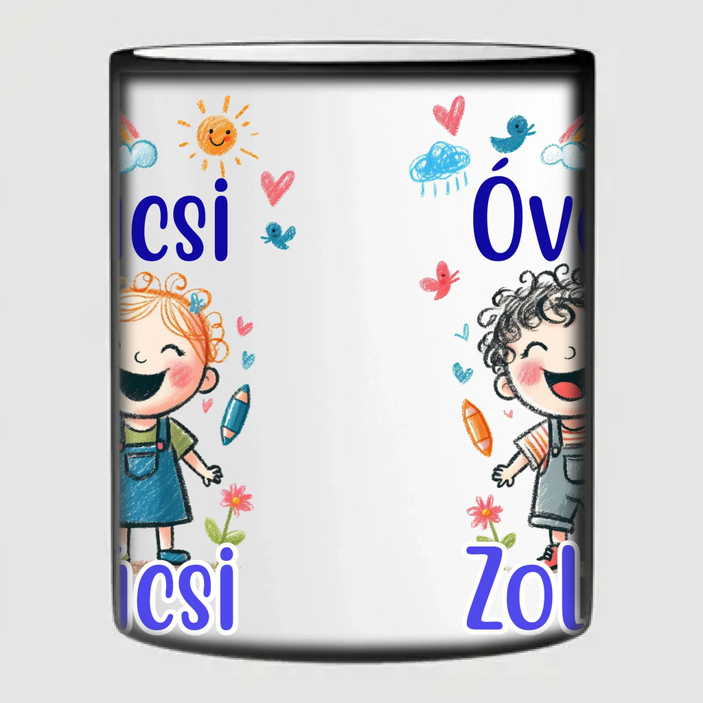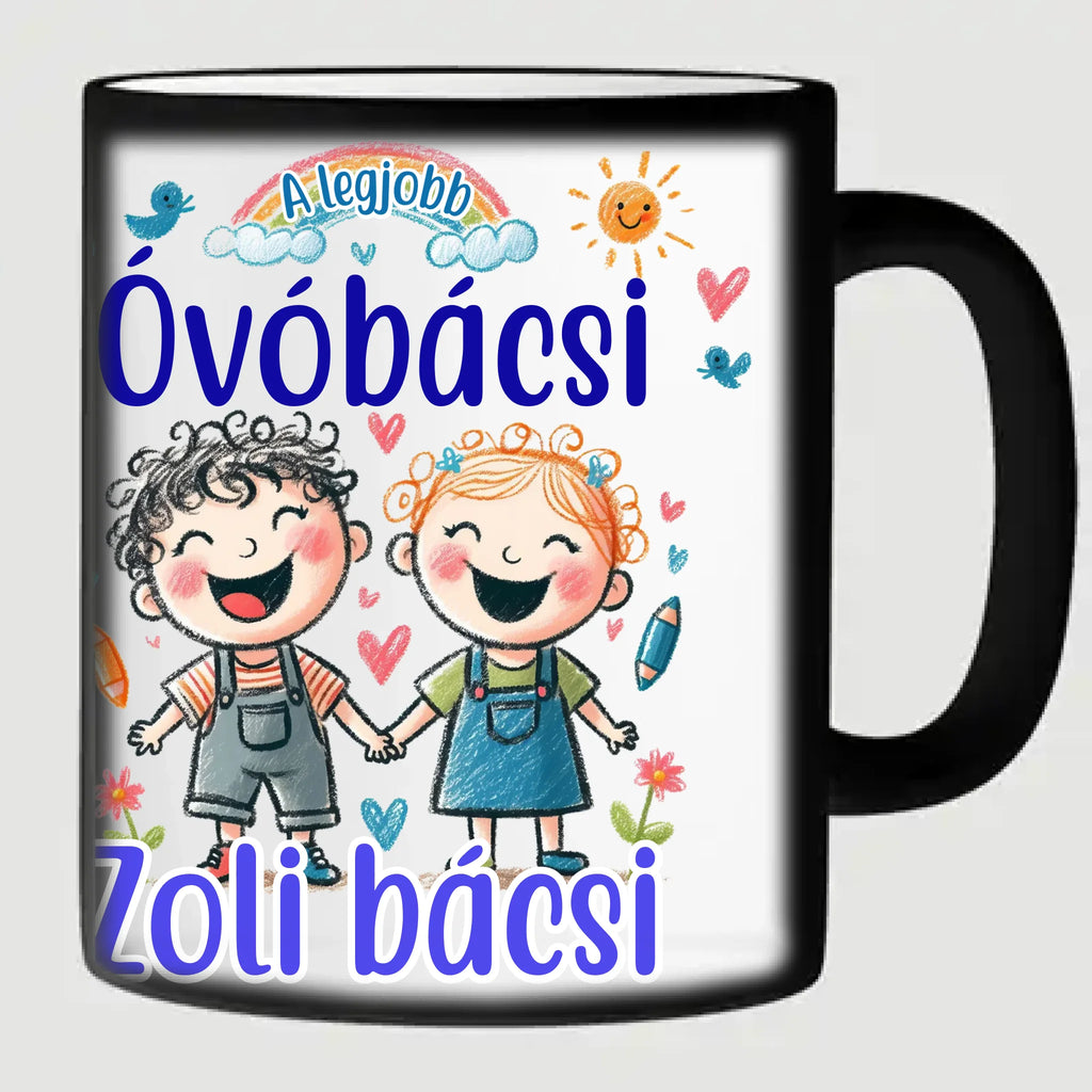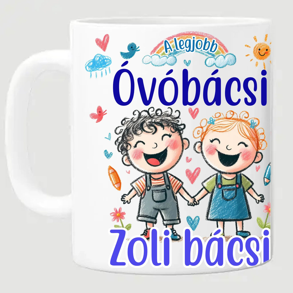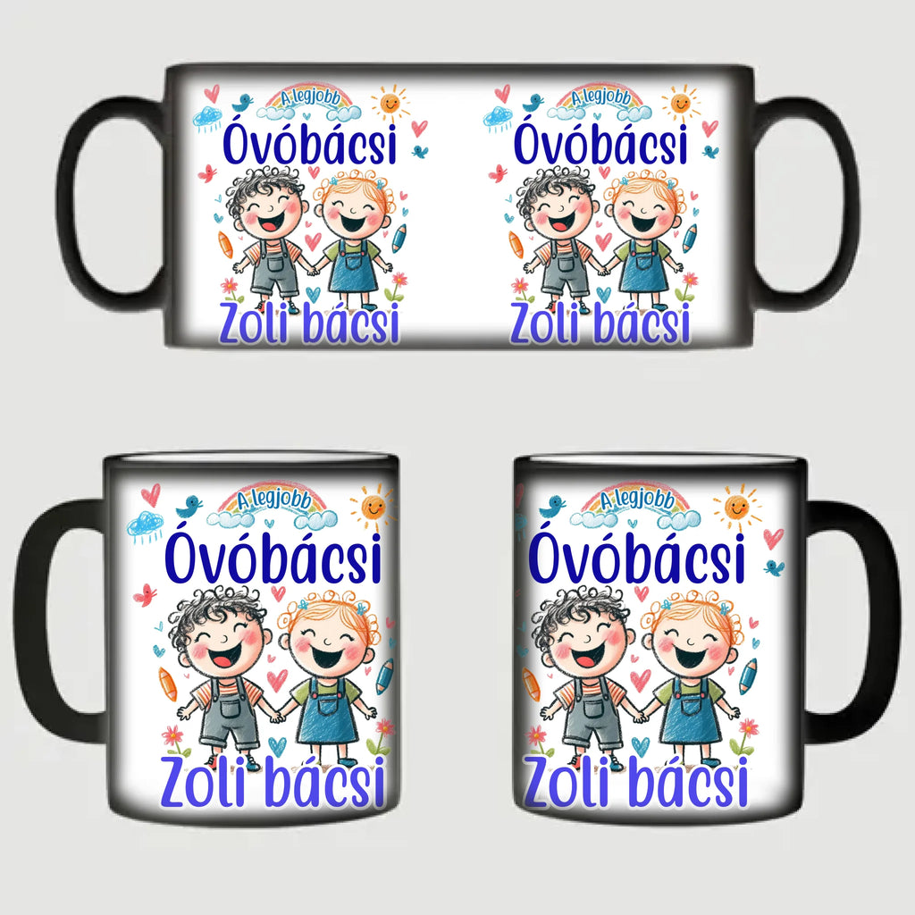 Egyedi neves és feliratos bögre pedagógusnapra óvónéninek, óvóbácsinak vagy dadusnak
