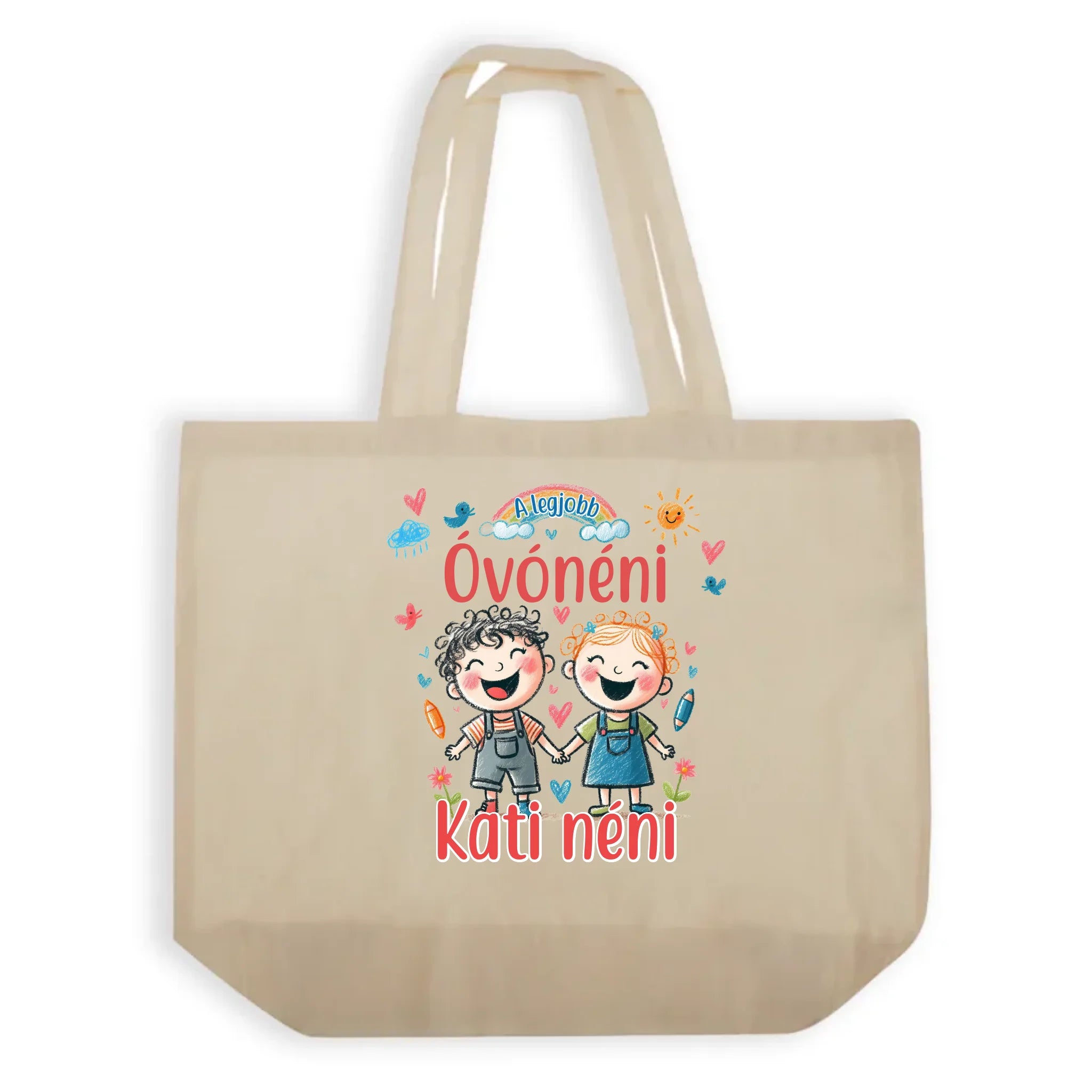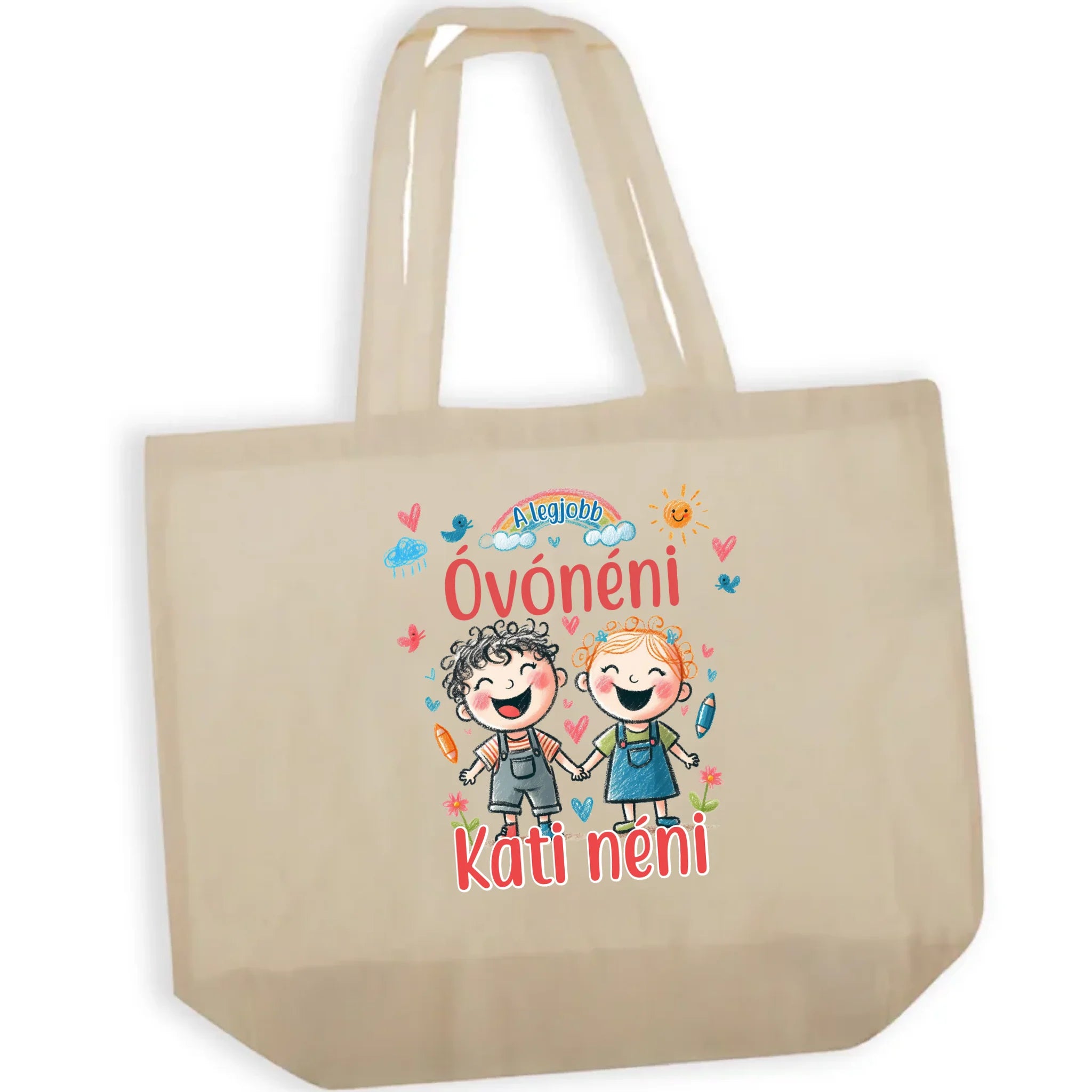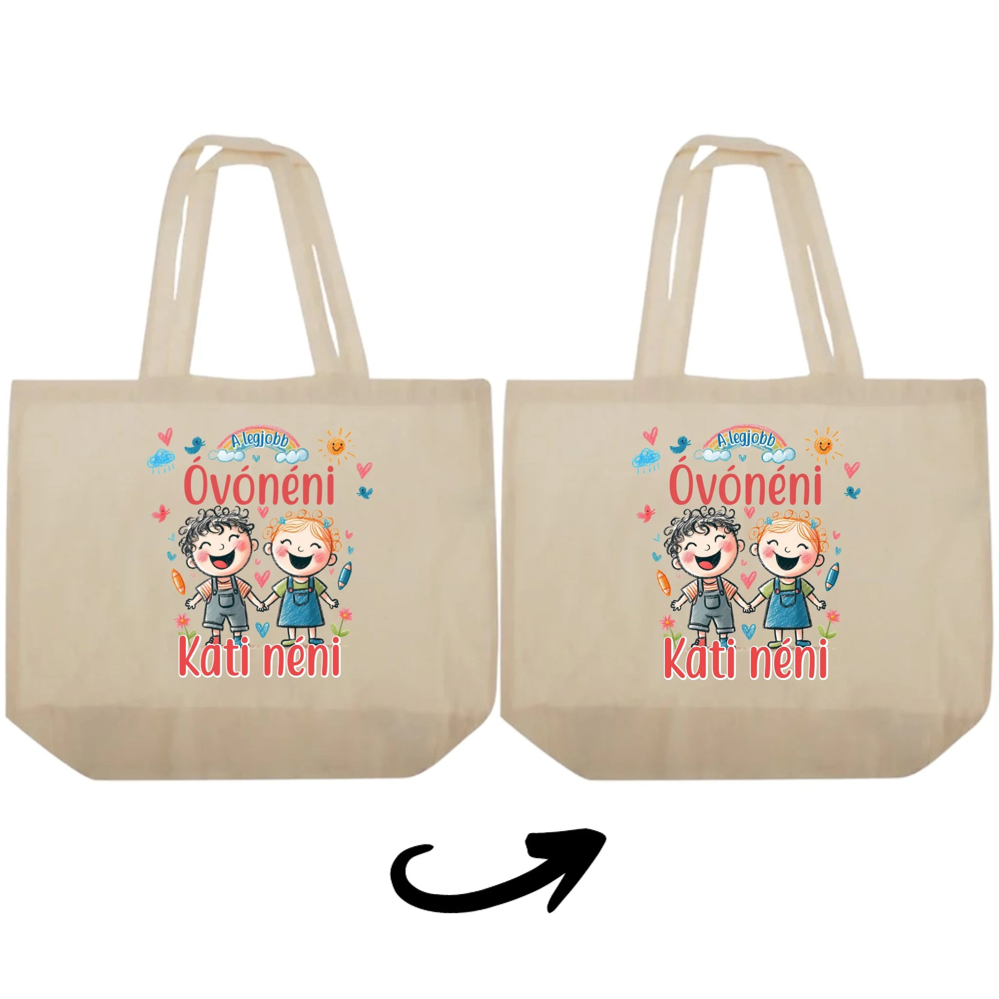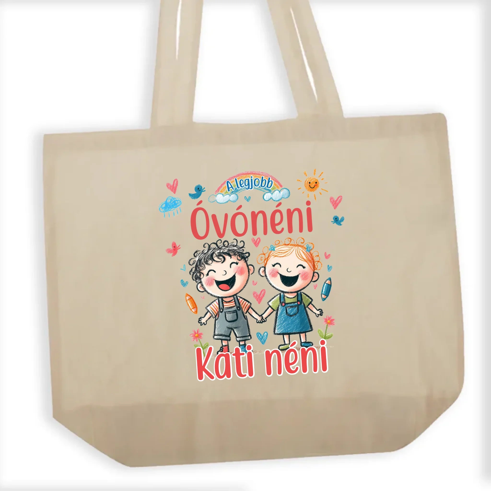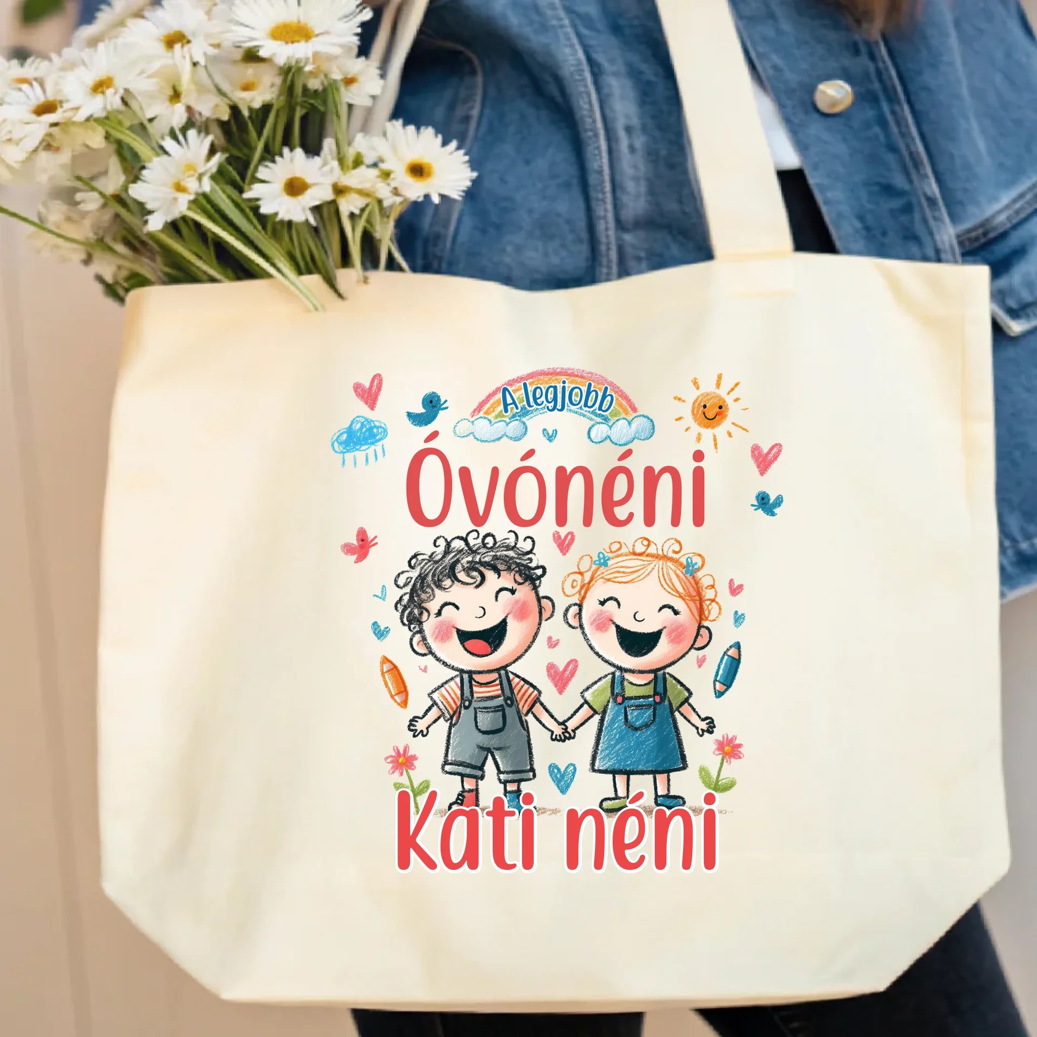 Egyedi neves és feliratos vászontáska pedagógusnapra óvónéninek, óvóbácsinak vagy dadusnak