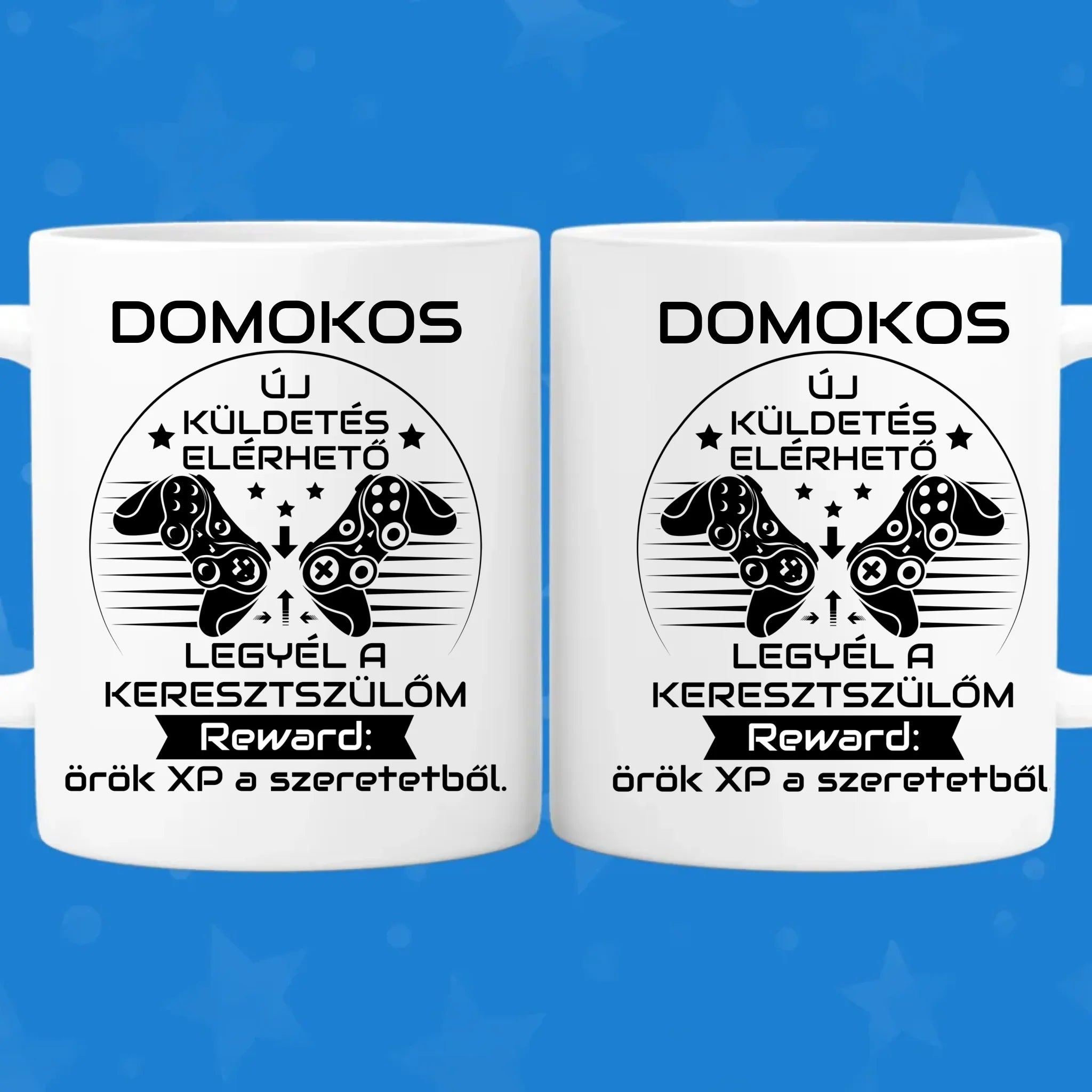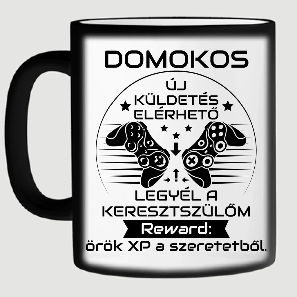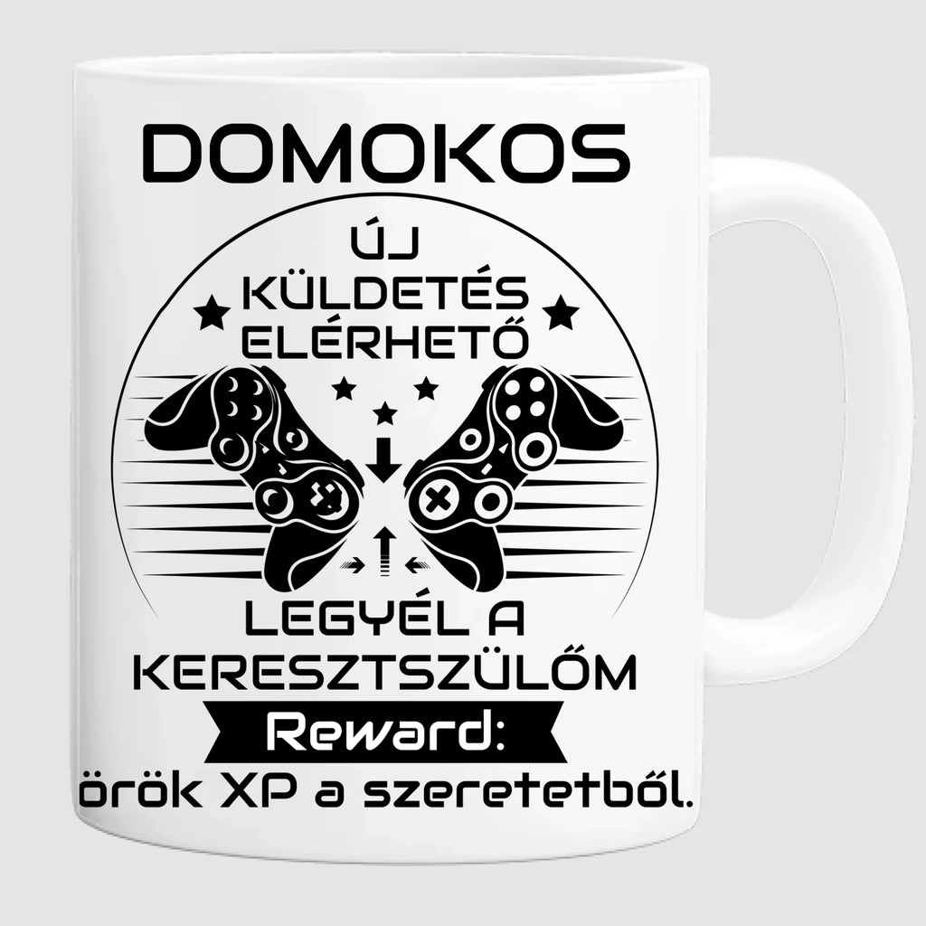Keresztszülő felkérő bögre – gamer stílus, egyedi névvel