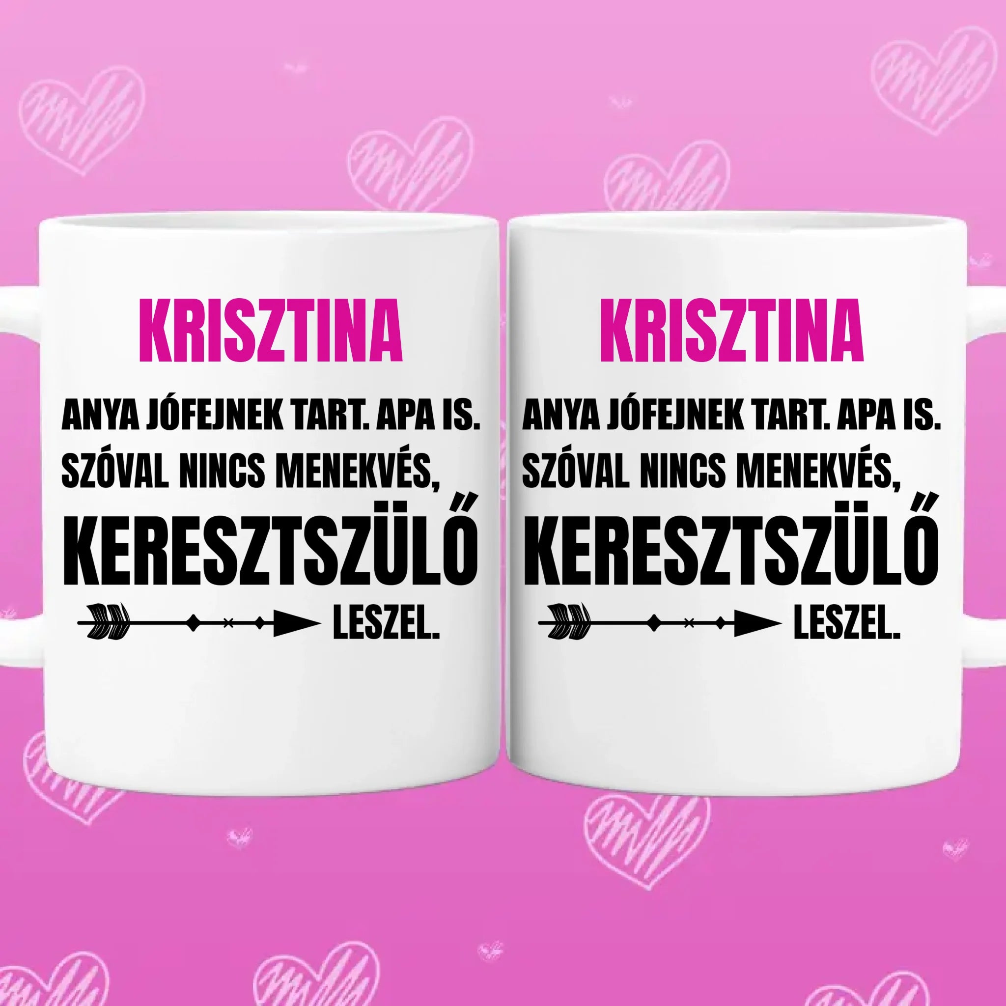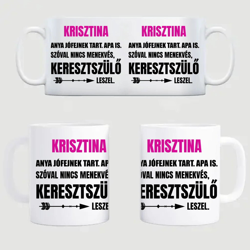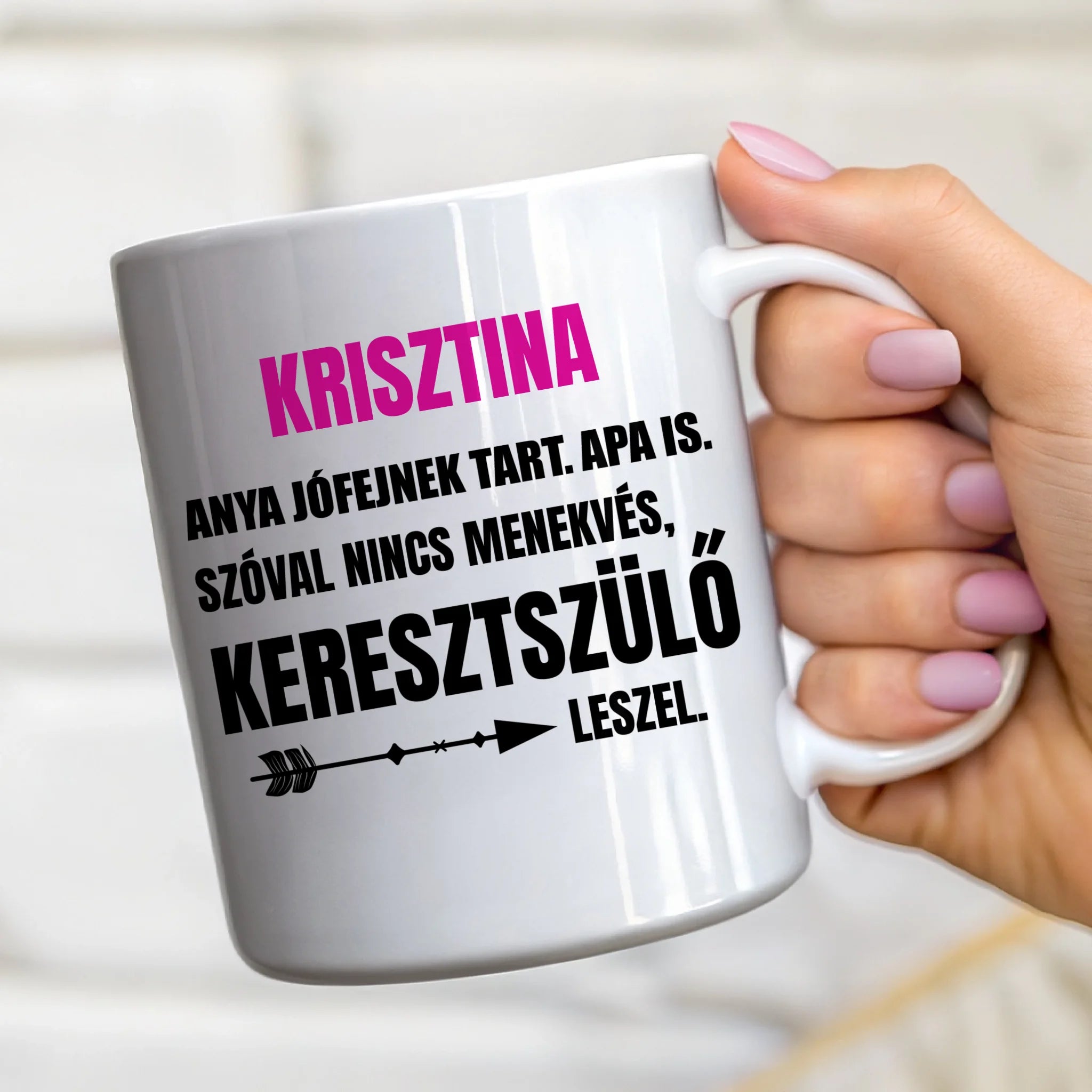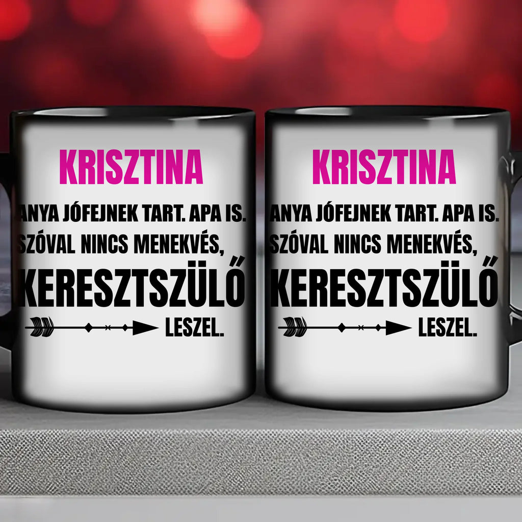 Keresztszülő felkérő vicces bögre egyedi névvel