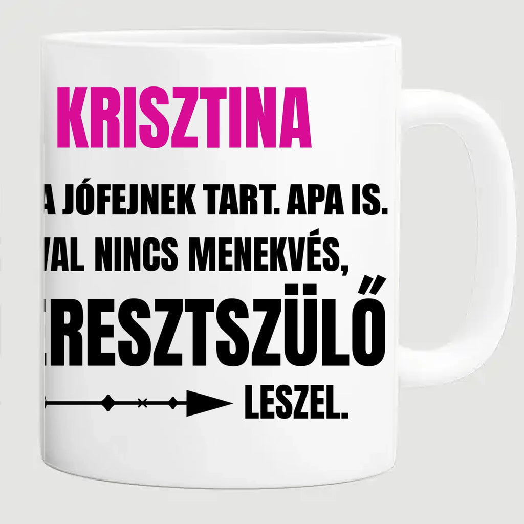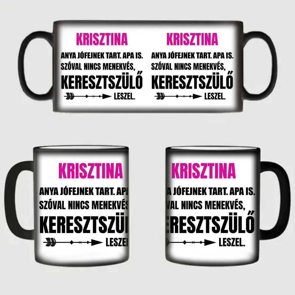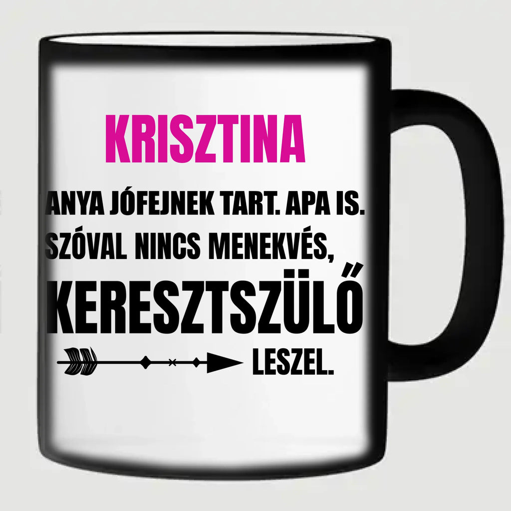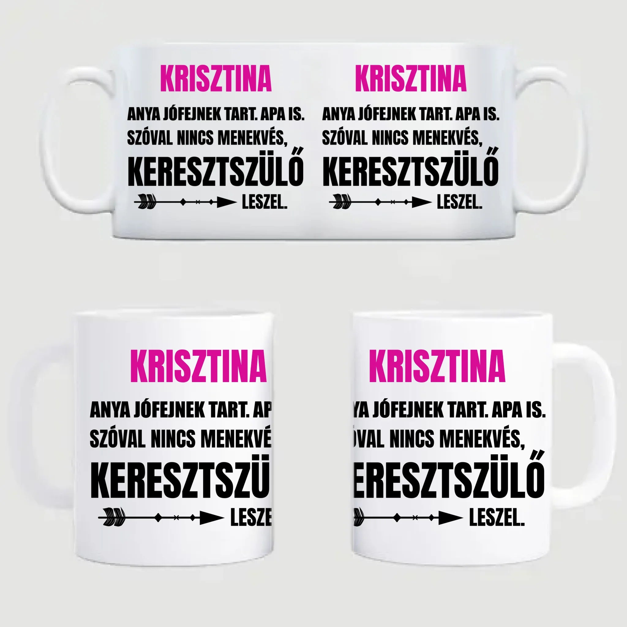Keresztszülő felkérő vicces bögre egyedi névvel