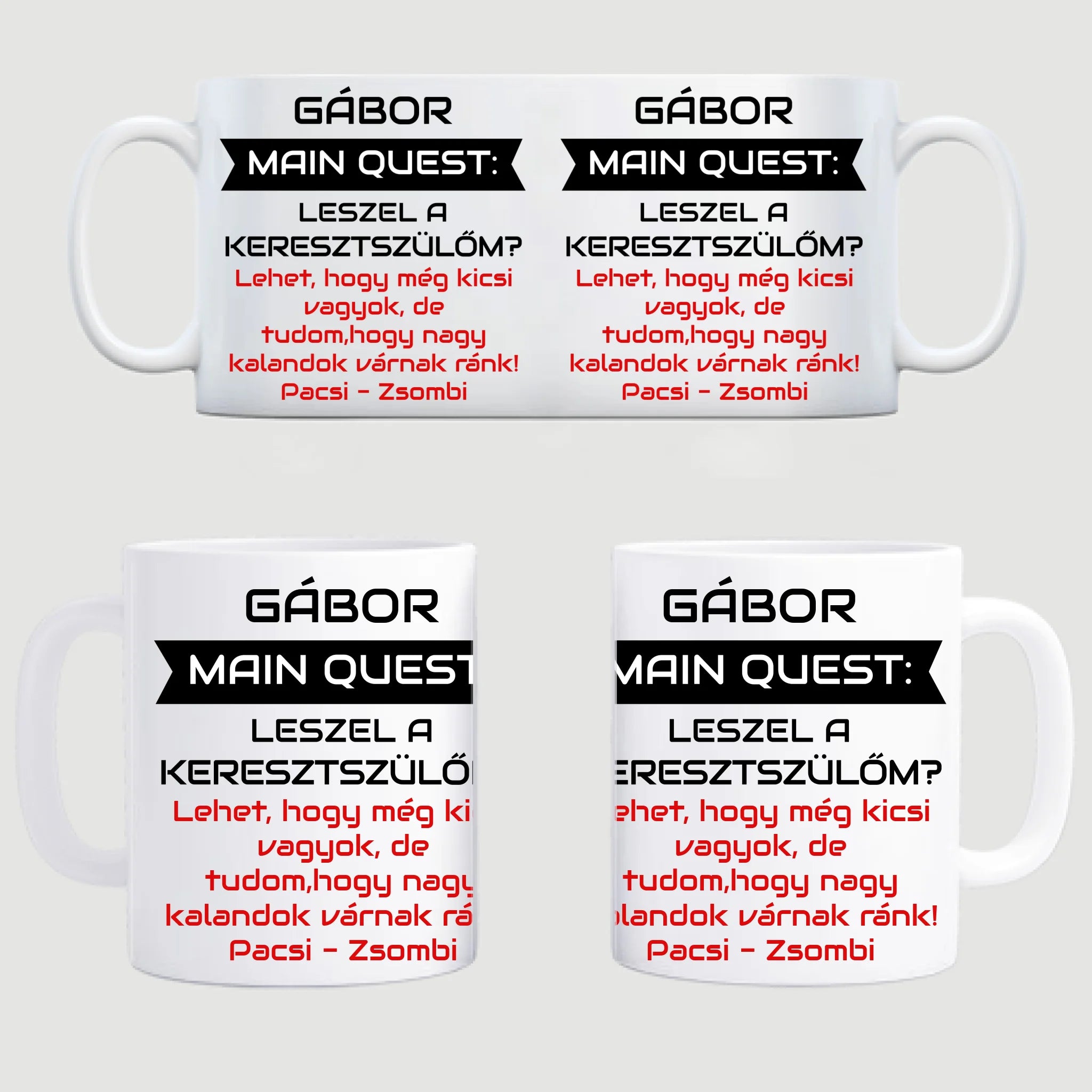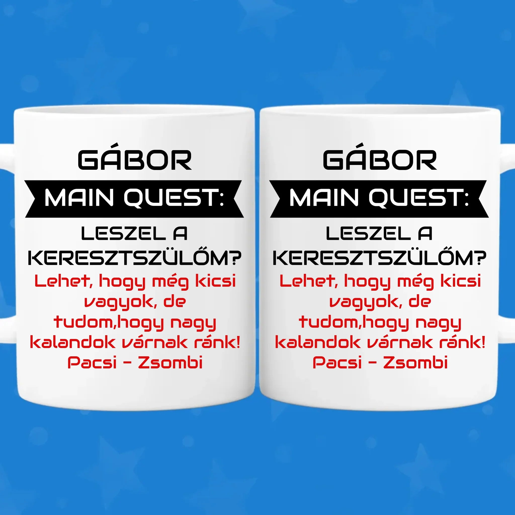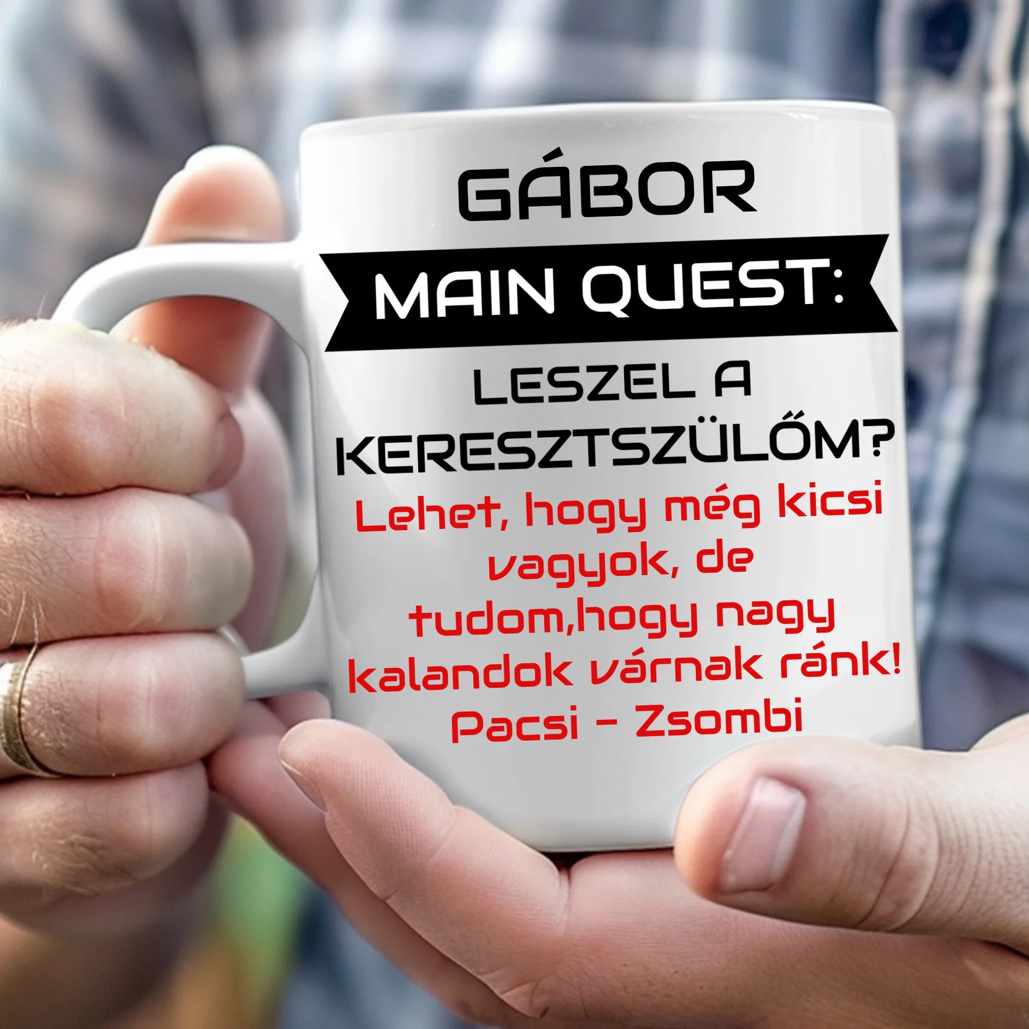 Main Quest: Leszel a keresztszülőm? – gamer bögre egyedi névvel