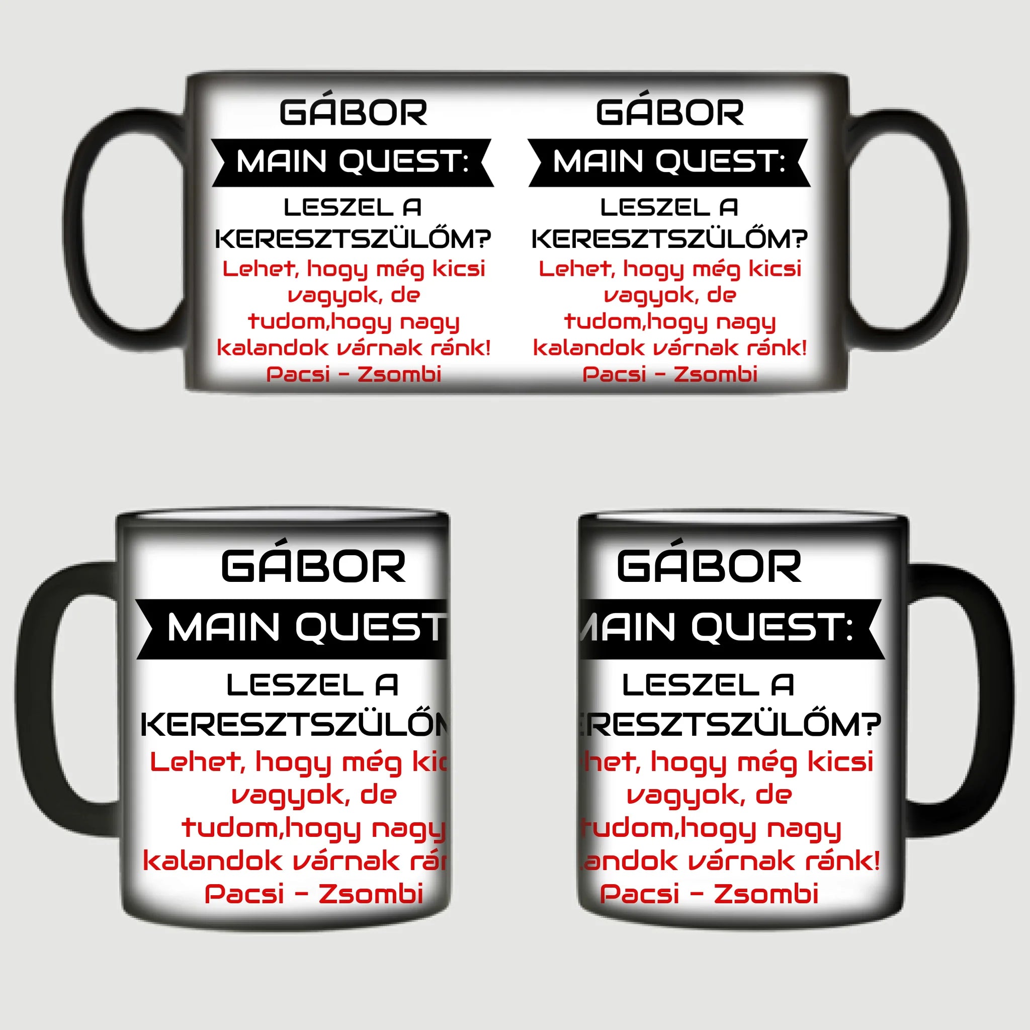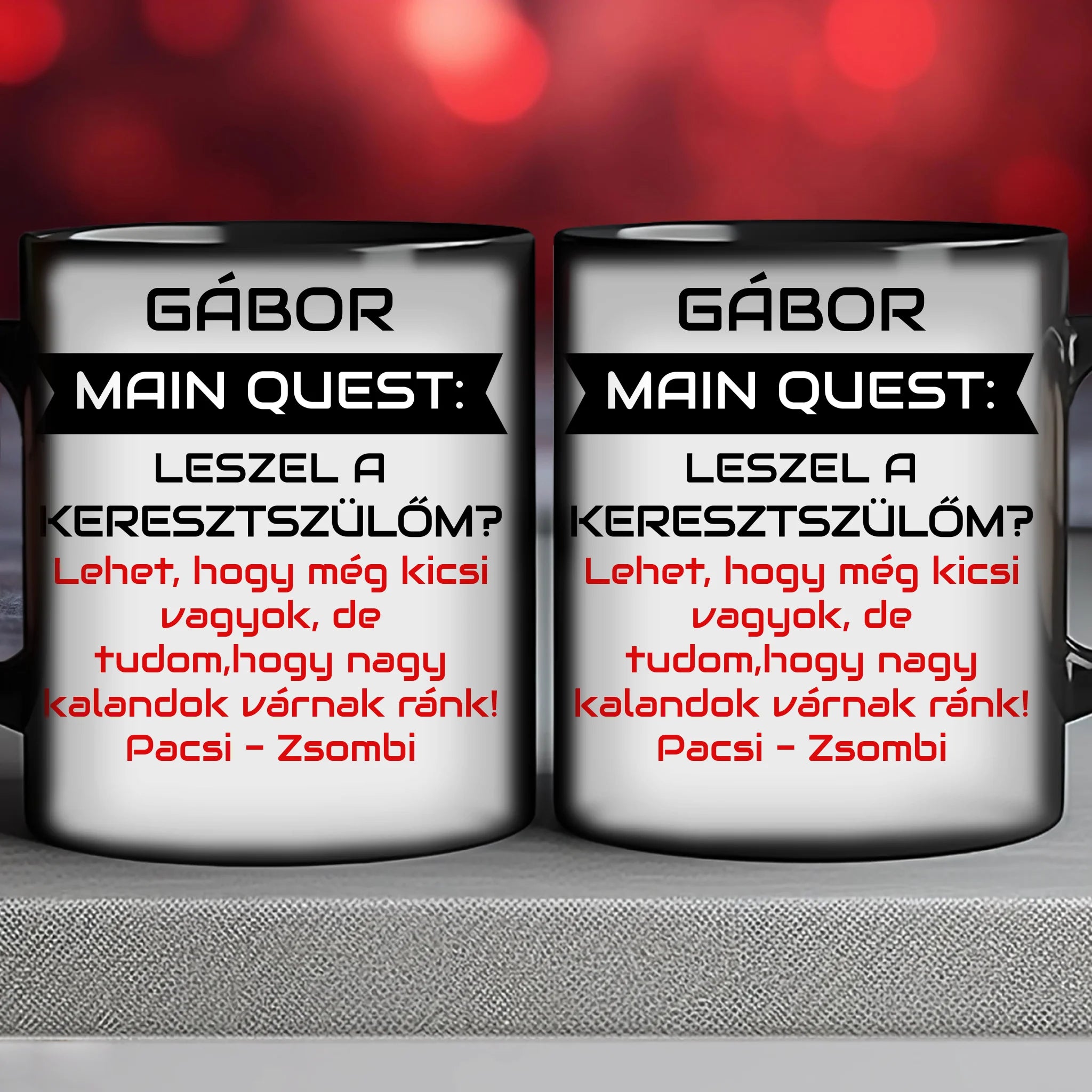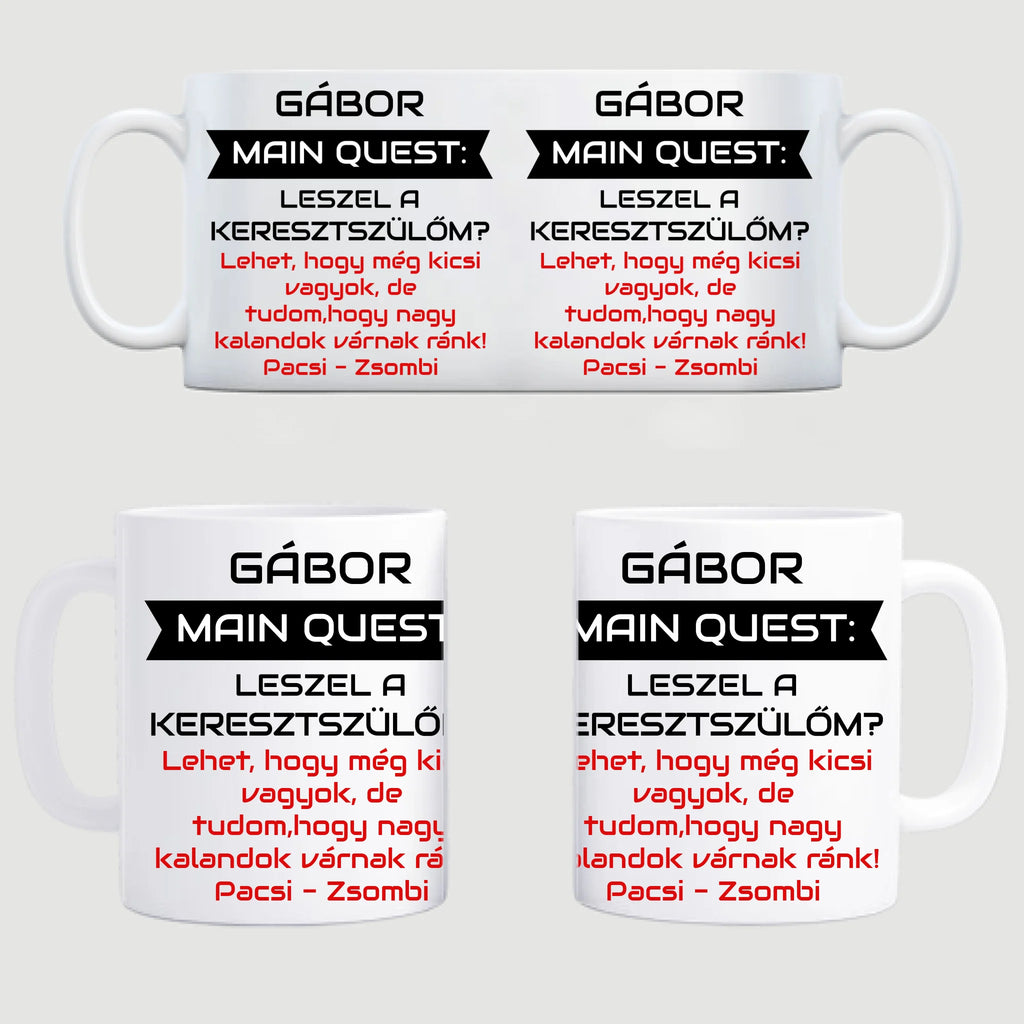 Main Quest: Leszel a keresztszülőm? – gamer bögre egyedi névvel
