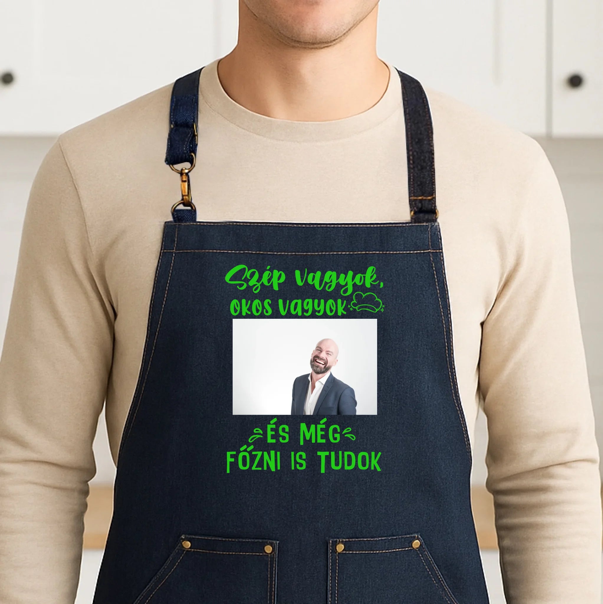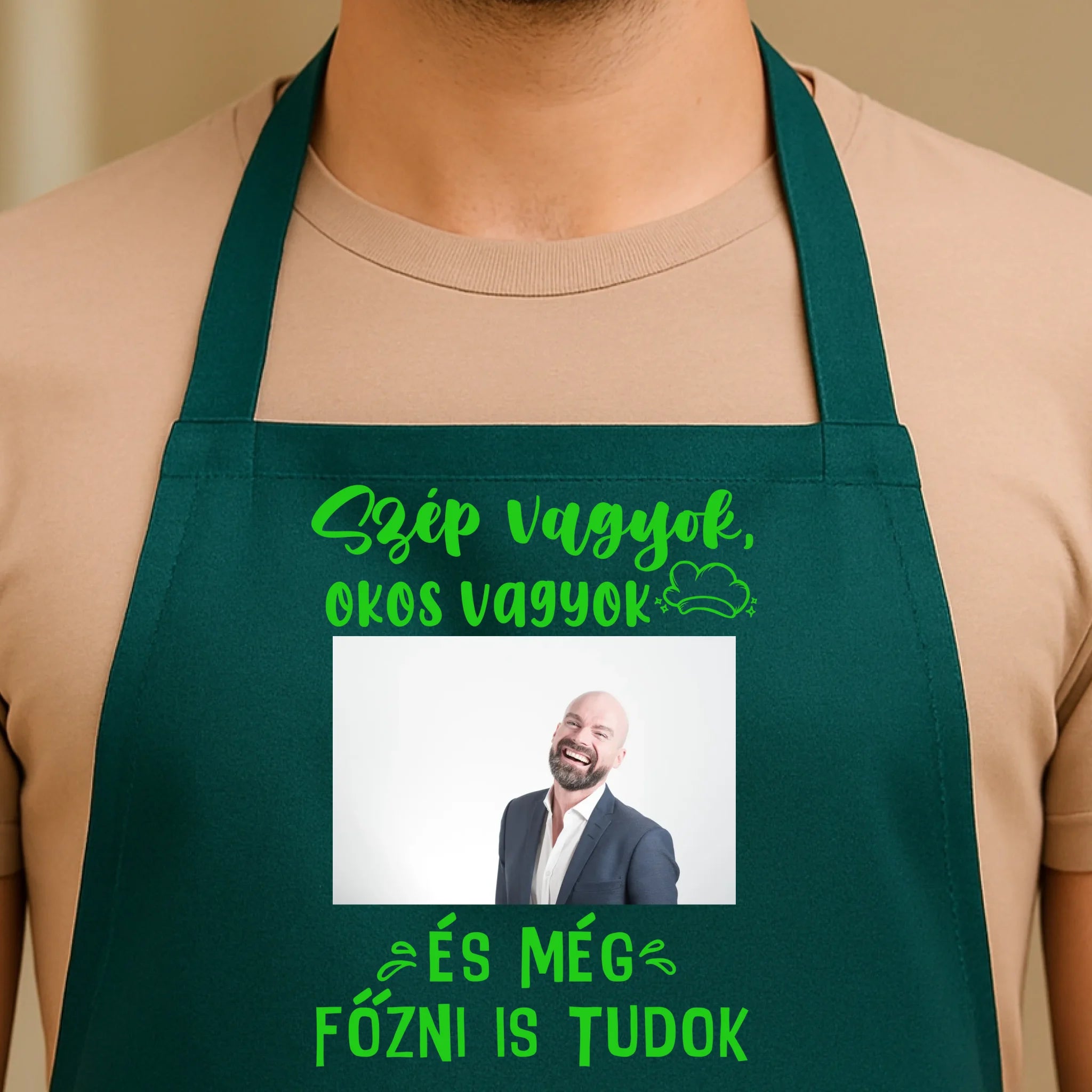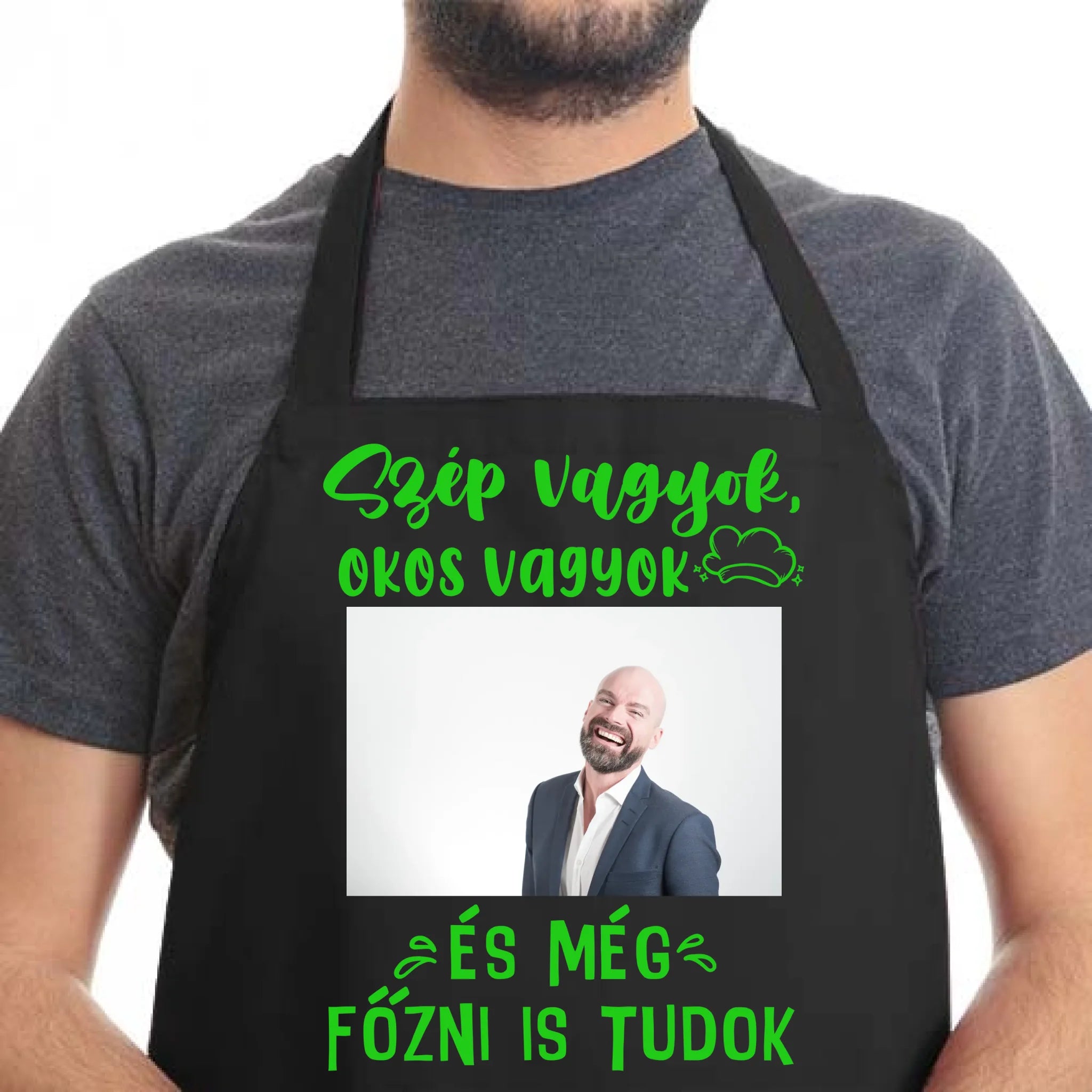 Vicces kötény fényképpel - szép vagyok, okos vagyok és még főzni is tudok