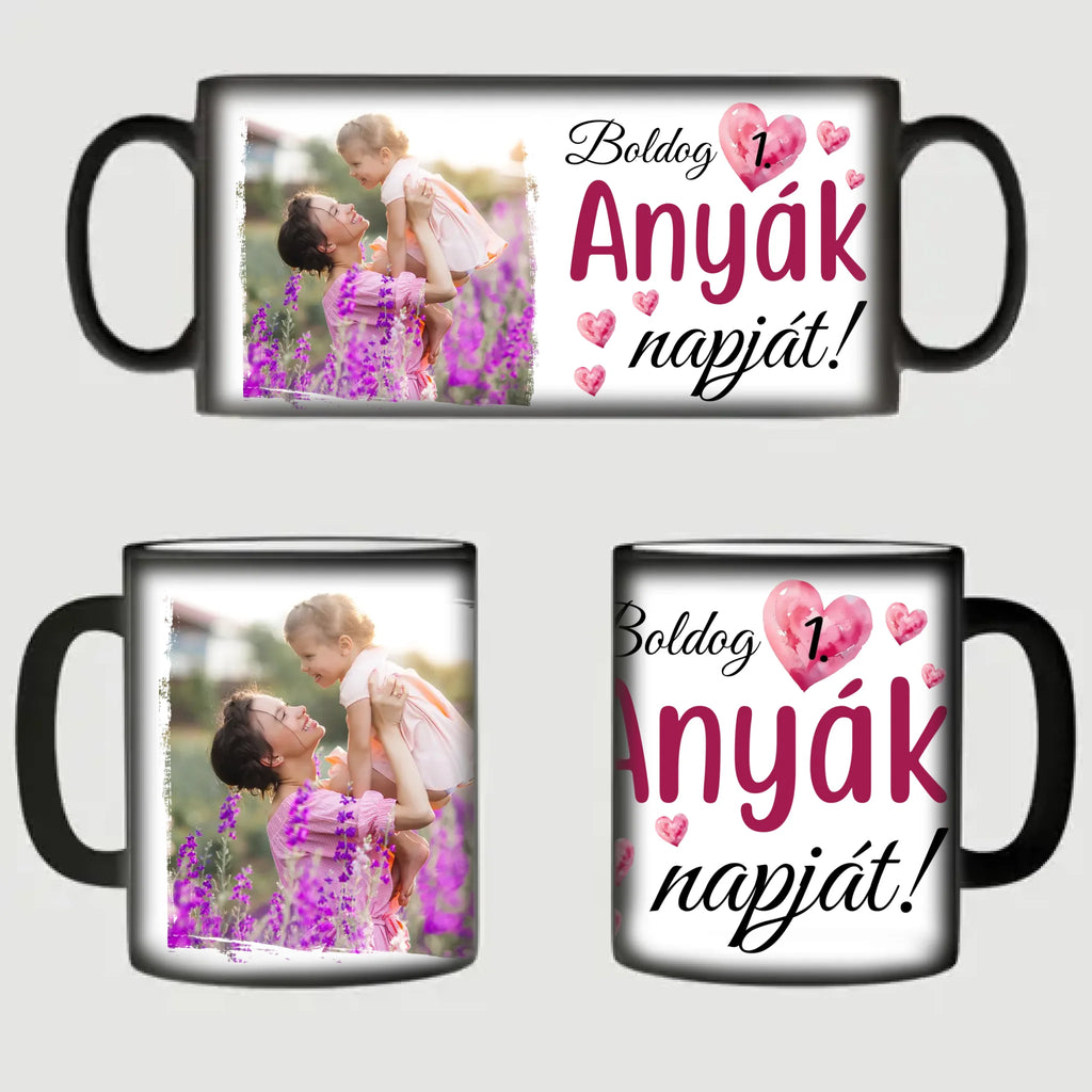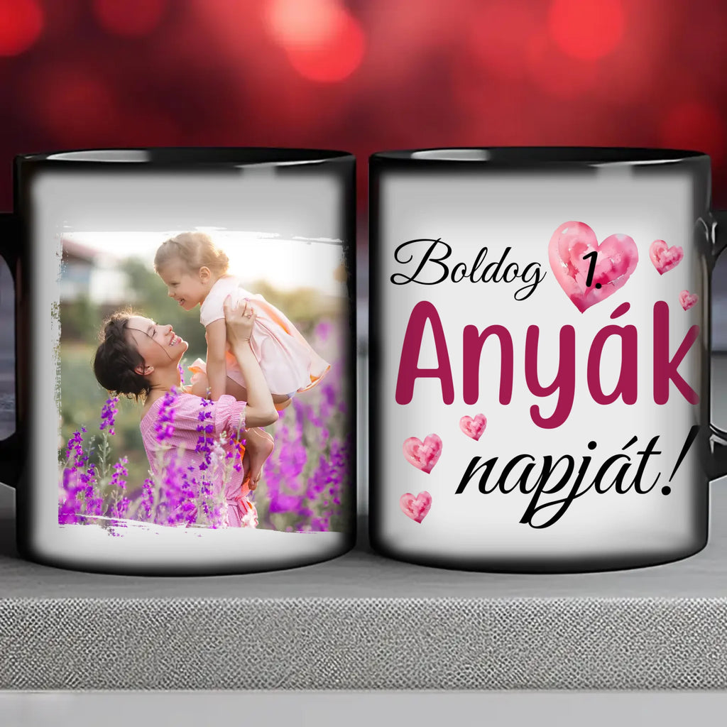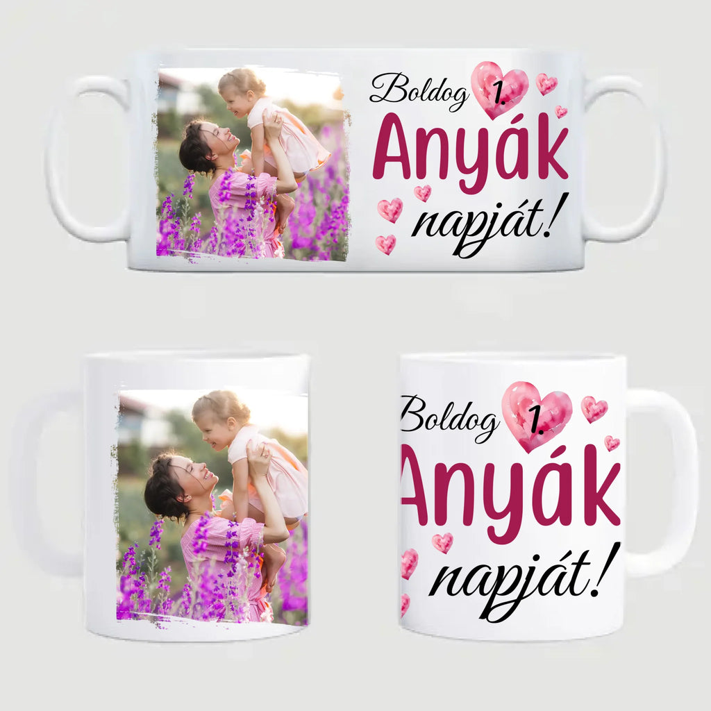 Egyedi anyák napi fényképes bögre a saját fotóddal. Az egyedi fényképes bögre remek ajándék Anyák napjára és születésnapra is. Az egyedi bögre nyomtatása nagyon magas hőfokon történik, ezáltal az anyag szerkezetébe sütjük bele, így a nyomat rendkívül tartós lesz és nem kopik, nem fakul ki. A fényképes bögréhez bármilyen fotót választhatsz, illetve feliratot is adhatsz hozzá.