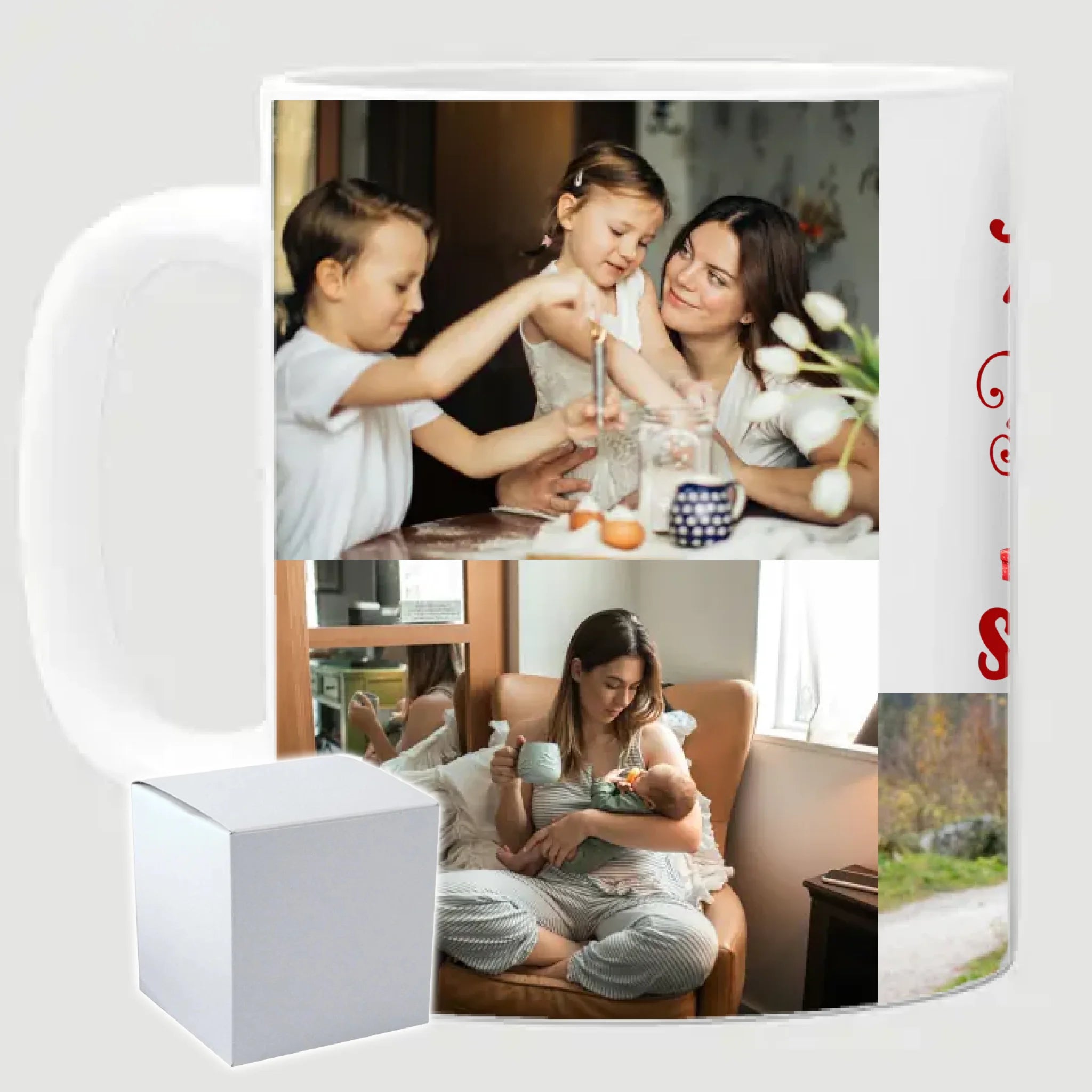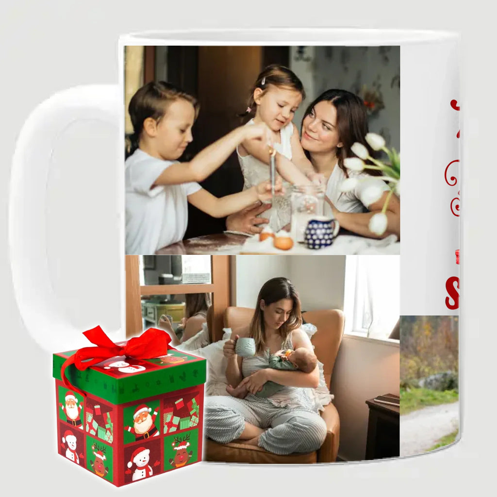 Fényképes karácsonyi bögre anyának választható felirattal - 5 képes