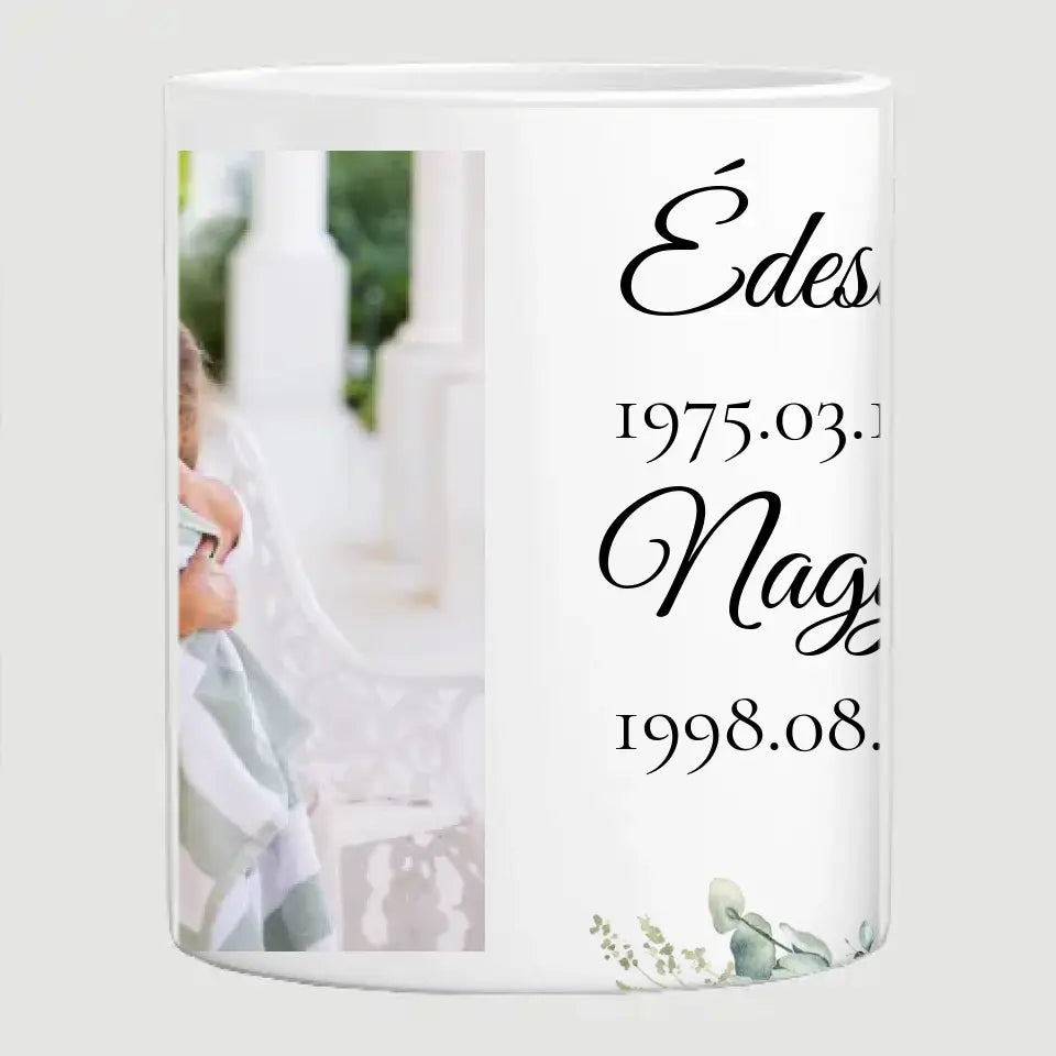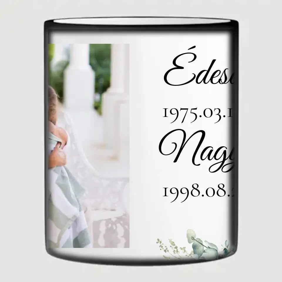 Egyedi fényképes bögre a saját fotóddal és egyedi felirattal. Az egyedi fényképes bögre remek ajándék bármilyen alkalomra. Az egyedi bögre nyomtatása nagyon magas hőfokon történik, ezáltal az anyag szerkezetébe sütjük bele, így a nyomat rendkívül tartós lesz és nem kopik, nem fakul ki. A fényképes bögréhez bármilyen fotót választhatsz, illetve feliratot is adhatsz hozzá.