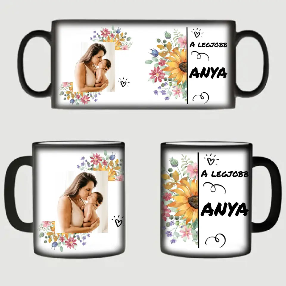Egyedi fényképes bögre a saját fotóddal és egyedi felirattal. Az egyedi fényképes bögre remek ajándék bármilyen alkalomra. Az egyedi bögre nyomtatása nagyon magas hőfokon történik, ezáltal az anyag szerkezetébe sütjük bele, így a nyomat rendkívül tartós lesz és nem kopik, nem fakul ki. A fényképes bögréhez bármilyen fotót választhatsz, illetve feliratot is adhatsz hozzá.