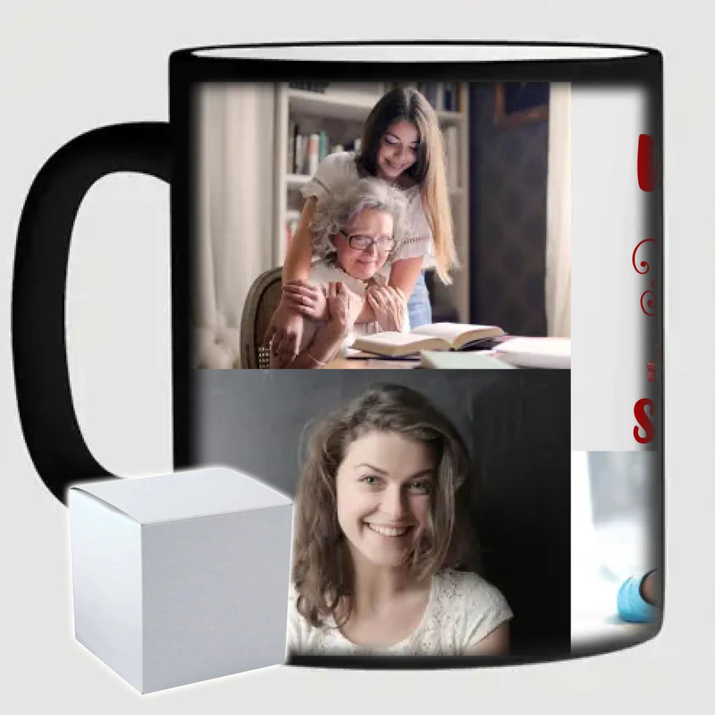 A bögre szoba hőmérsékleten fekete színű, forró folyadékkal való feltöltés hatására tűnik elő a nyomtatott minta