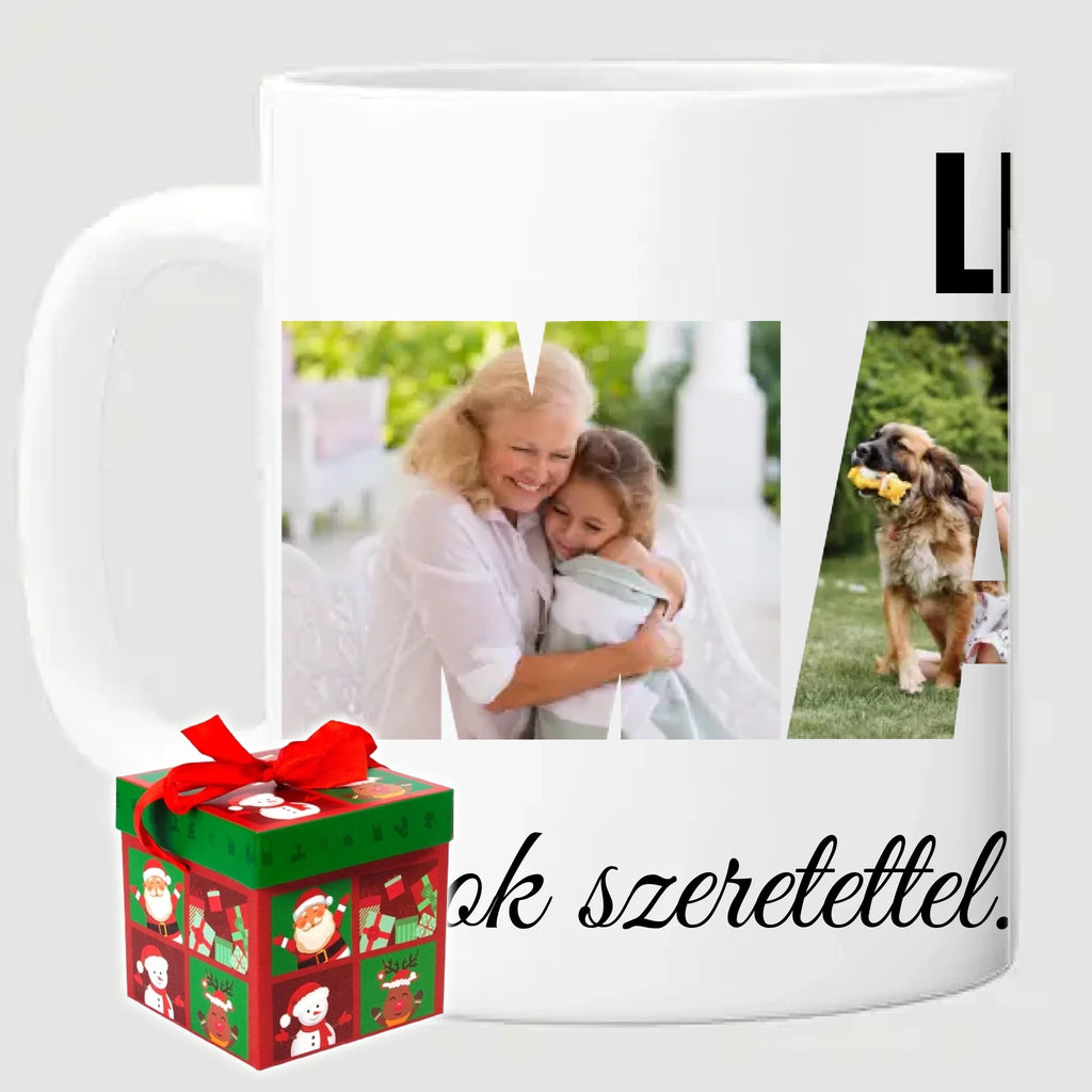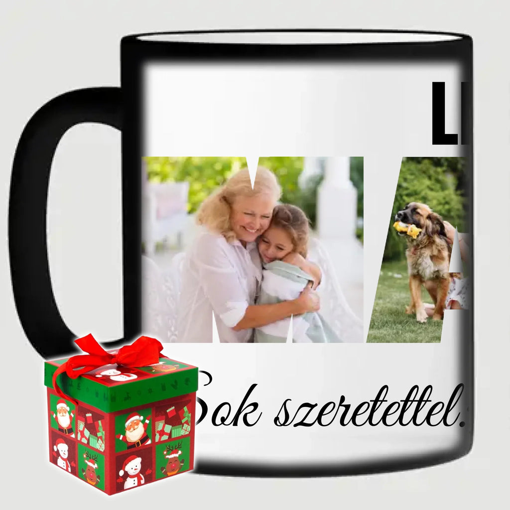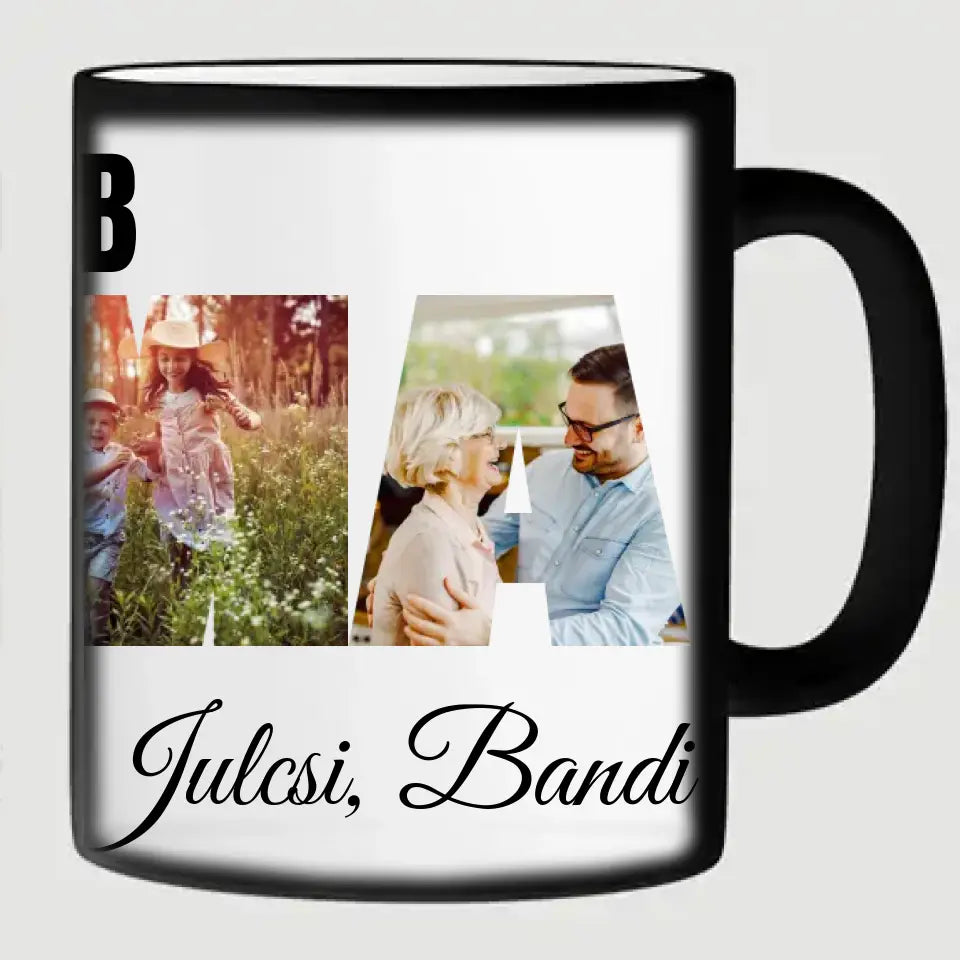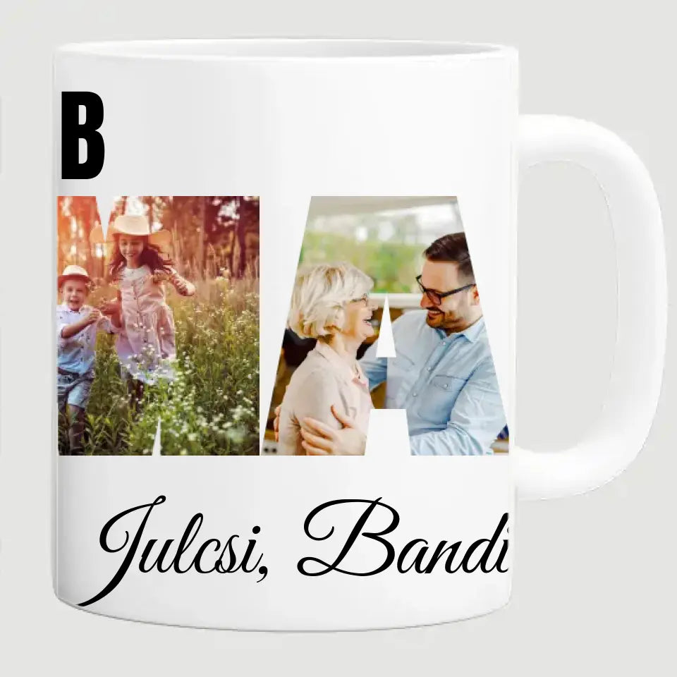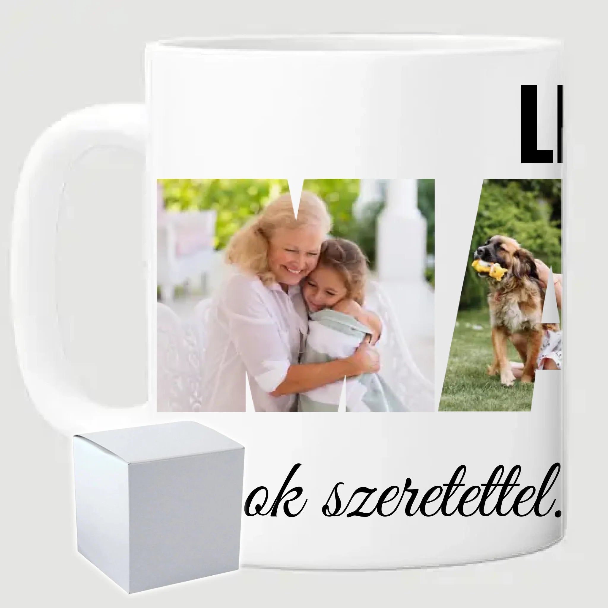 Egyedi fényképes bögre a saját fotóddal és egyedi felirattal. Az egyedi fényképes bögre remek ajándék bármilyen alkalomra. Az egyedi bögre nyomtatása nagyon magas hőfokon történik, ezáltal az anyag szerkezetébe sütjük bele, így a nyomat rendkívül tartós lesz és nem kopik, nem fakul ki. A fényképes bögréhez bármilyen fotót választhatsz, illetve feliratot is adhatsz hozzá.