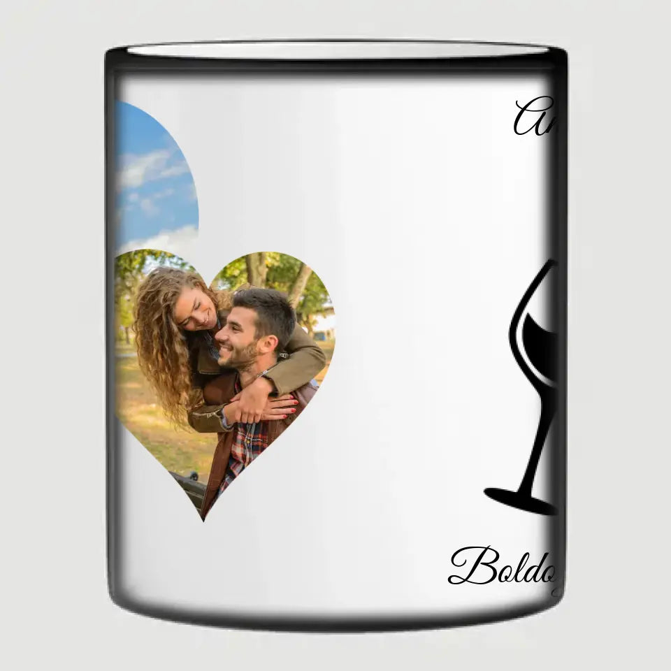 Egyedi fényképes bögre a saját fotóddal. Az egyedi fényképes bögre remek ajándék Valentin napra és évfordulóra. Az egyedi bögre nyomtatása nagyon magas hőfokon történik, ezáltal az anyag szerkezetébe sütjük bele, így a nyomat rendkívül tartós lesz és nem kopik, nem fakul ki. A fényképes bögréhez bármilyen fotót választhatsz, illetve feliratot is adhatsz hozzá.