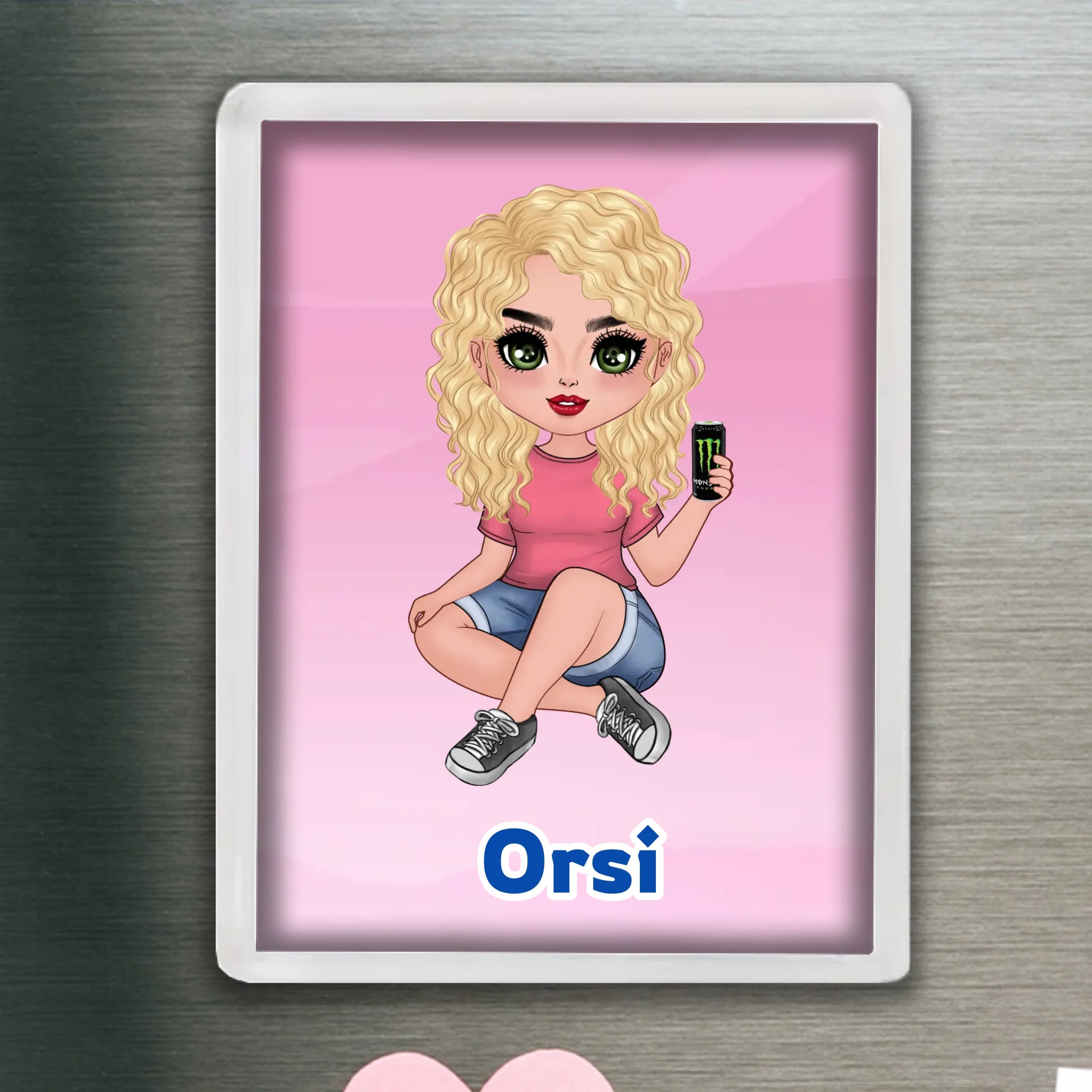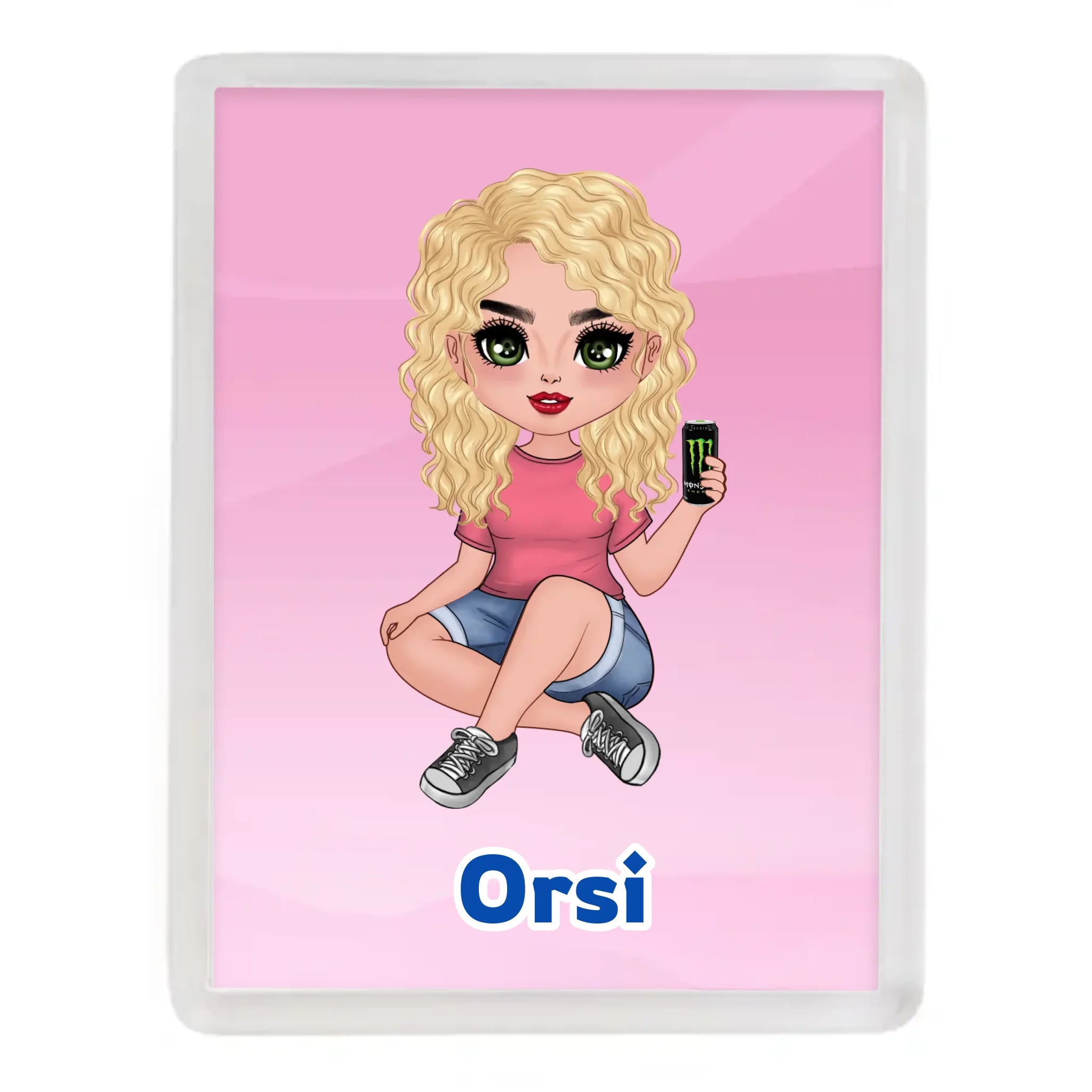 Egyedi hűtőmágnes szerkeszthető lány karakterrel