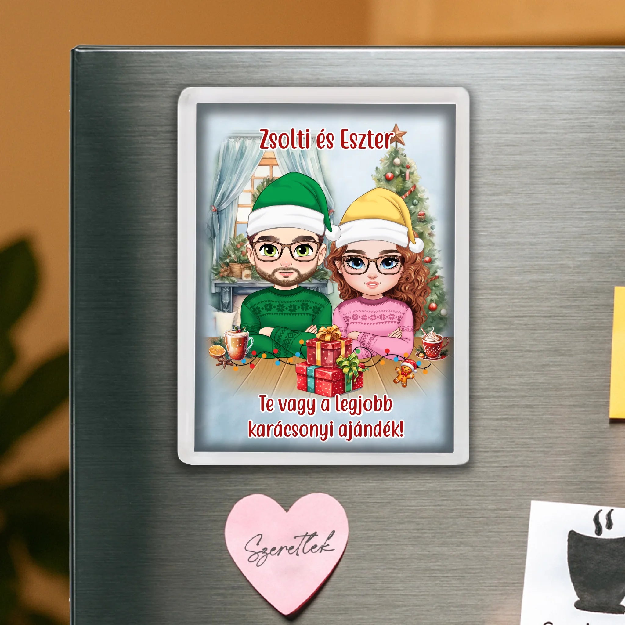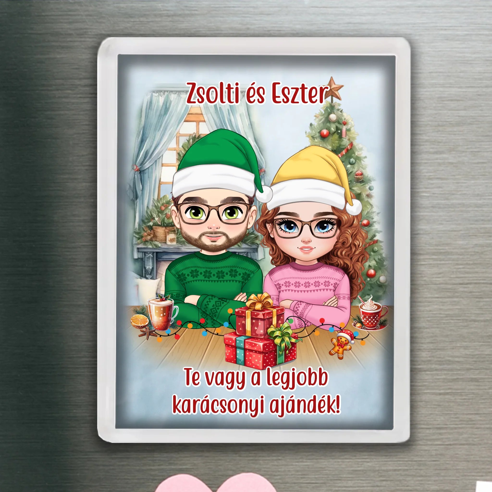 Egyedi karácsonyi hűtőmágnes szerkeszthető karakterekkel pároknak