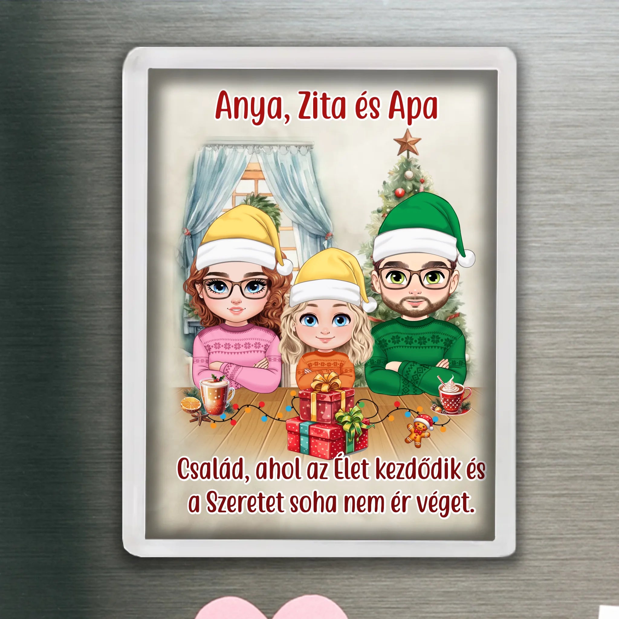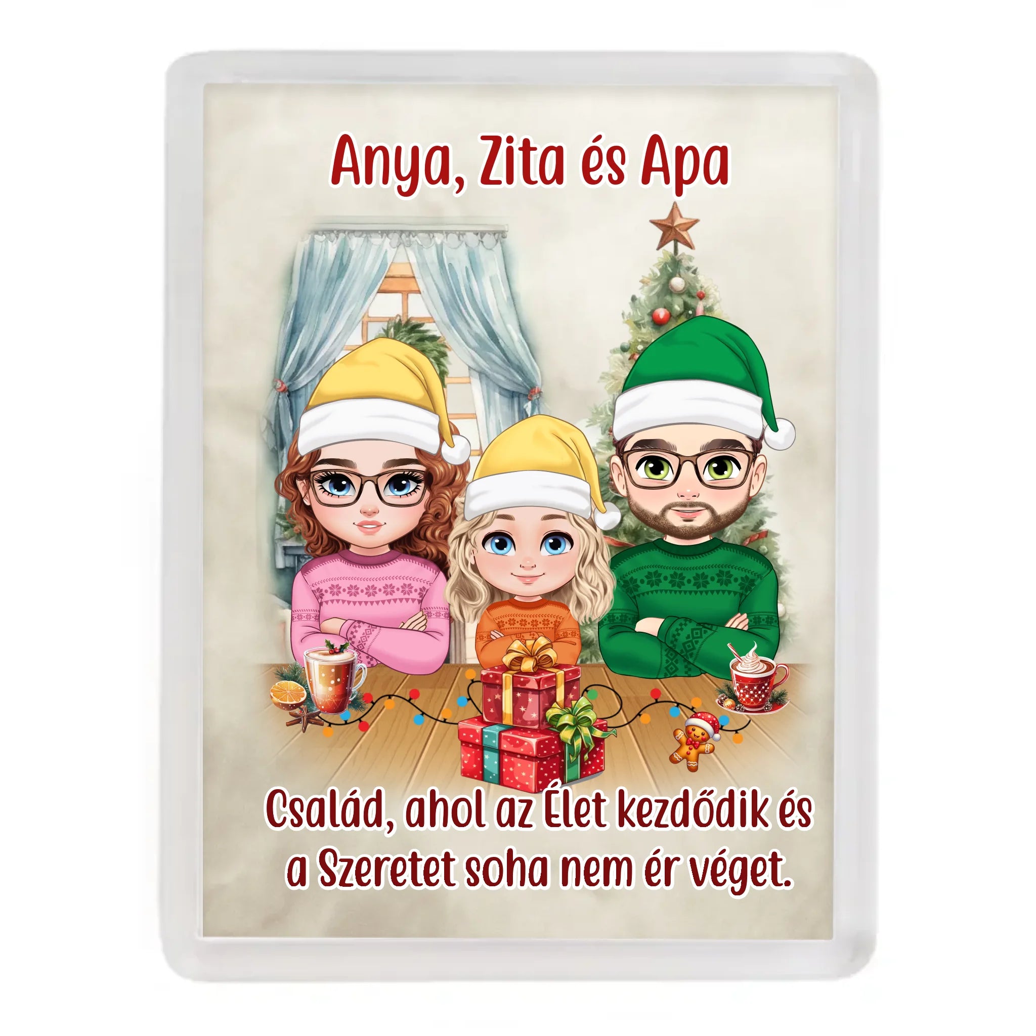 Egyedi karácsonyi hűtőmágnes szülők és gyerekek minta