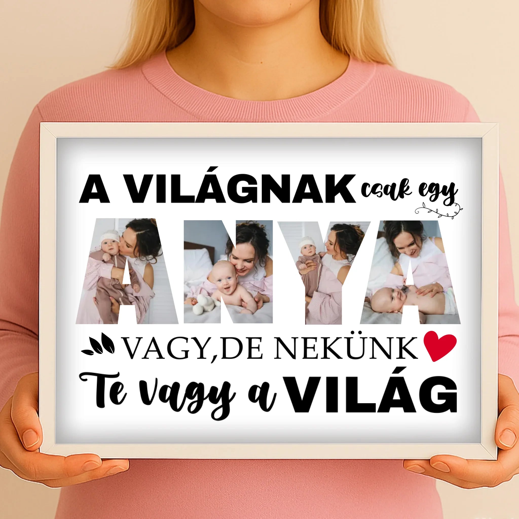 A világnak csak egy anya vagy, de nekünk te vagy a világ - egyedi fényképes falikép anyának