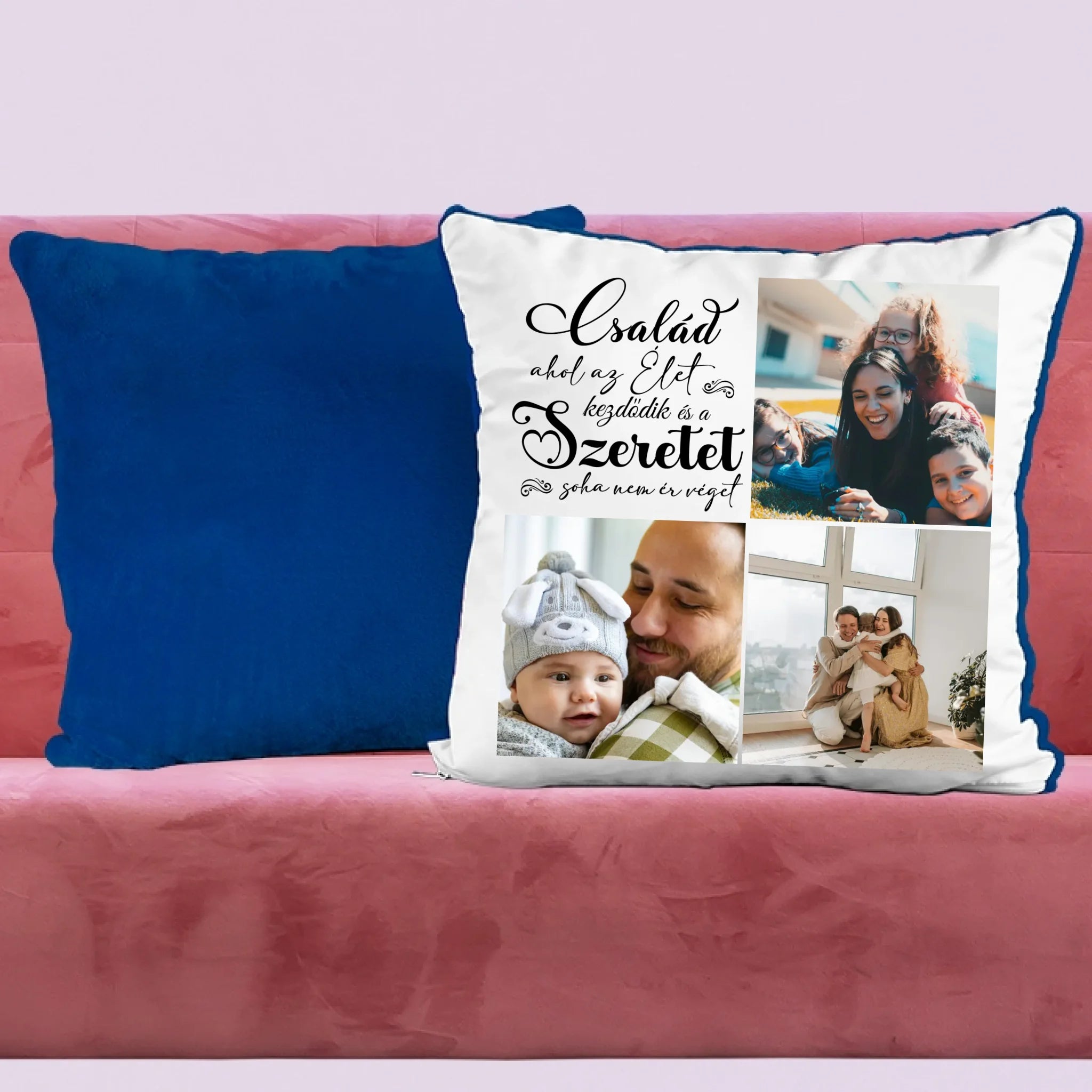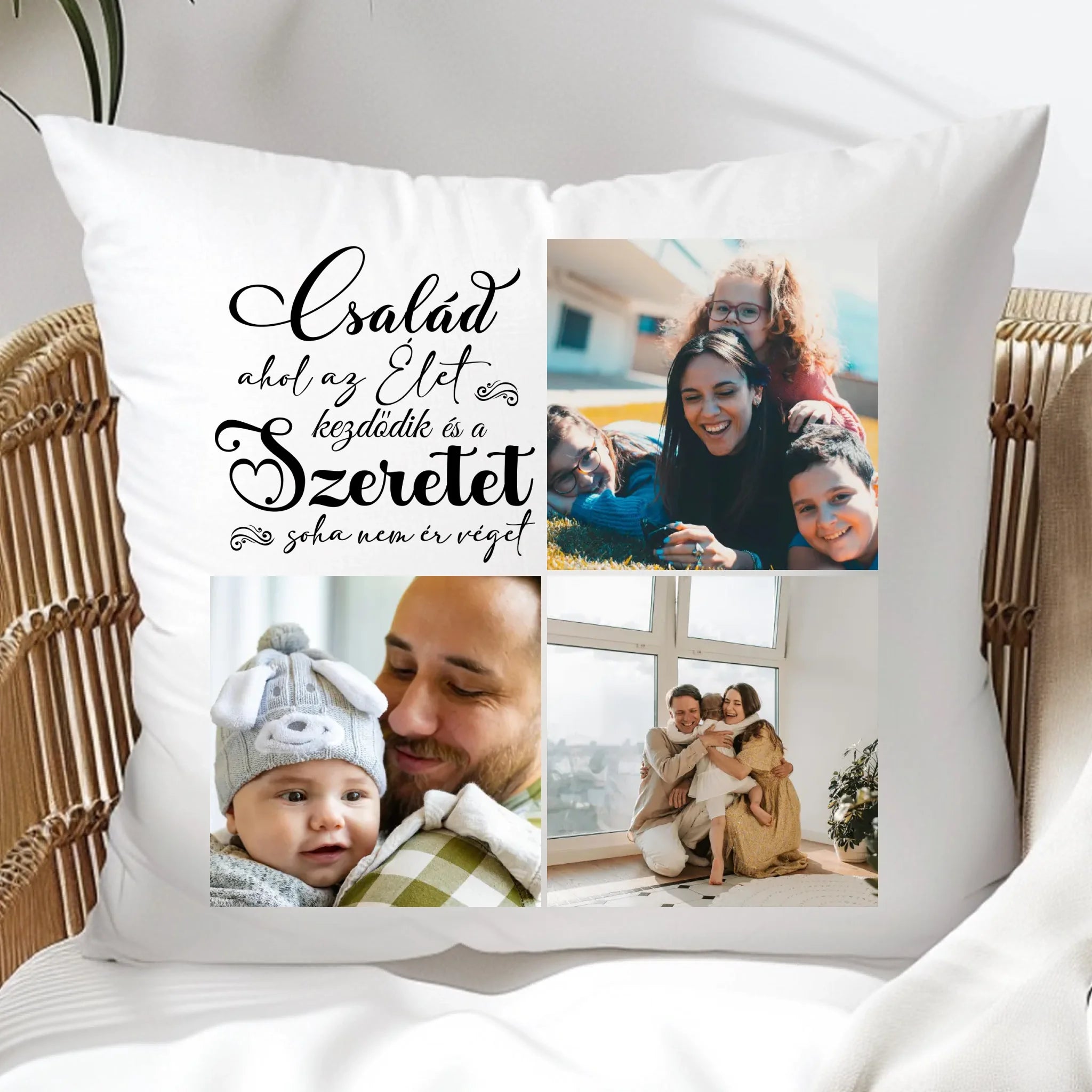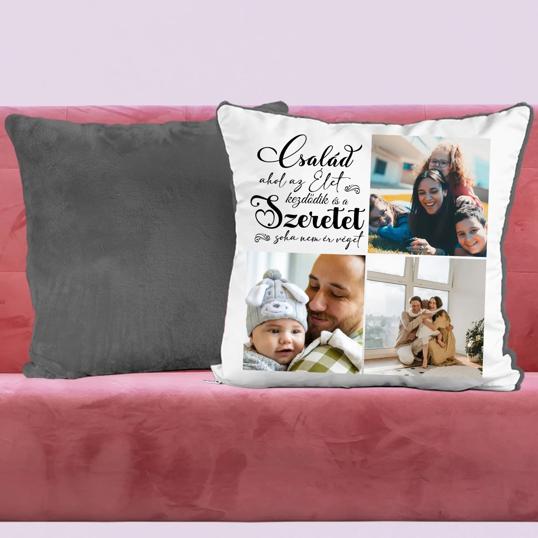 Egyedi fényképes párna 3 általad feltöltött képpel és választható felirattal