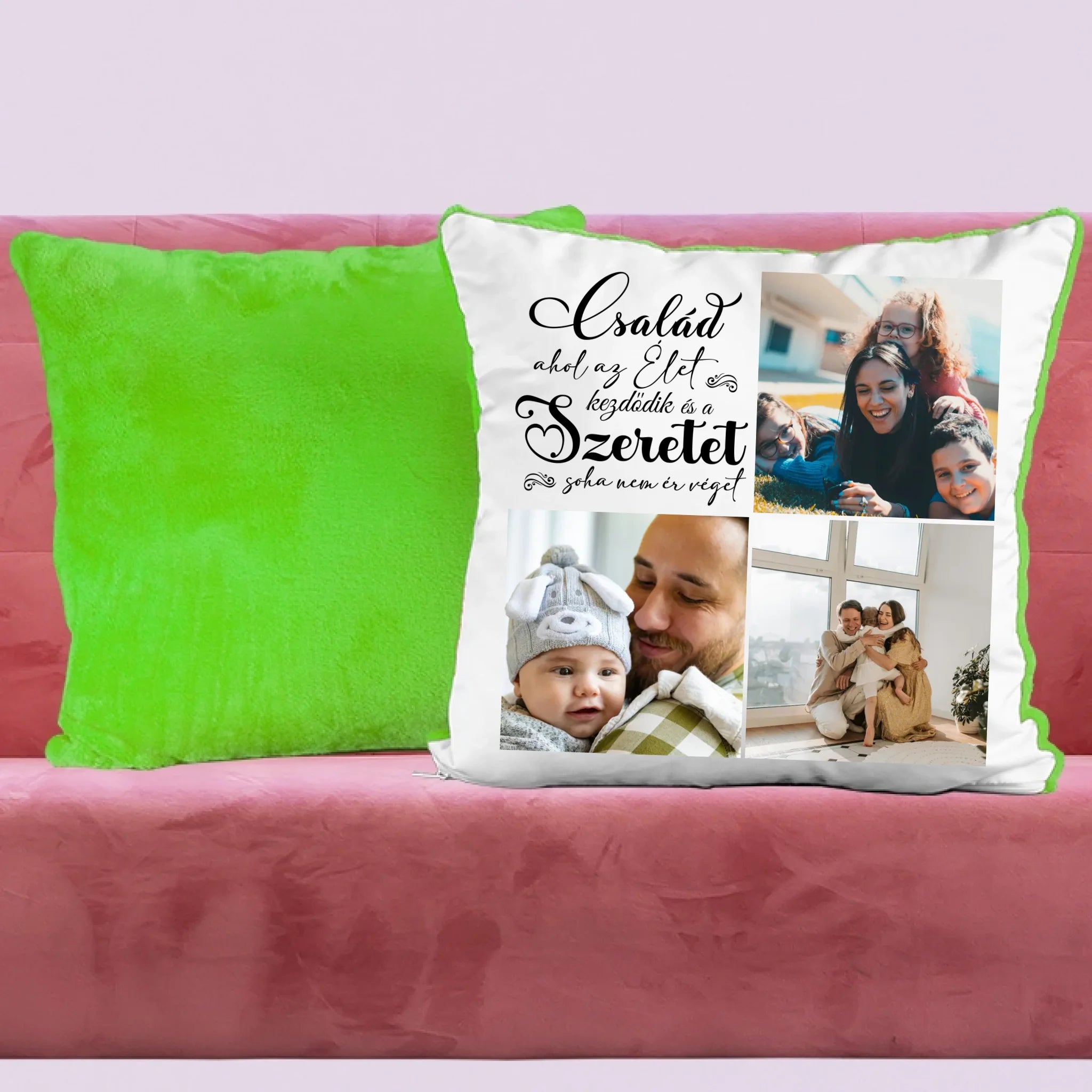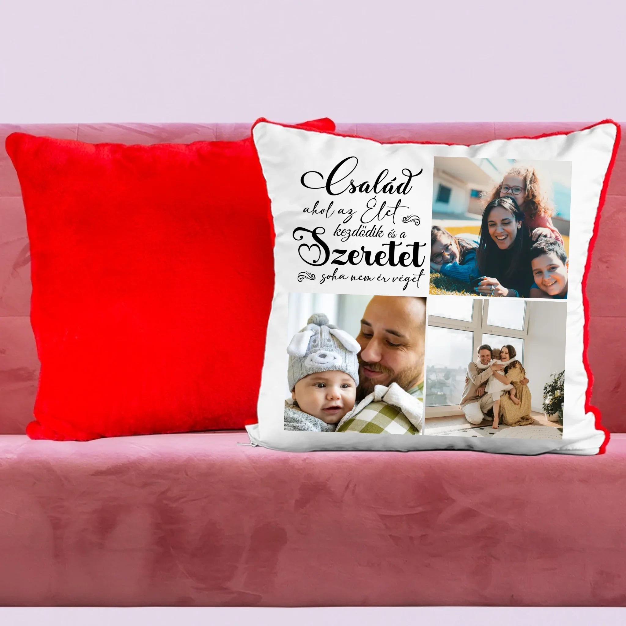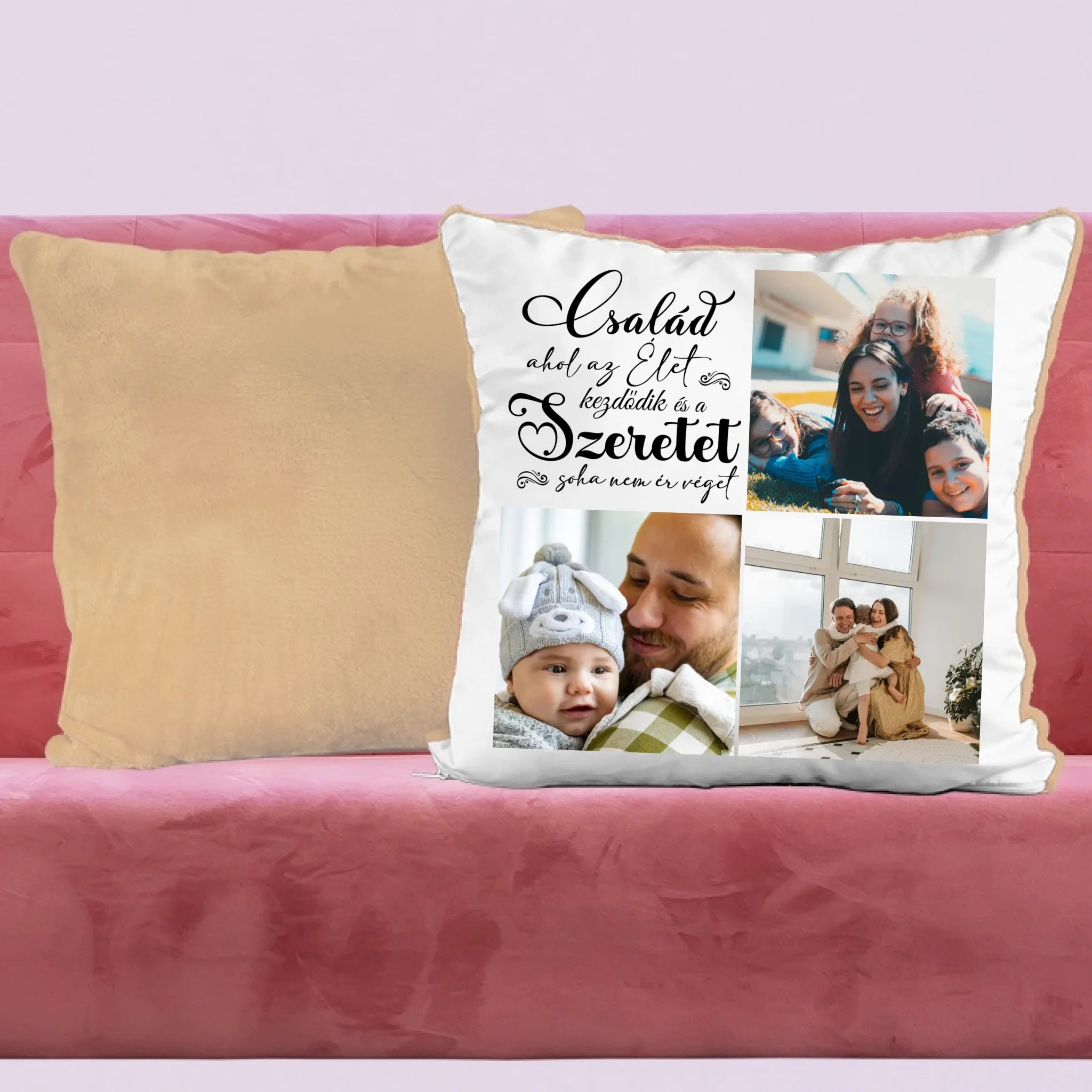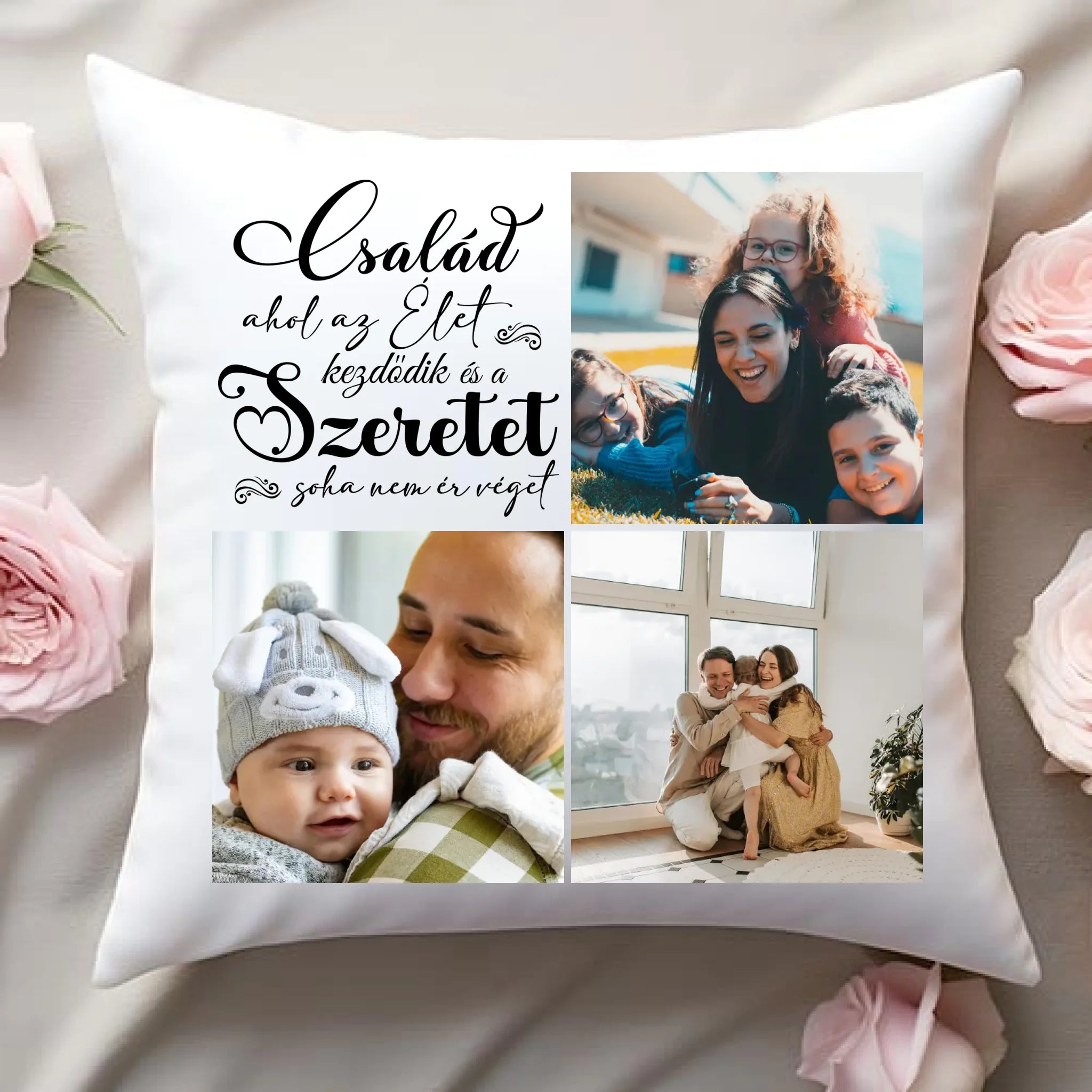 Egyedi fényképes párna 3 általad feltöltött képpel és választható felirattal