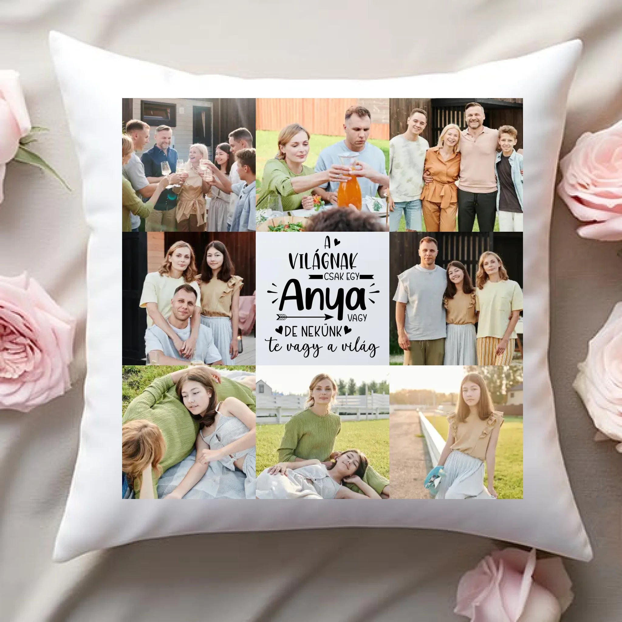 Egyedi fényképes párna anyának 8 fotóval és felirattal.