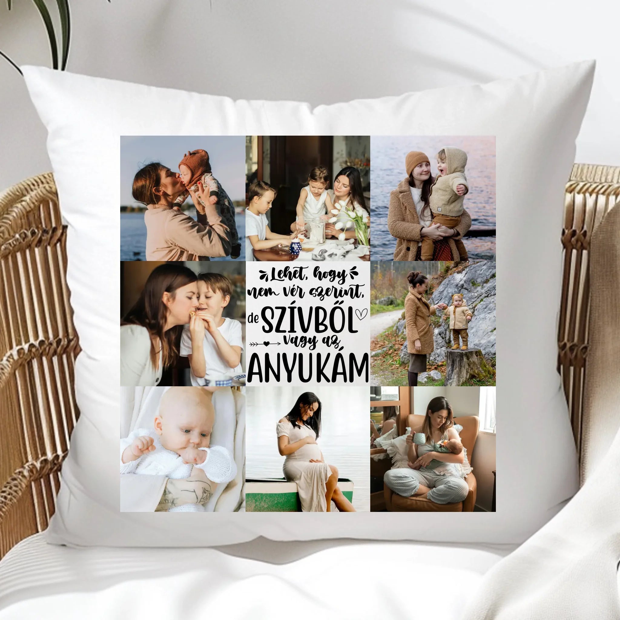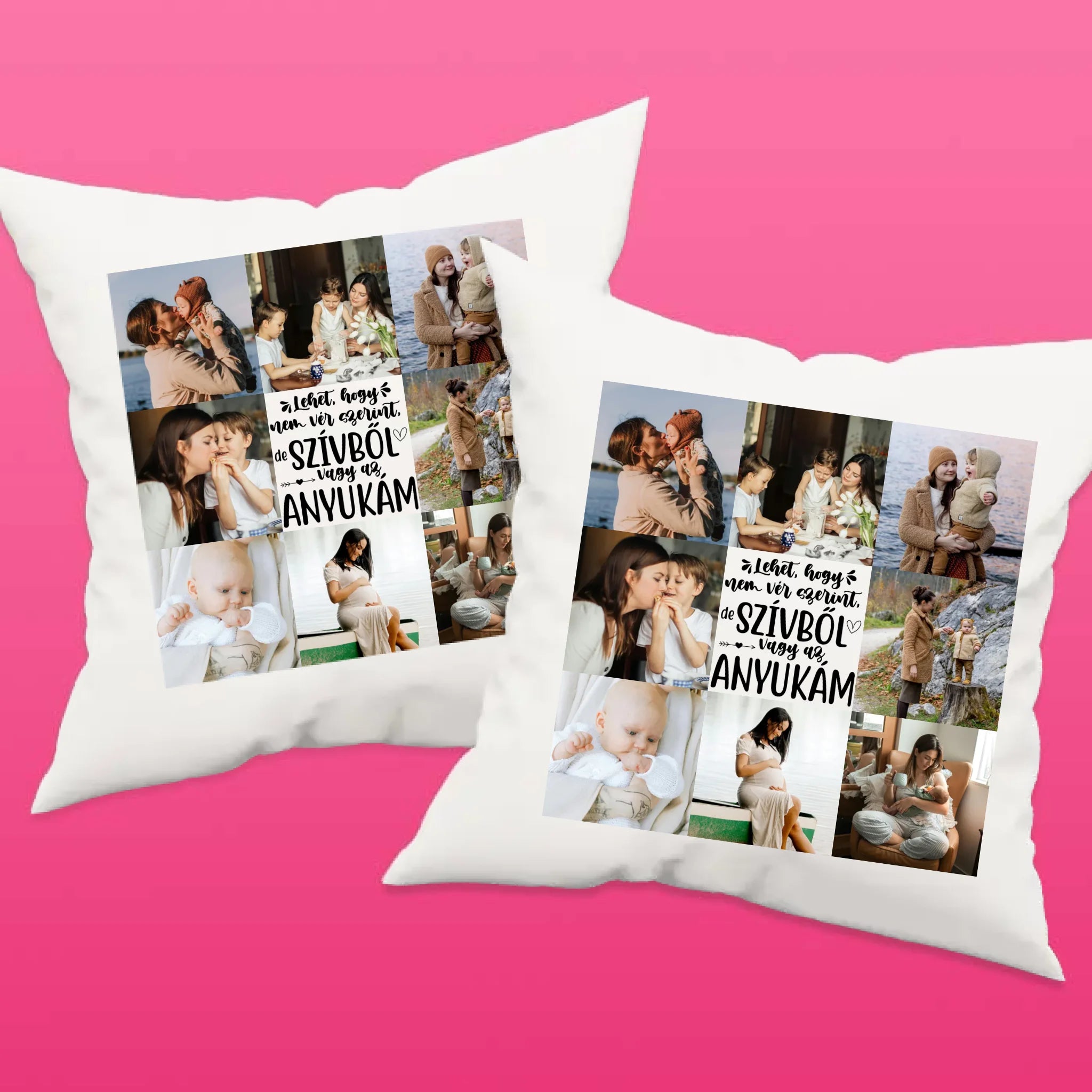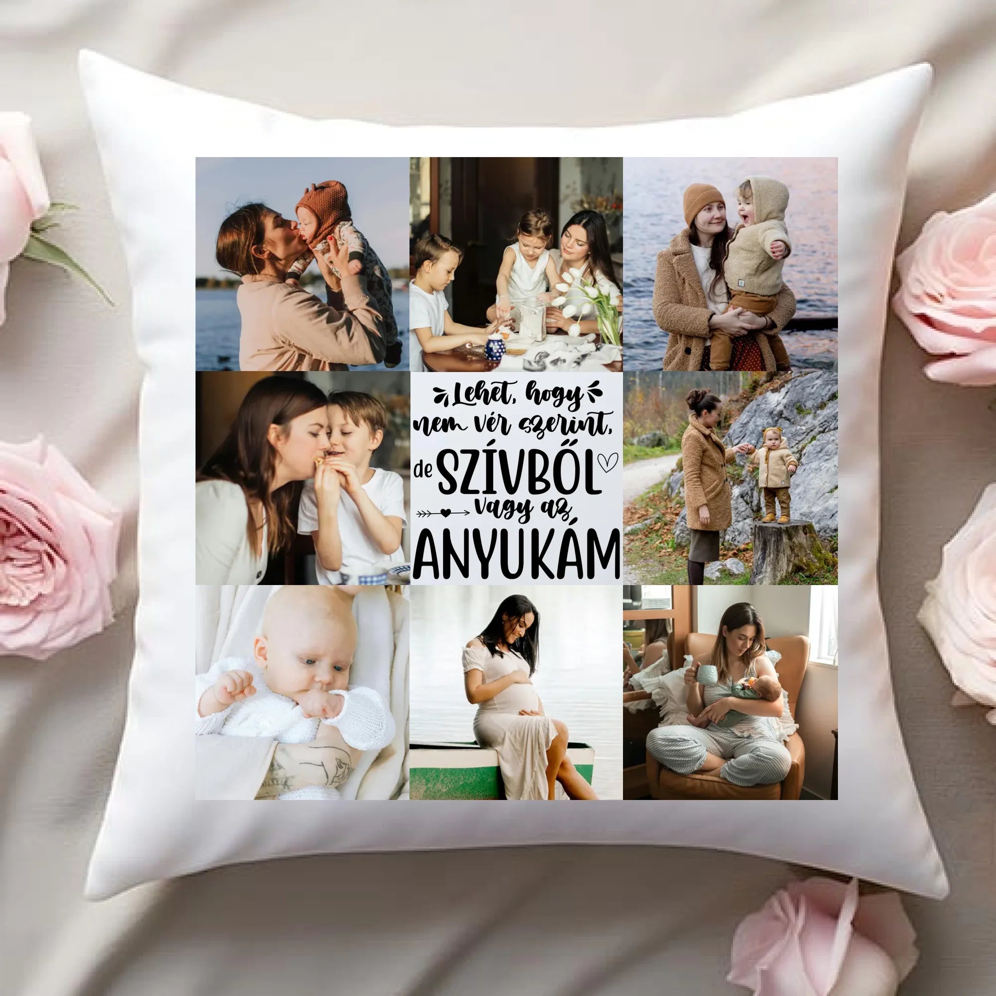 A fényképes párna nevelőanyának 8 képpel és választható felirattal tökéletes meglepetés nevelőanyának anyák napjára, születésnapra, névnapra, karácsonyra vagy csak úgy!