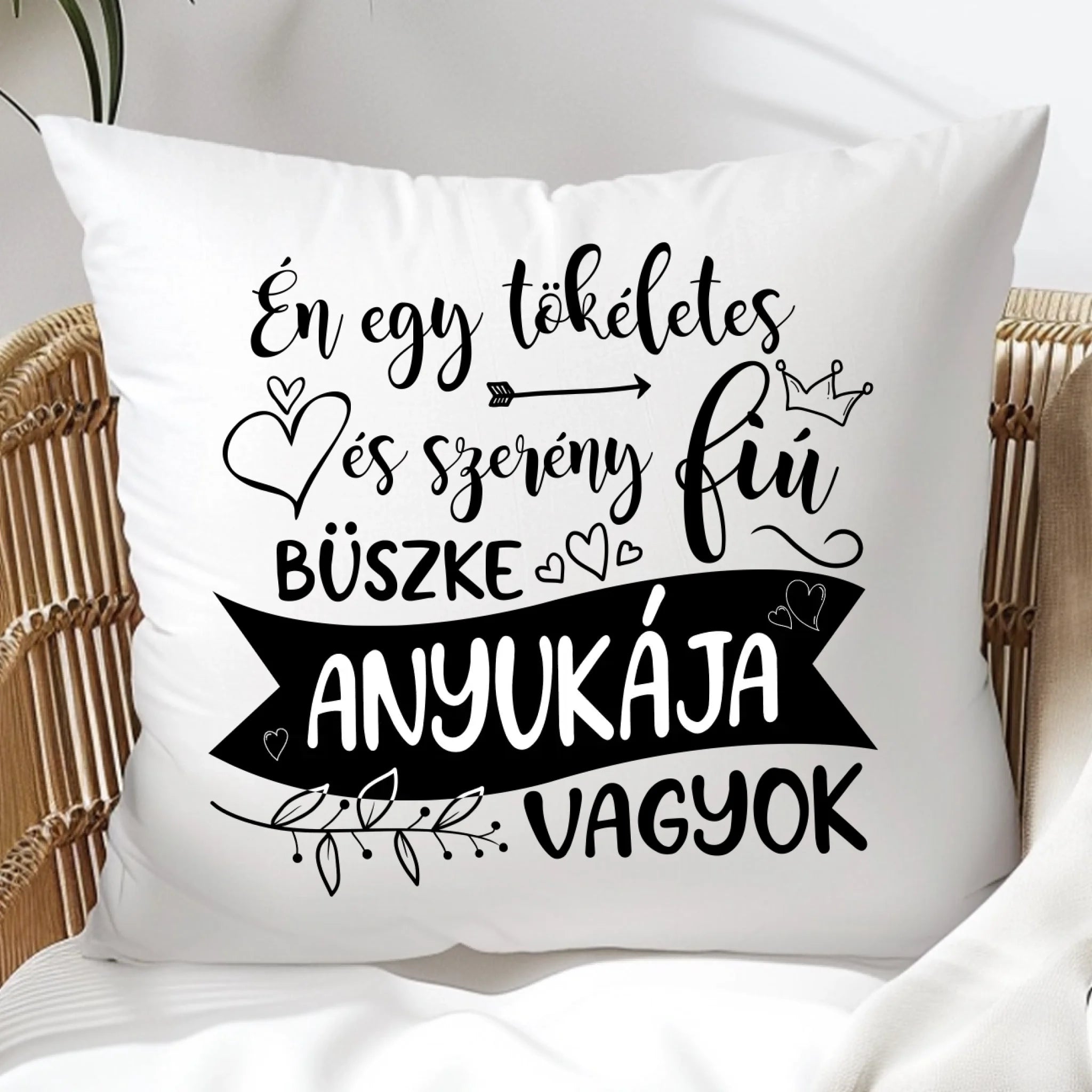 Egyedi párna vicces felirattal anyák napjára, melyre saját képet is kérhetsz. A vicces " Én egy tökéletes és szerény fiú büszke anyukája vagyok" felirat garantálja, hogy mosolyt csalj édesanyád arcára, legyen szó anyák napjáról, születésnapról, névnapról vagy karácsonyról.