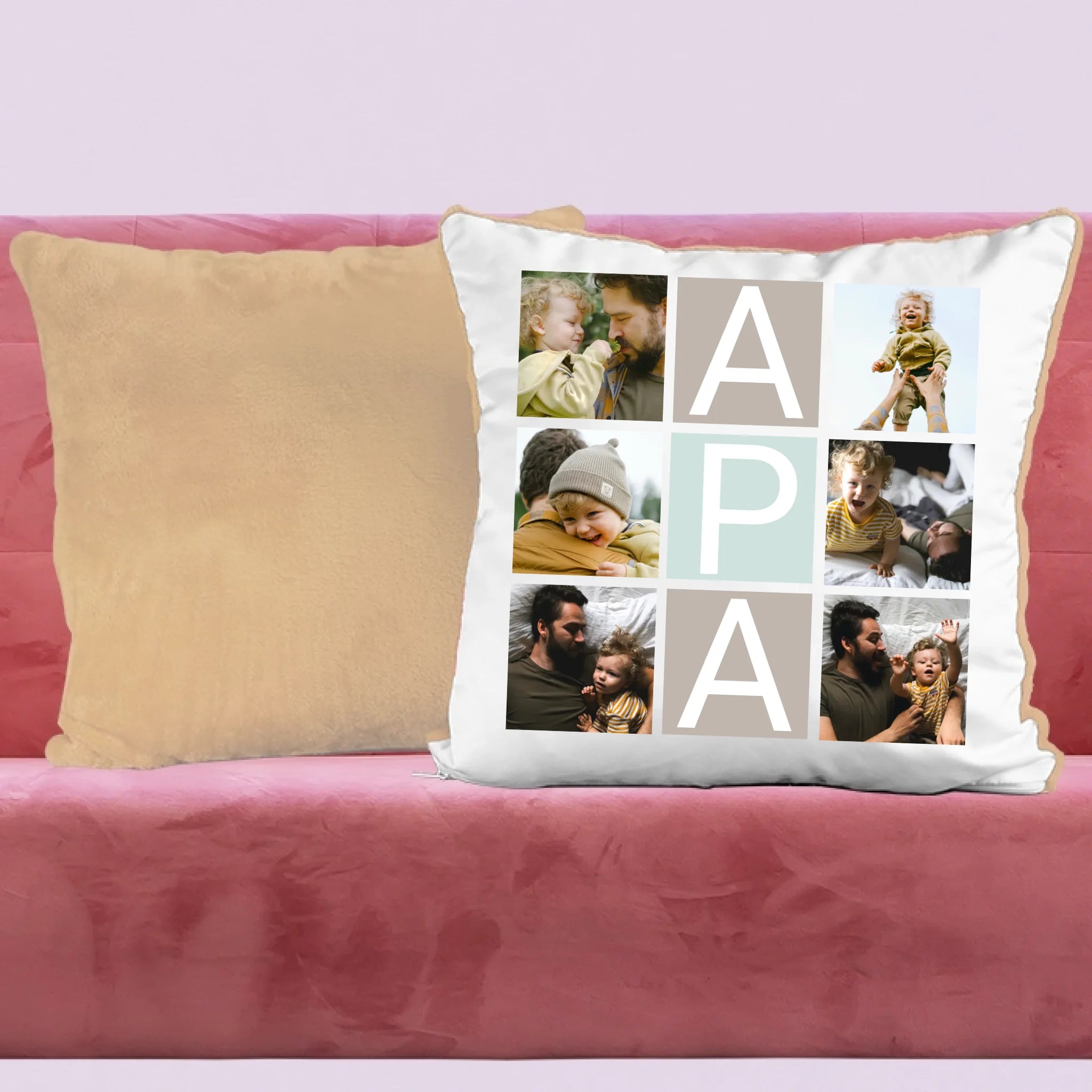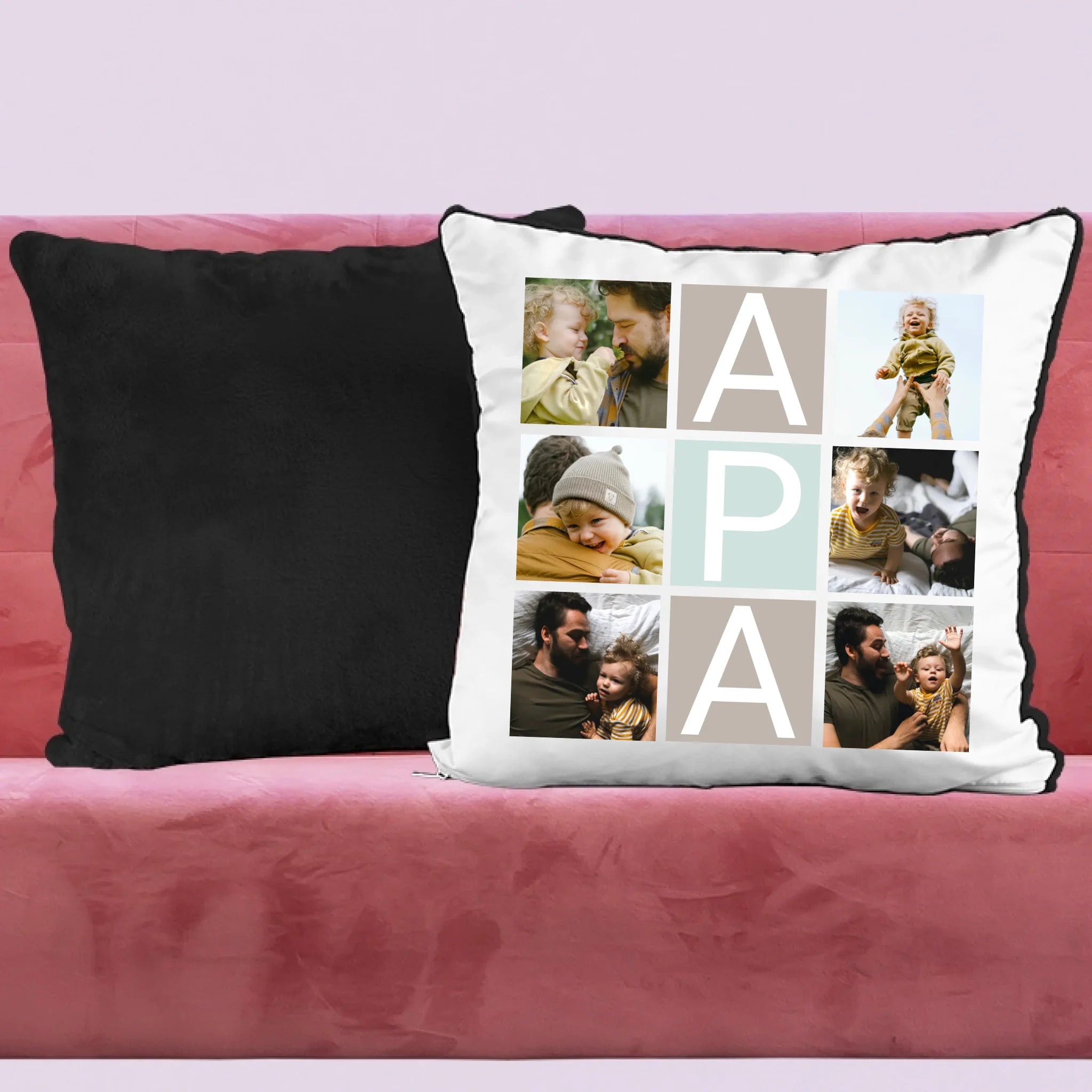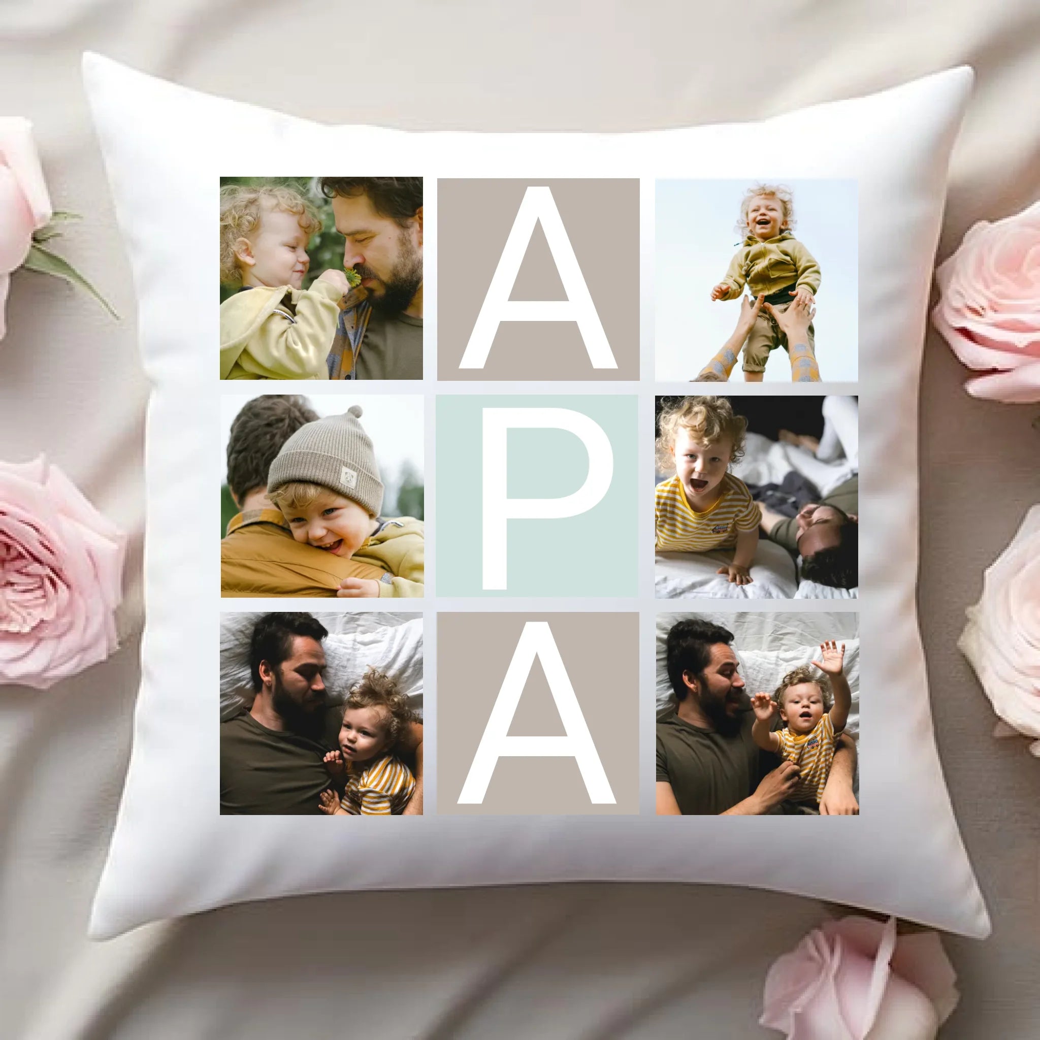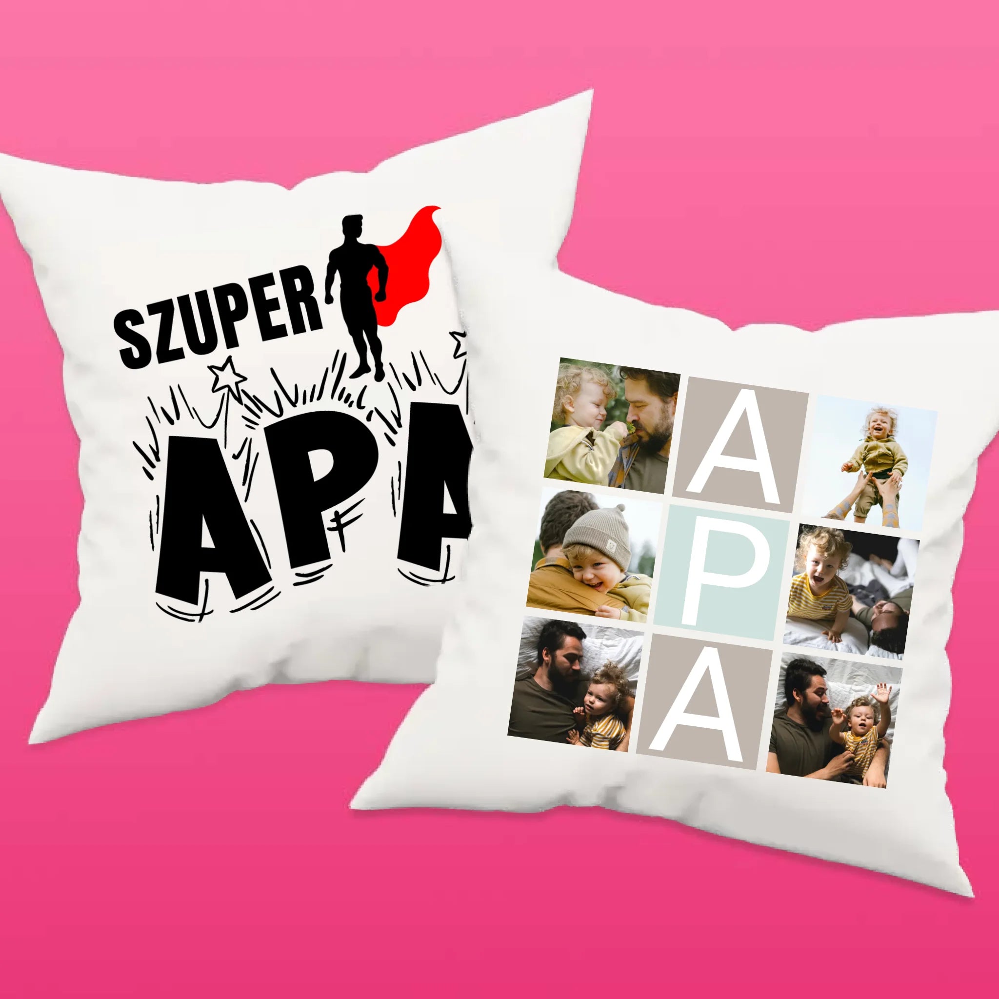 Apa feliratos egyedi 6 fényképes párna, az igazán szívhez szóló meglepetés apának apák napjára, születésnapra, névnapra, karácsonyra...vagy csak úgy!