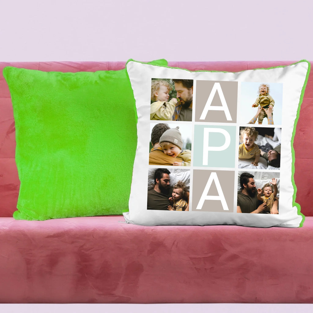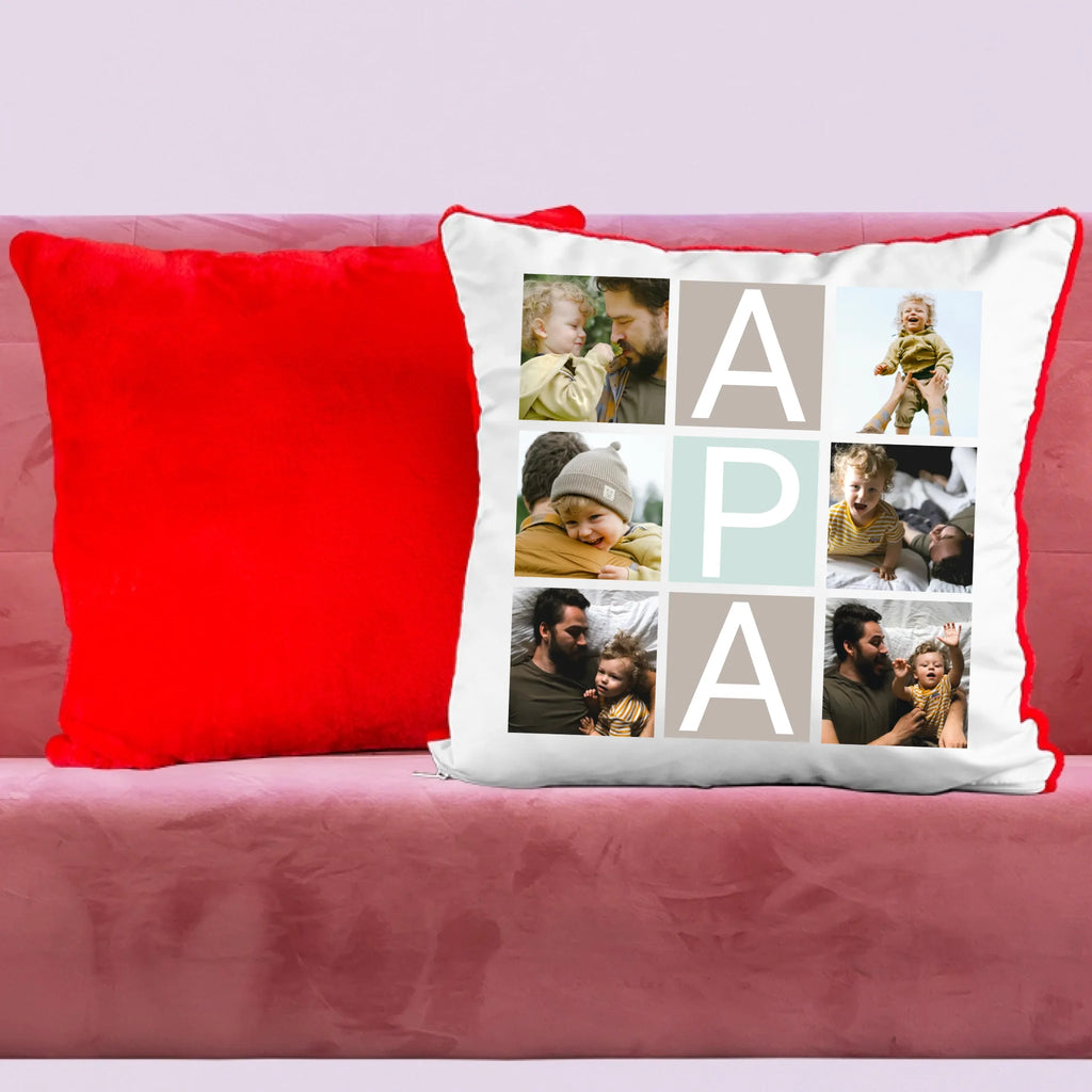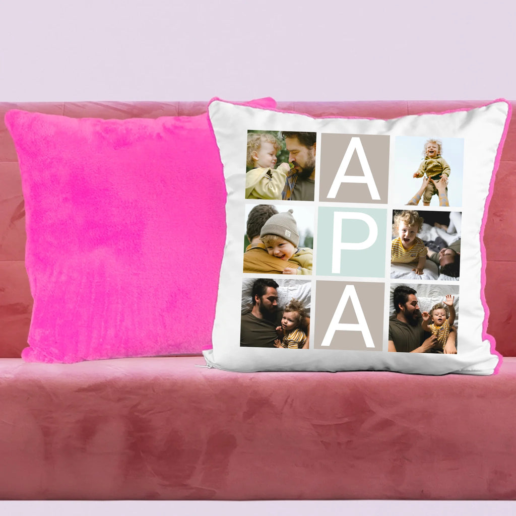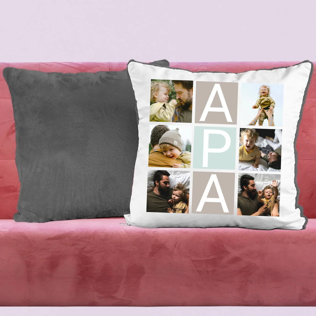 Apa feliratos egyedi 6 fényképes párna, az igazán szívhez szóló meglepetés apának apák napjára, születésnapra, névnapra, karácsonyra...vagy csak úgy!