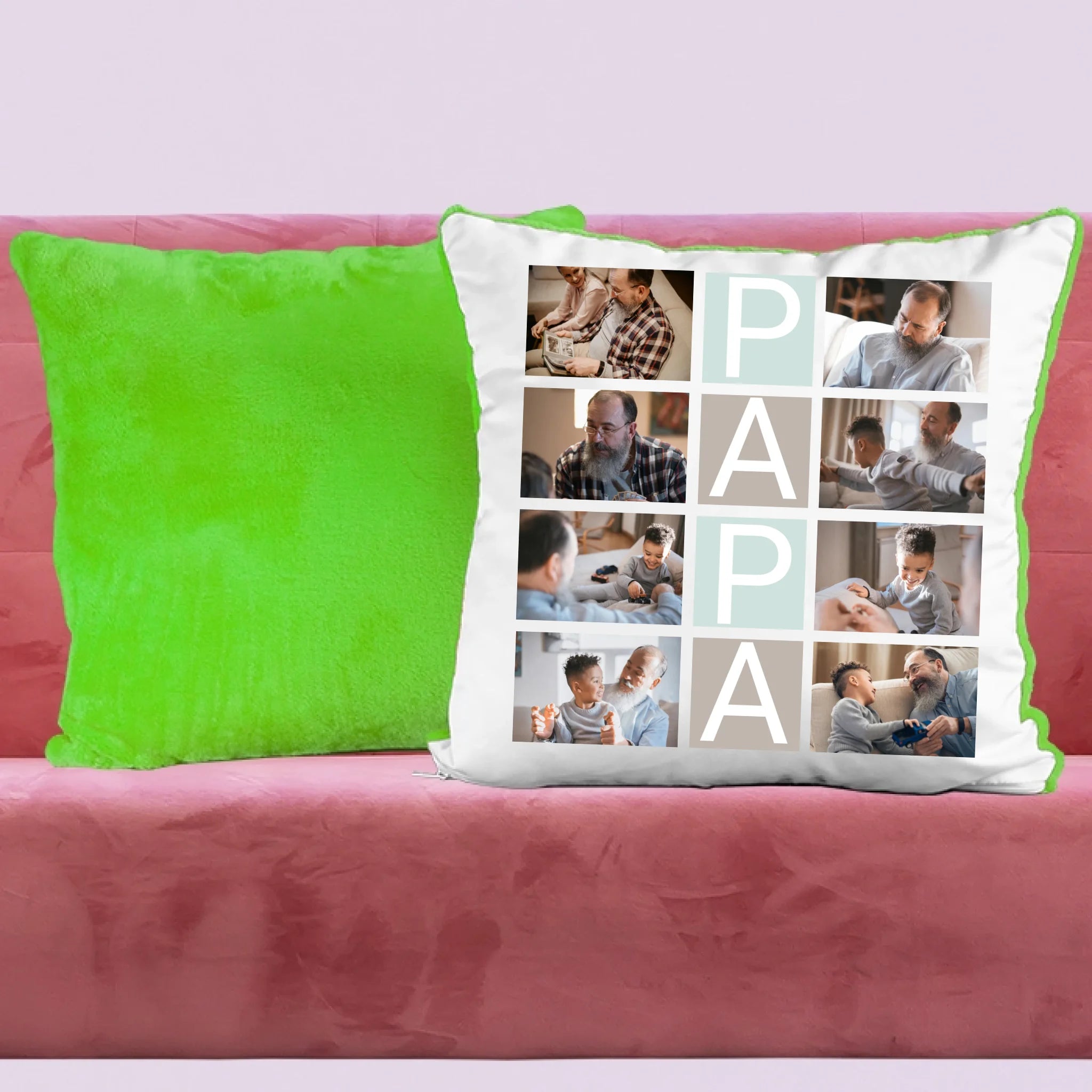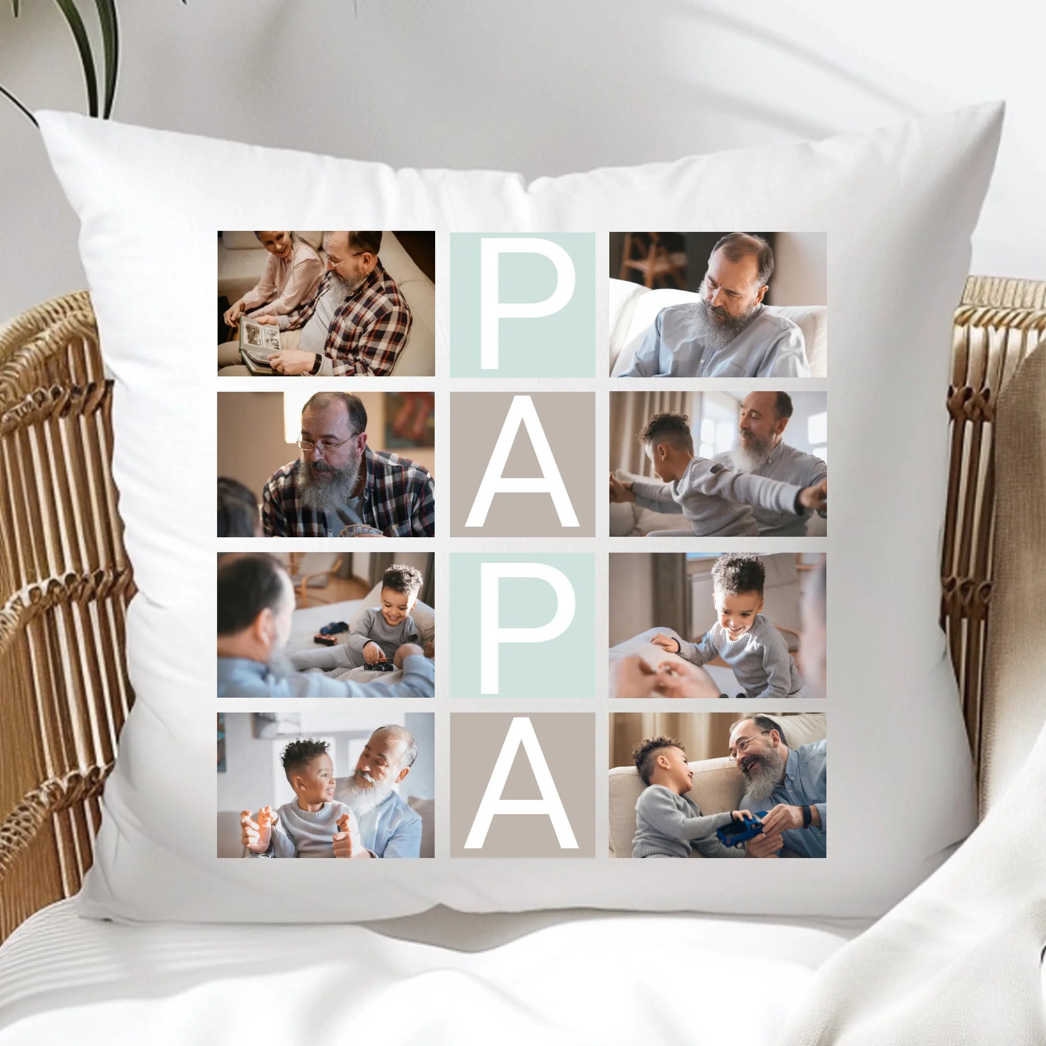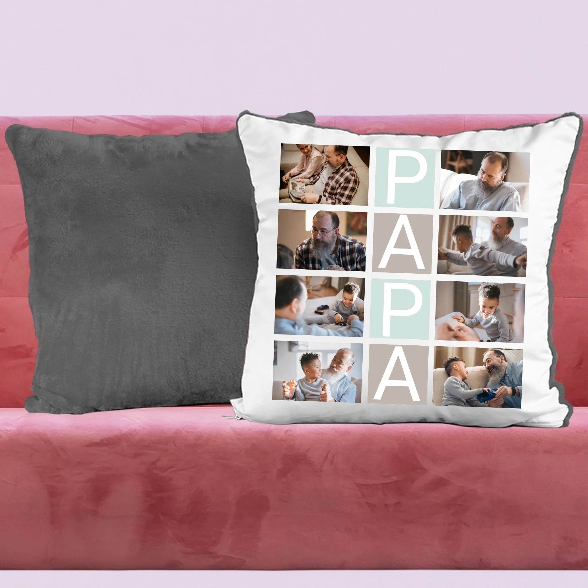 Papa feliratos egyedi 8 fényképes párna, az igazán szívhez szóló meglepetés papának apák napjára, születésnapra, névnapra, karácsonyra...vagy csak úgy!