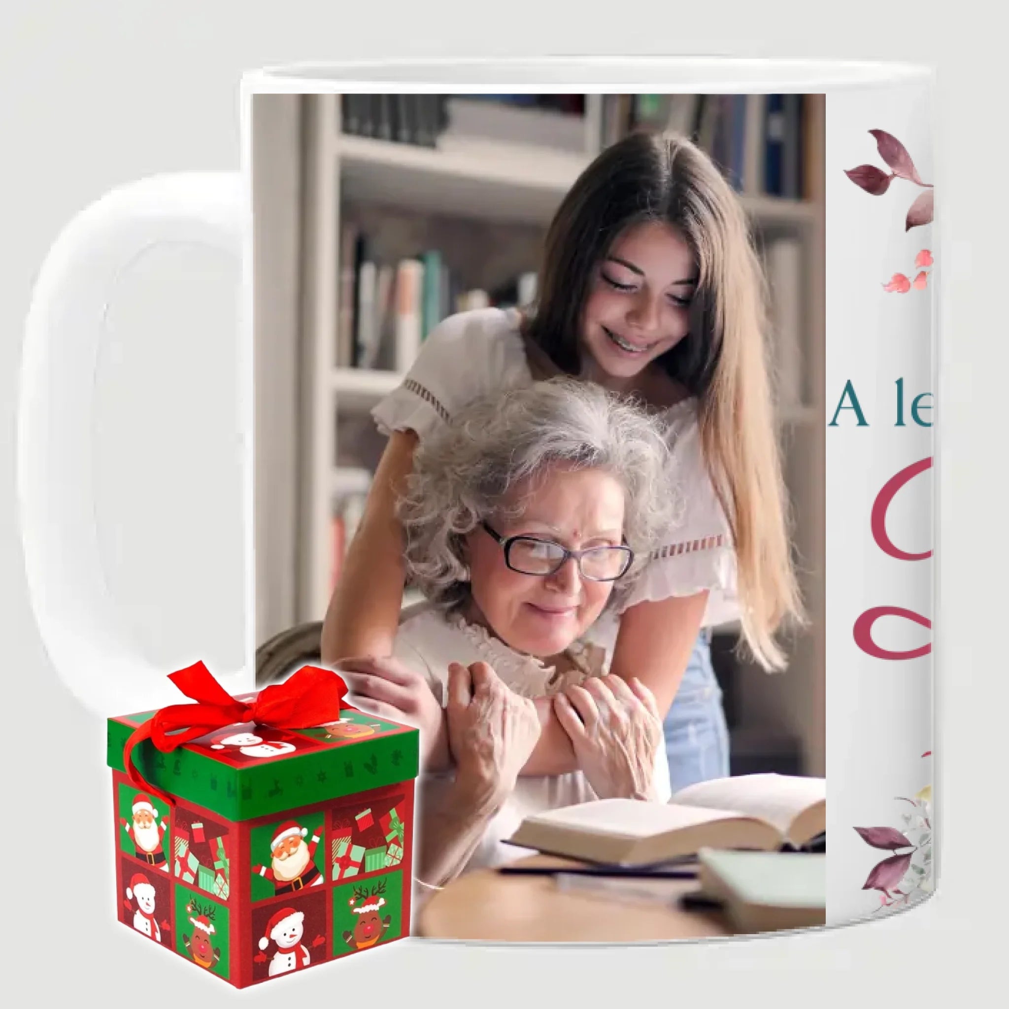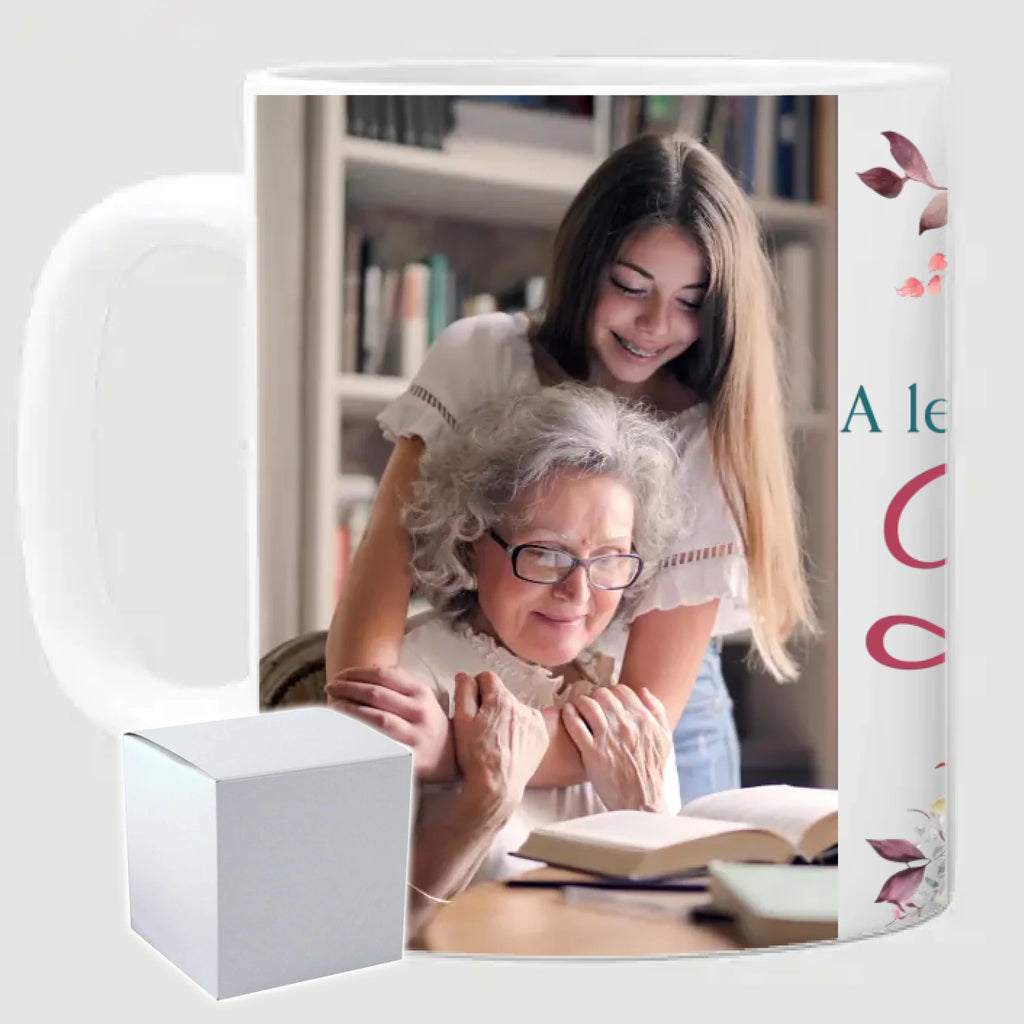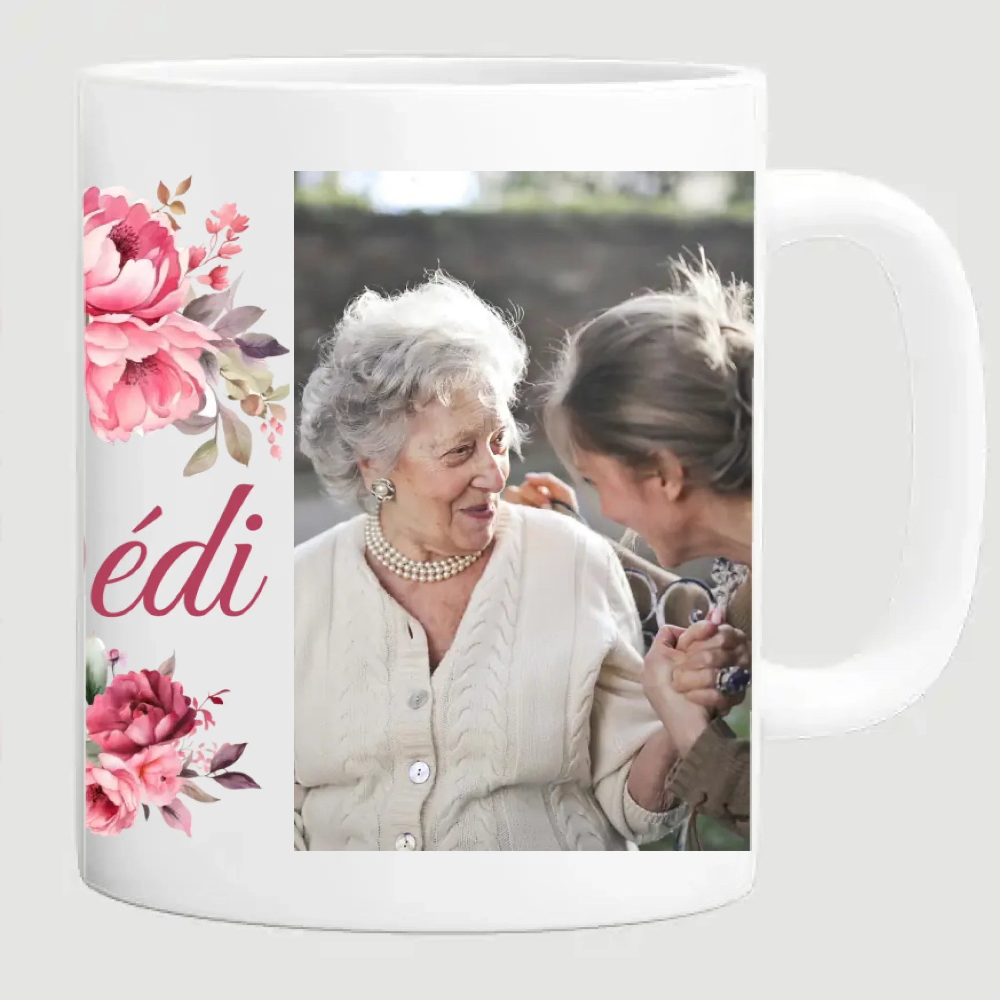 Egyedi anyák napi fényképes bögre a saját fotóddal. Az egyedi fényképes bögre remek ajándék Anyák napjára és születésnapra is. Az egyedi bögre nyomtatása nagyon magas hőfokon történik, ezáltal az anyag szerkezetébe sütjük bele, így a nyomat rendkívül tartós lesz és nem kopik, nem fakul ki. A fényképes bögréhez bármilyen fotót választhatsz, illetve feliratot is adhatsz hozzá.