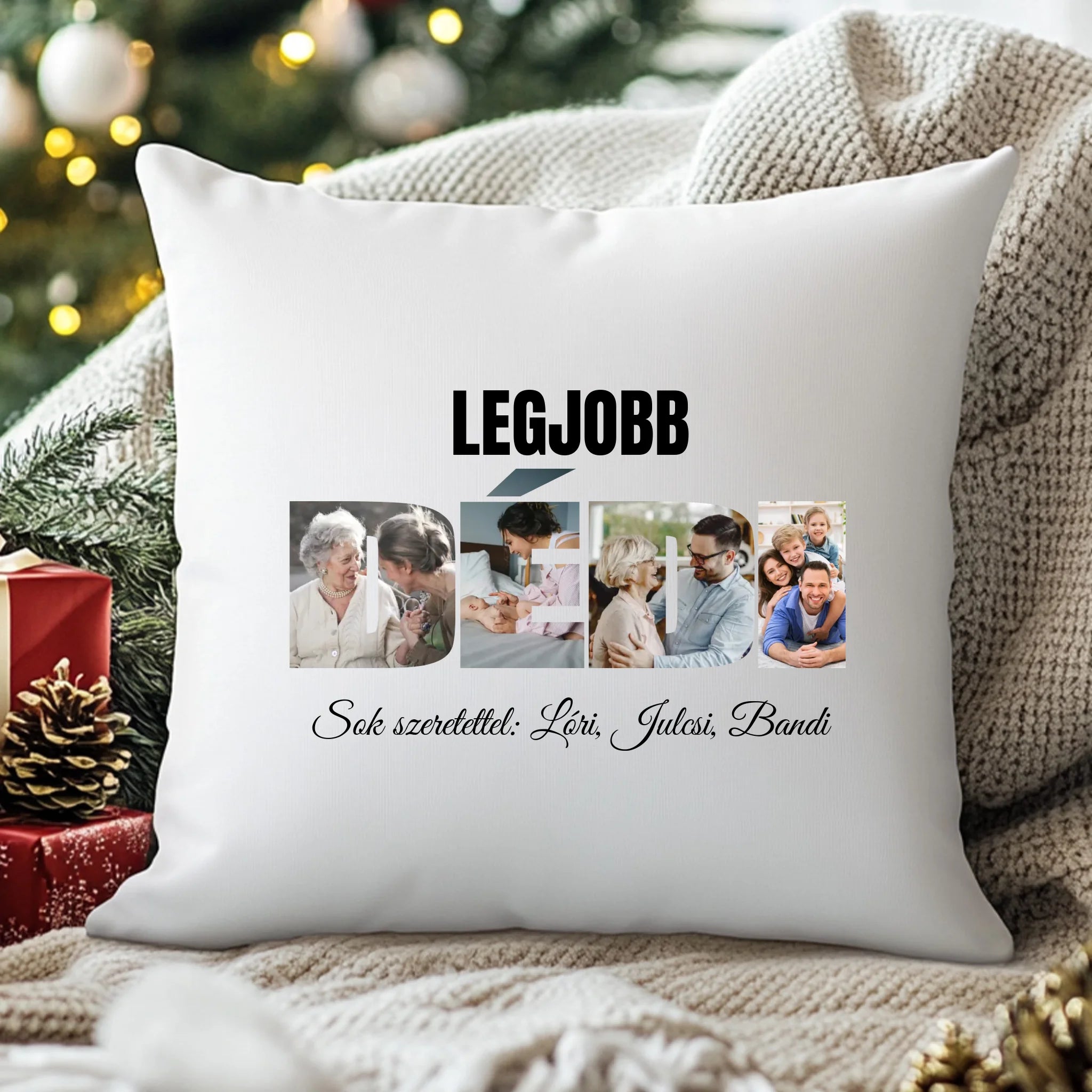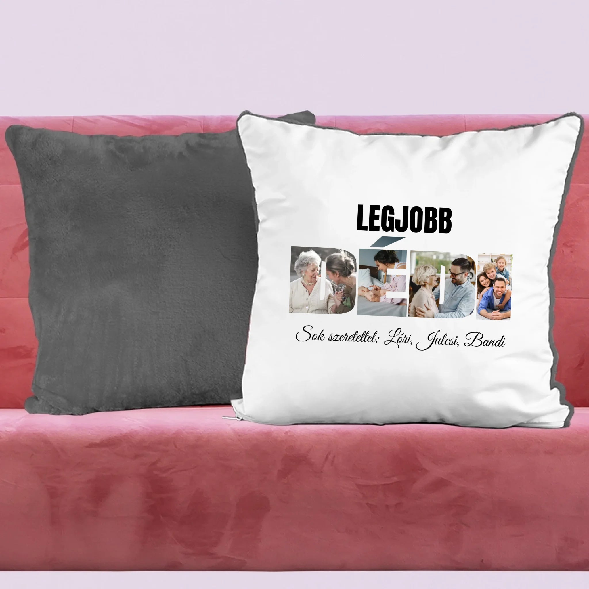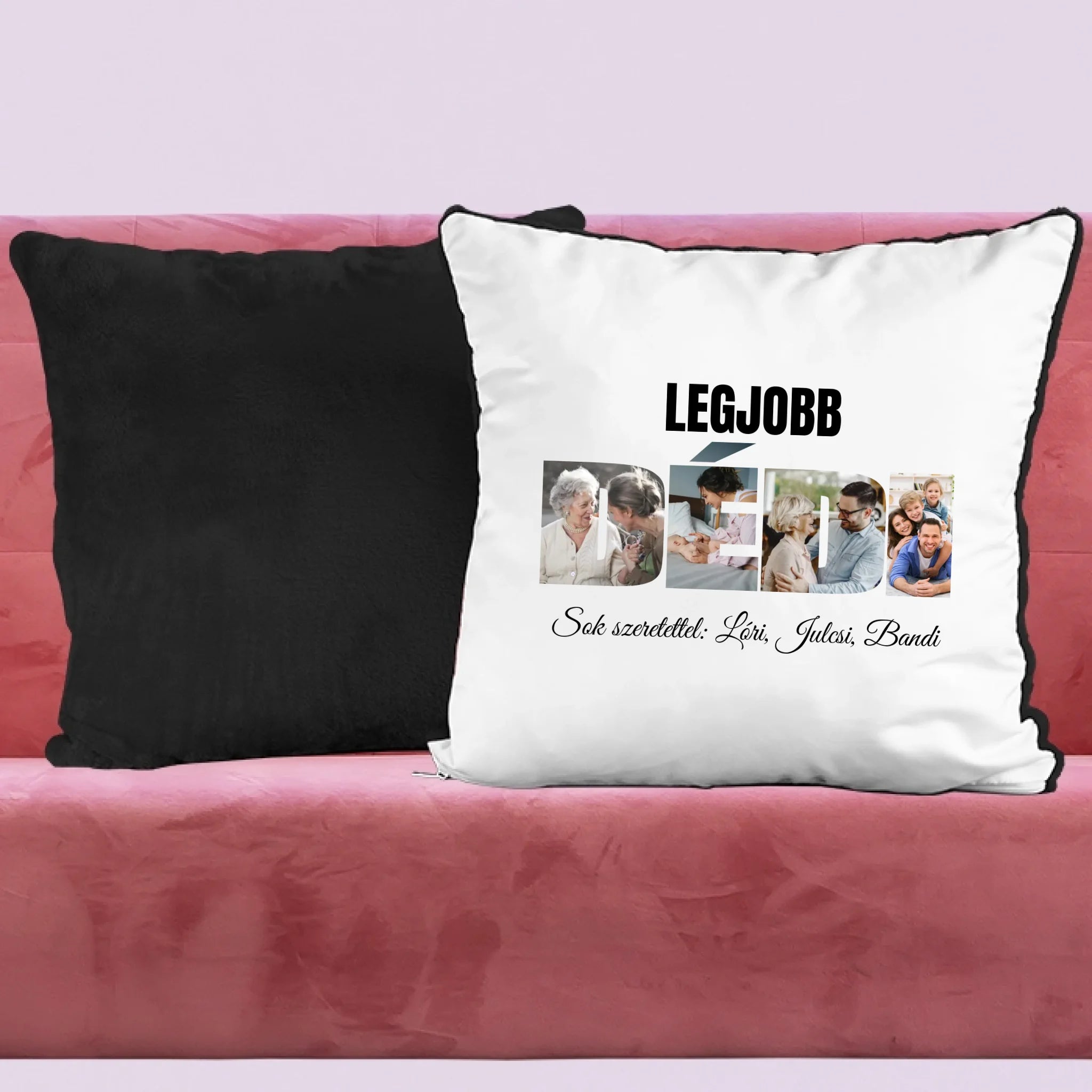 Egyedi párna anyák napjára dédimamának, melyre saját képet is kérhetsz. A kedves felirat garantálja és a DÉDI formában kivágott képek garantáltan mosolyt csalnak nagymamád arcára, legyen szó anyák napjáról, születésnapról, névnapról vagy karácsonyról.