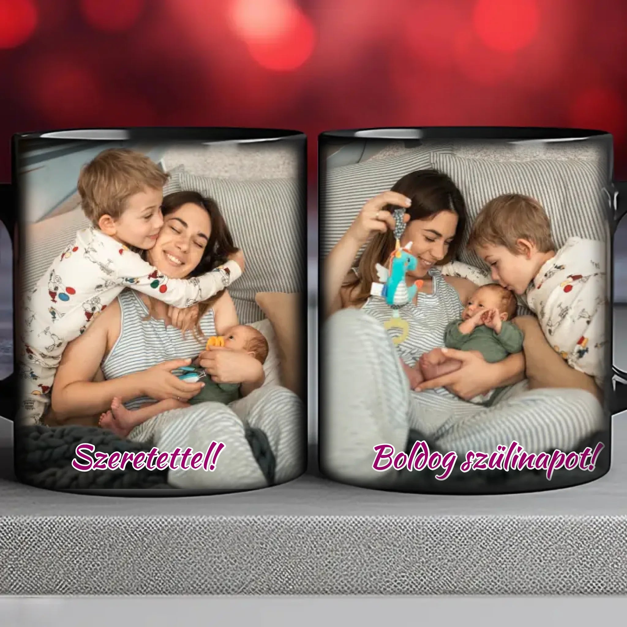 Egyedi fényképes bögre a saját fotóddal. Az egyedi fényképes bögre remek ajándék szinte bármilyen alkalomra. Az egyedi bögre nyomtatása nagyon magas hőfokon történik, ezáltal az anyag szerkezetébe sütjük bele, így a nyomat rendkívül tartós lesz és nem kopik, nem fakul ki. A fényképes bögréhez bármilyen fotót választhatsz, illetve feliratot is adhatsz hozzá.