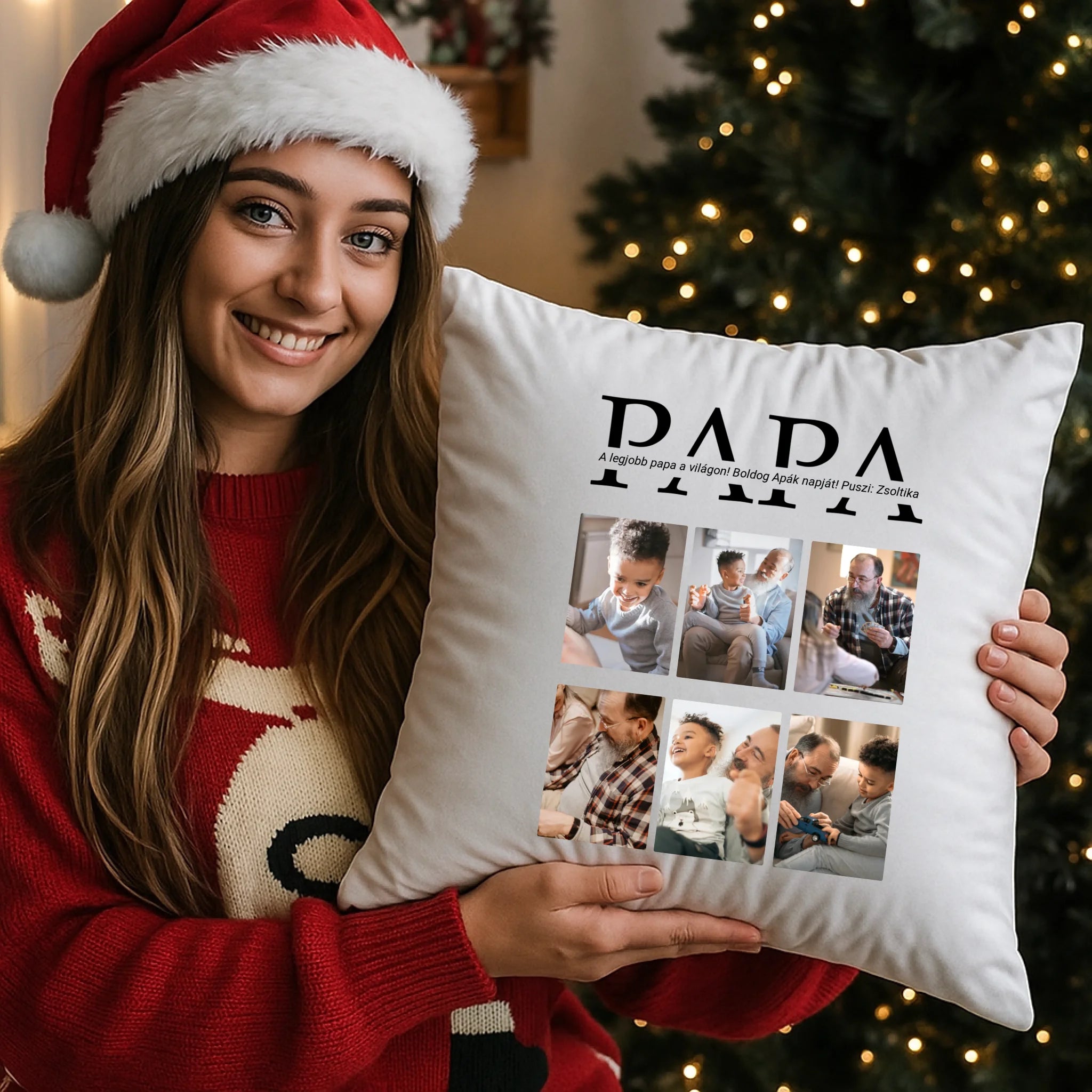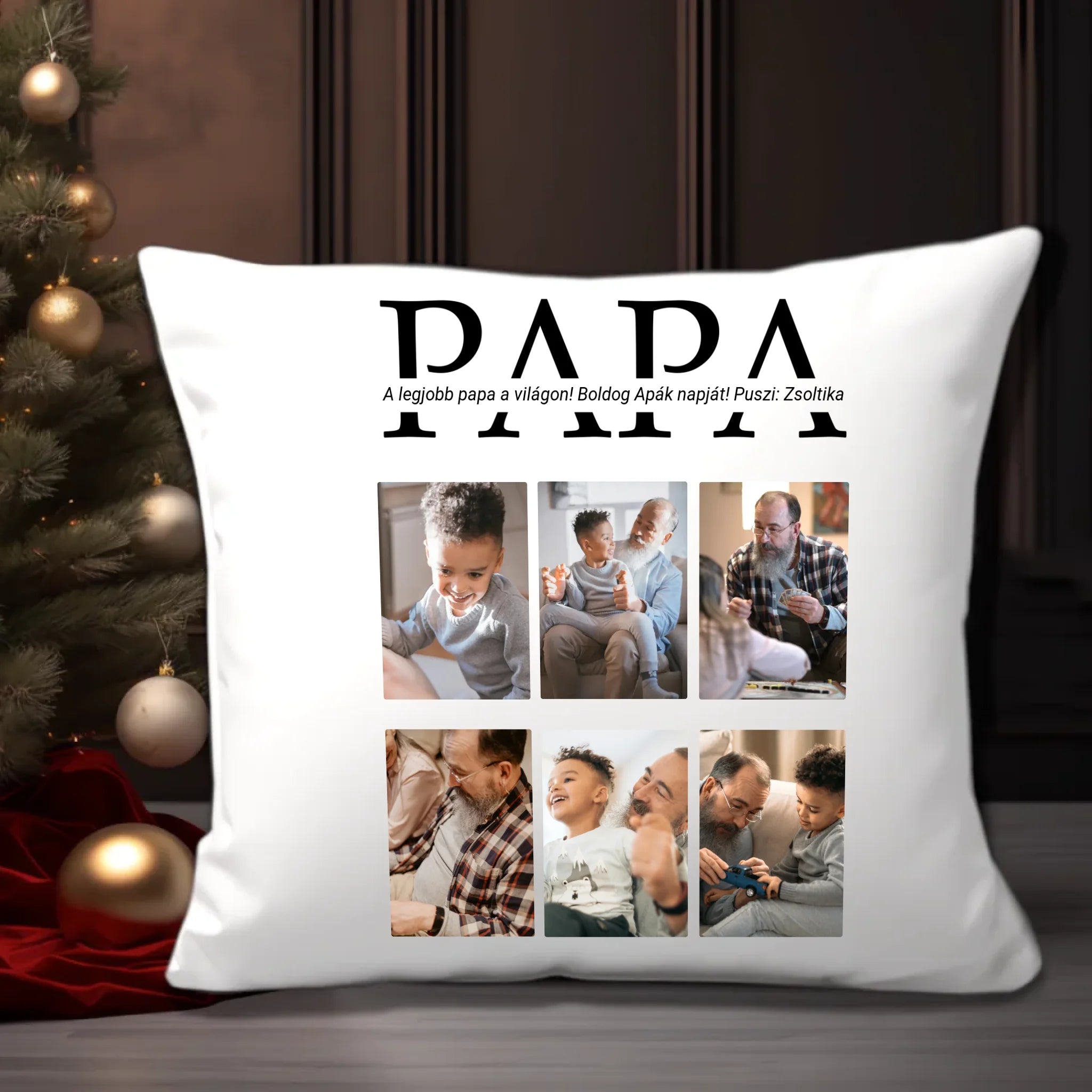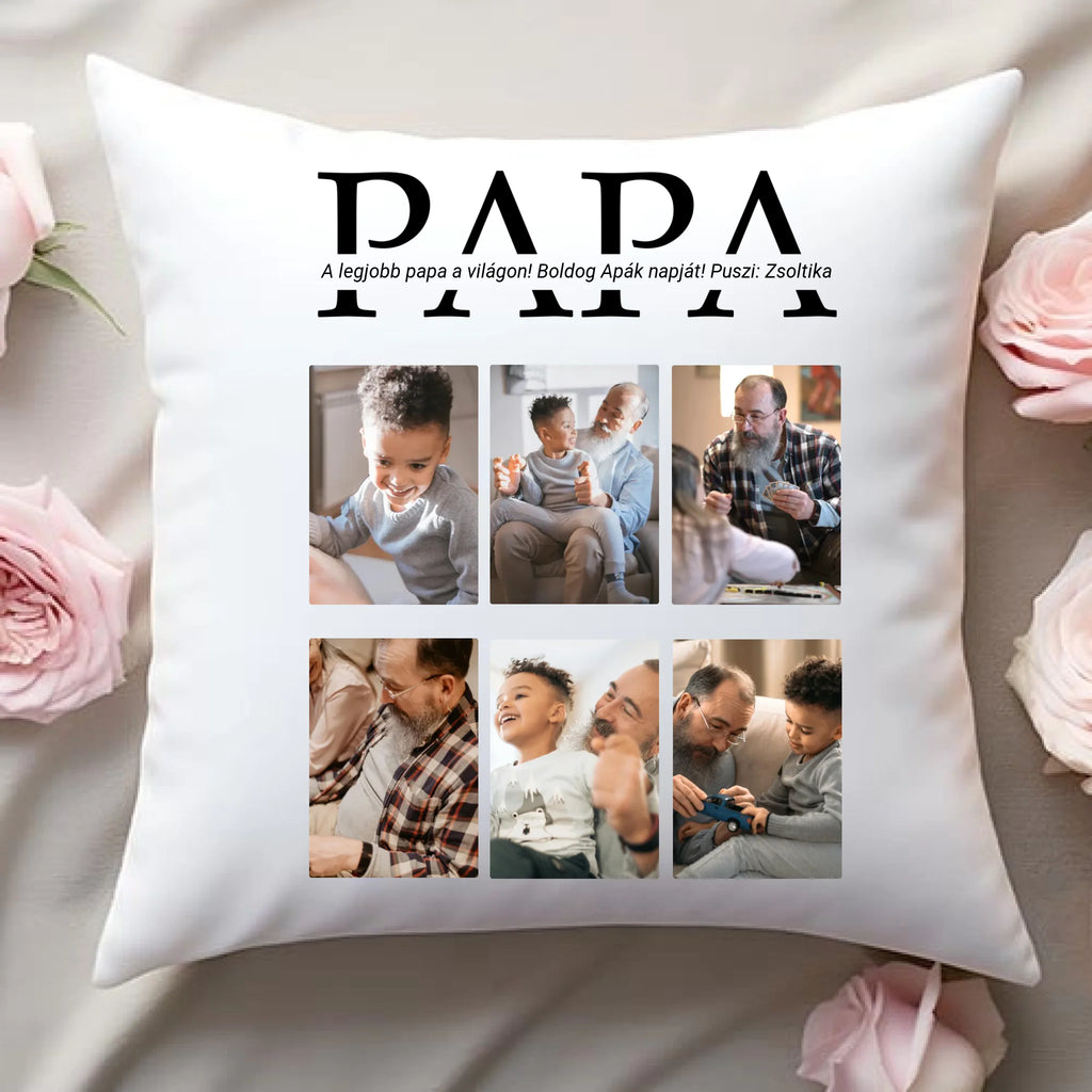 Apák napi 6 képes párna papának egyedi szöveggel - egyedi fényképes párna papának apák napjára, névnapra, születésnapra, karácsonyra...vagy csak úgy!