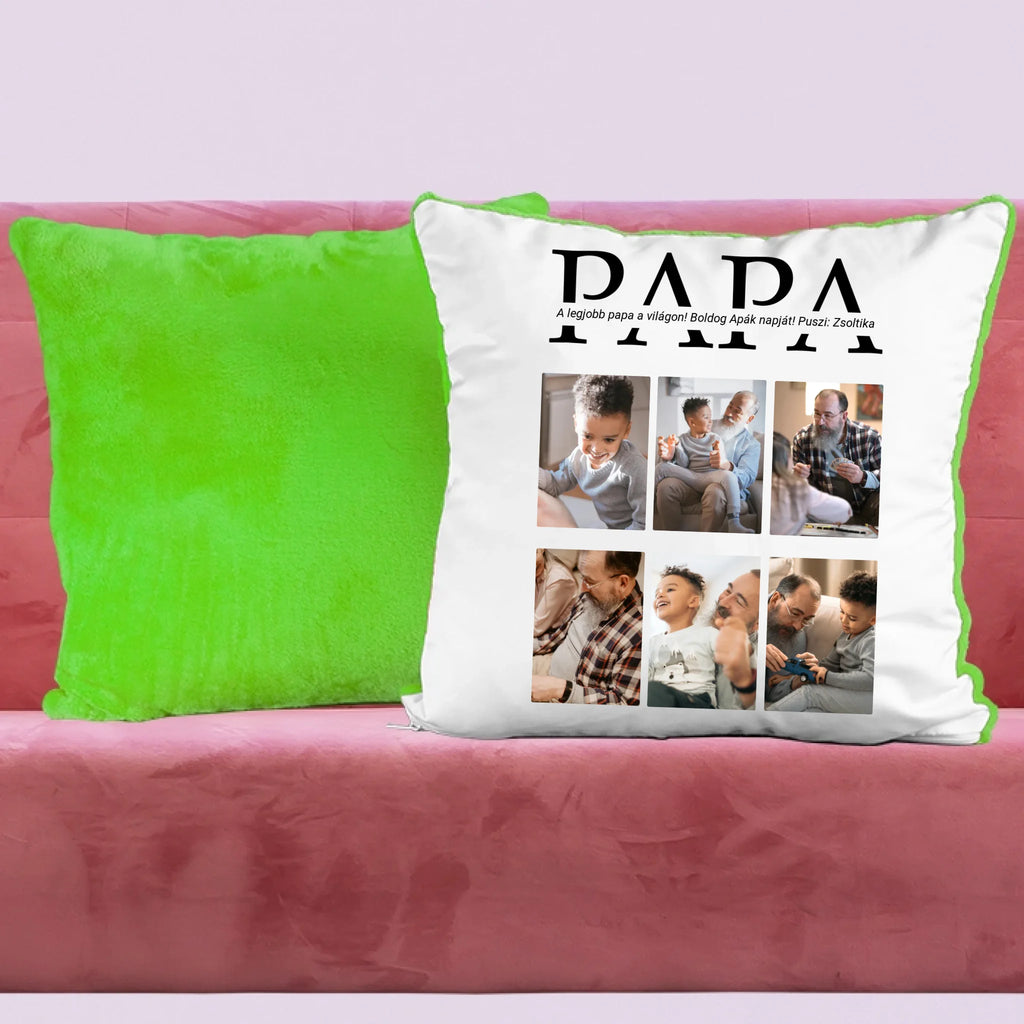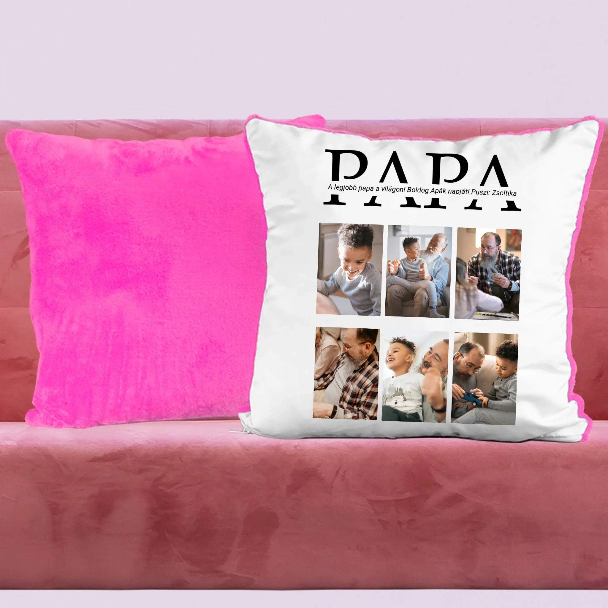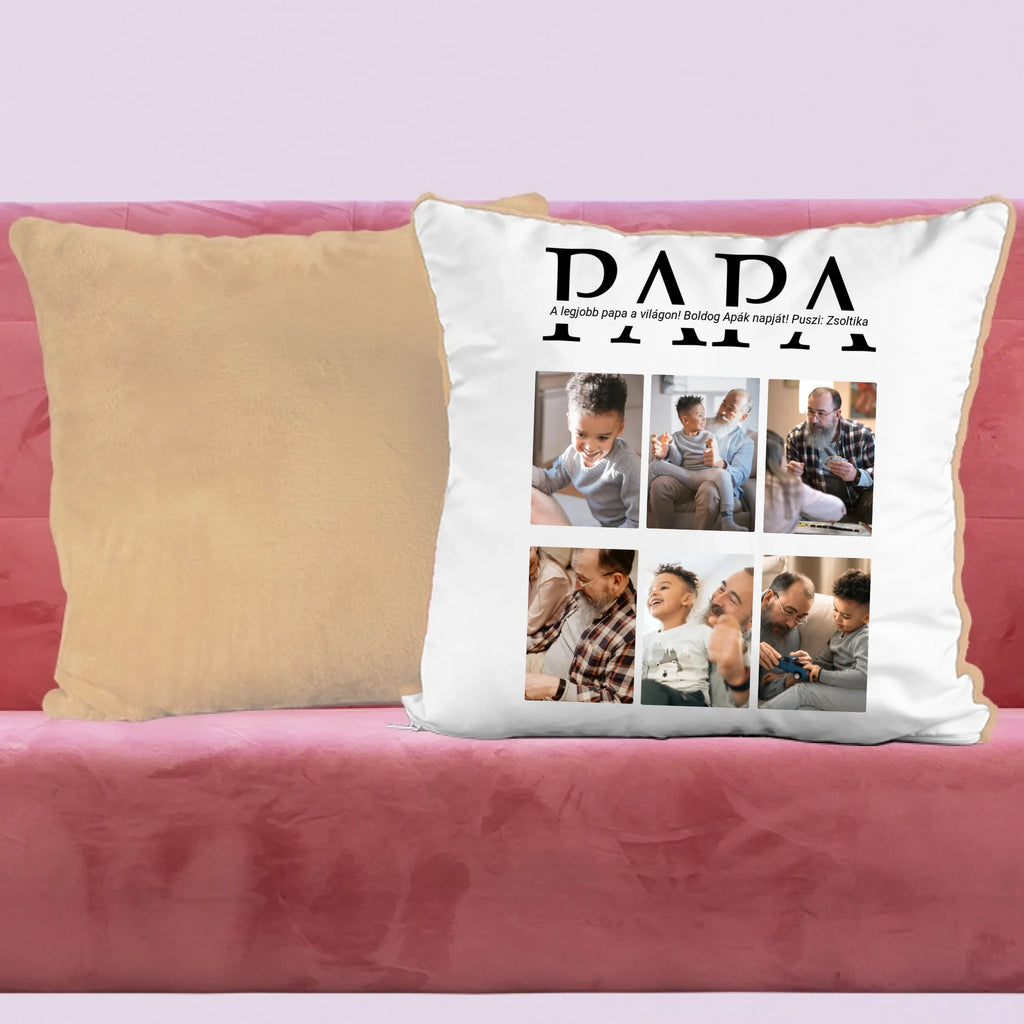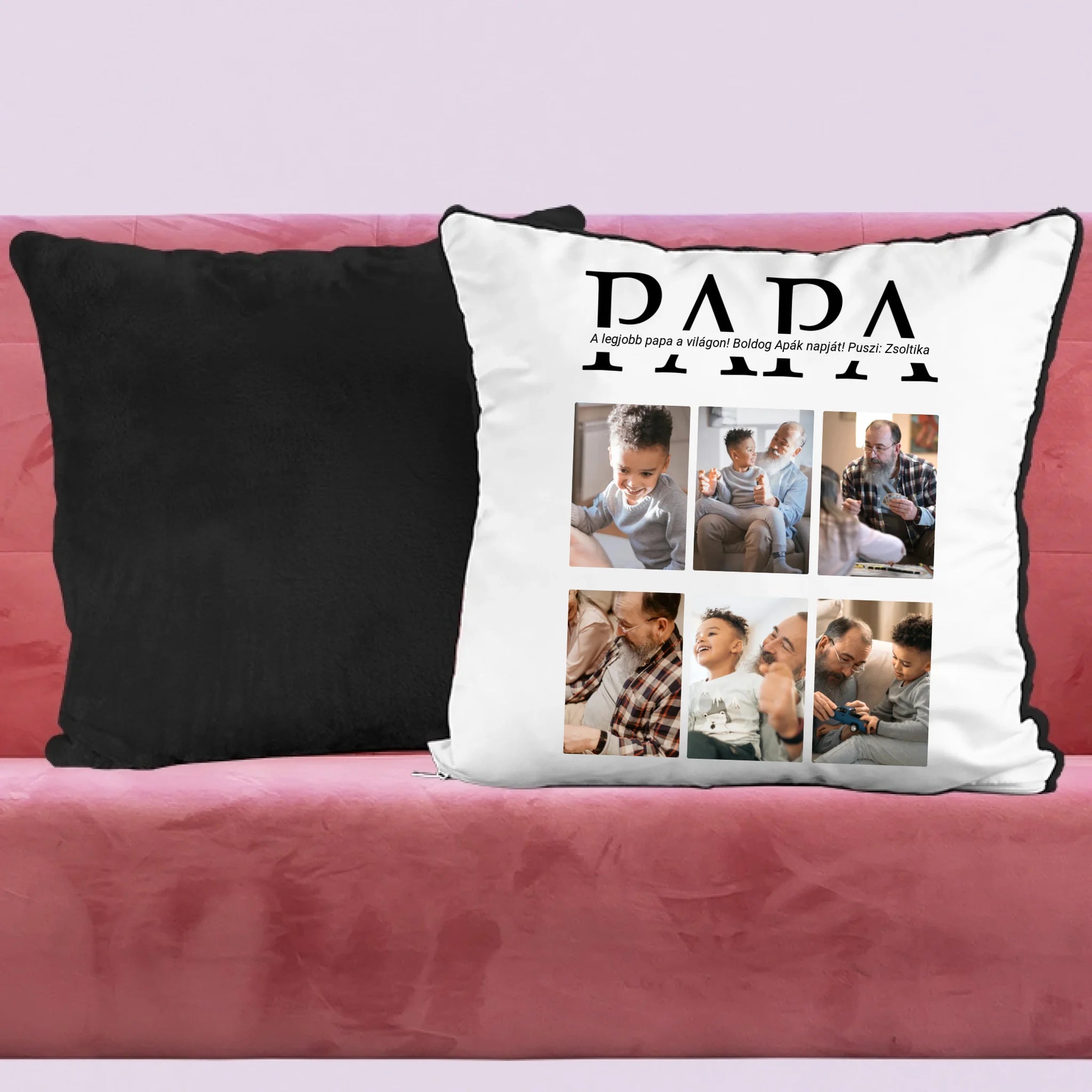 Apák napi 6 képes párna papának egyedi szöveggel - egyedi fényképes párna papának apák napjára, névnapra, születésnapra, karácsonyra...vagy csak úgy!