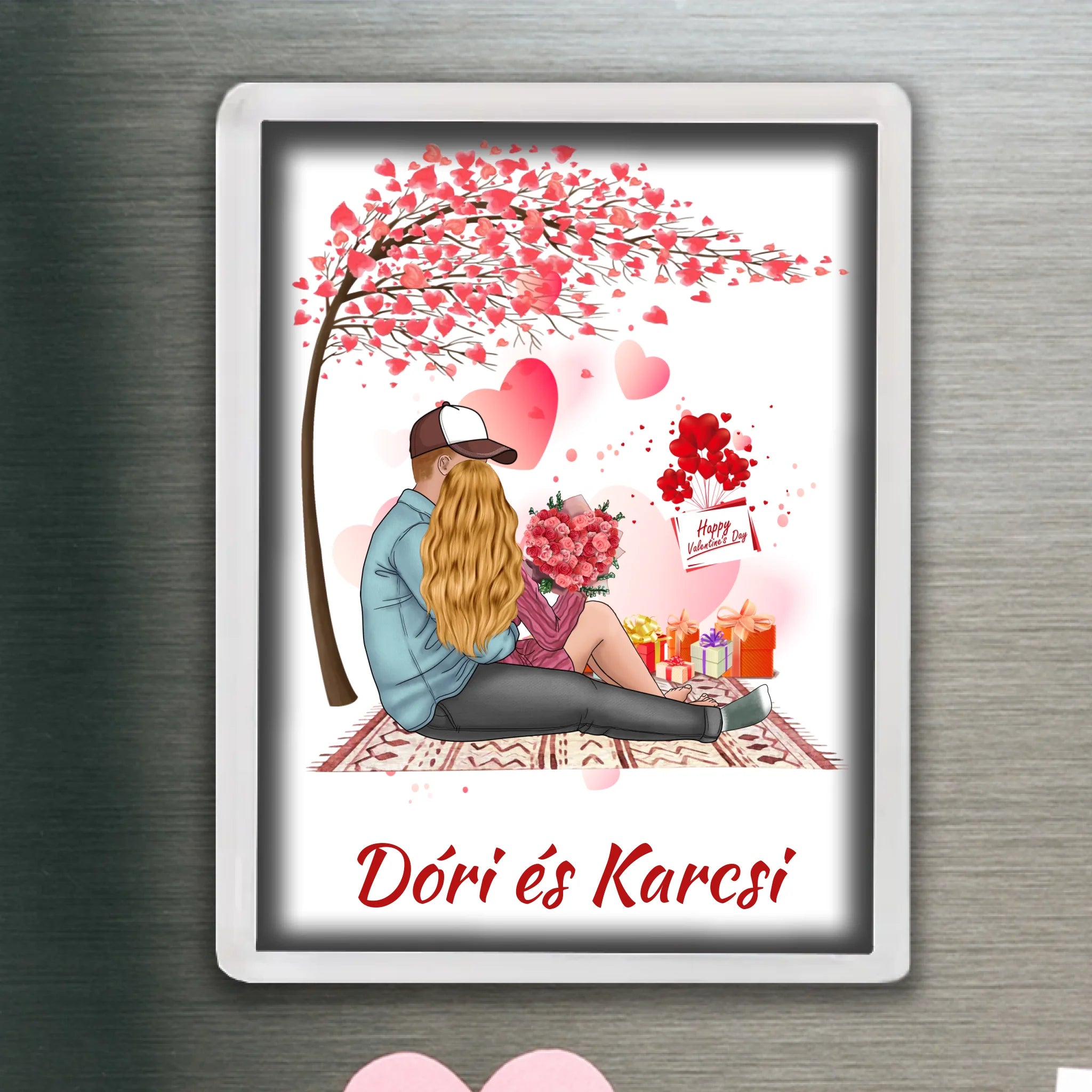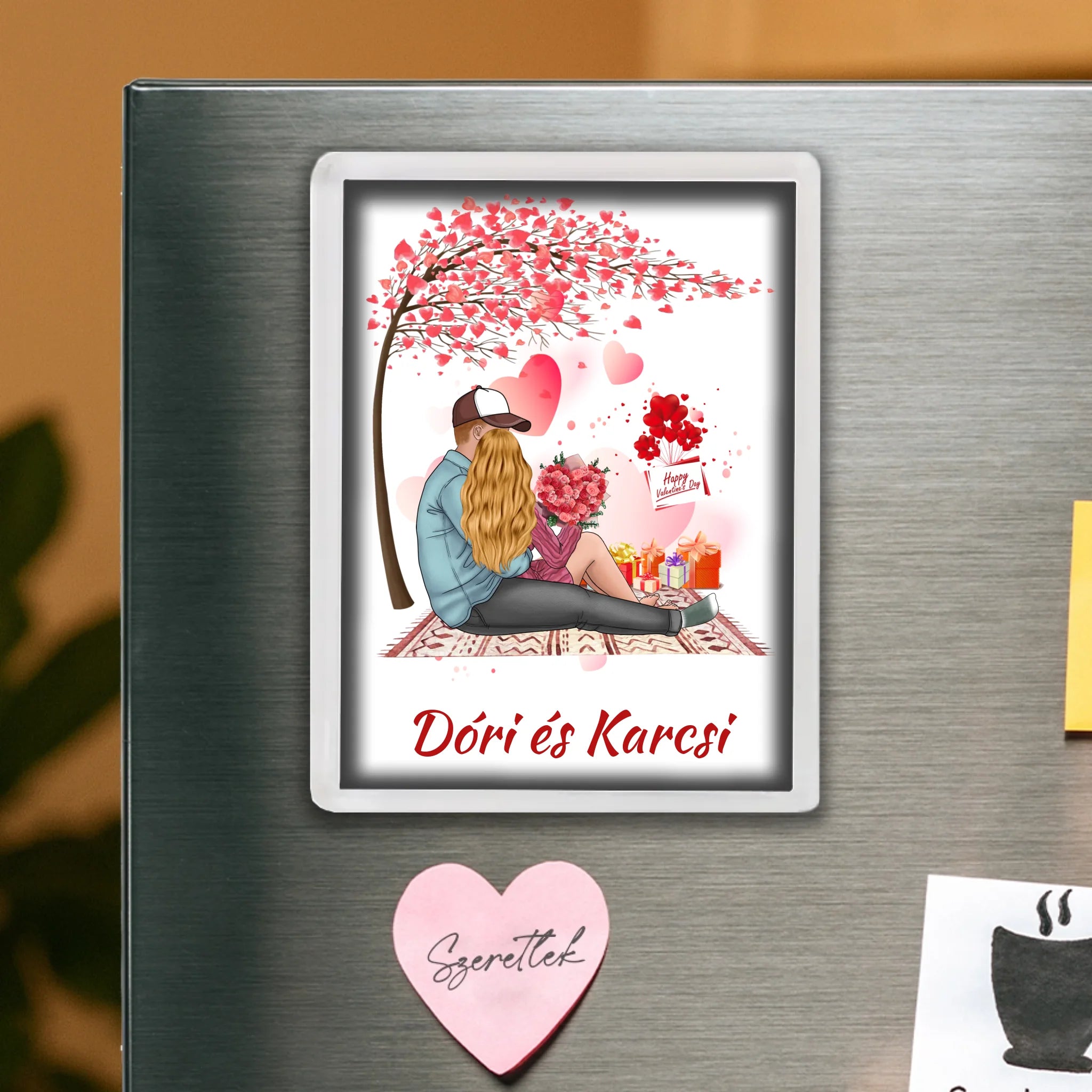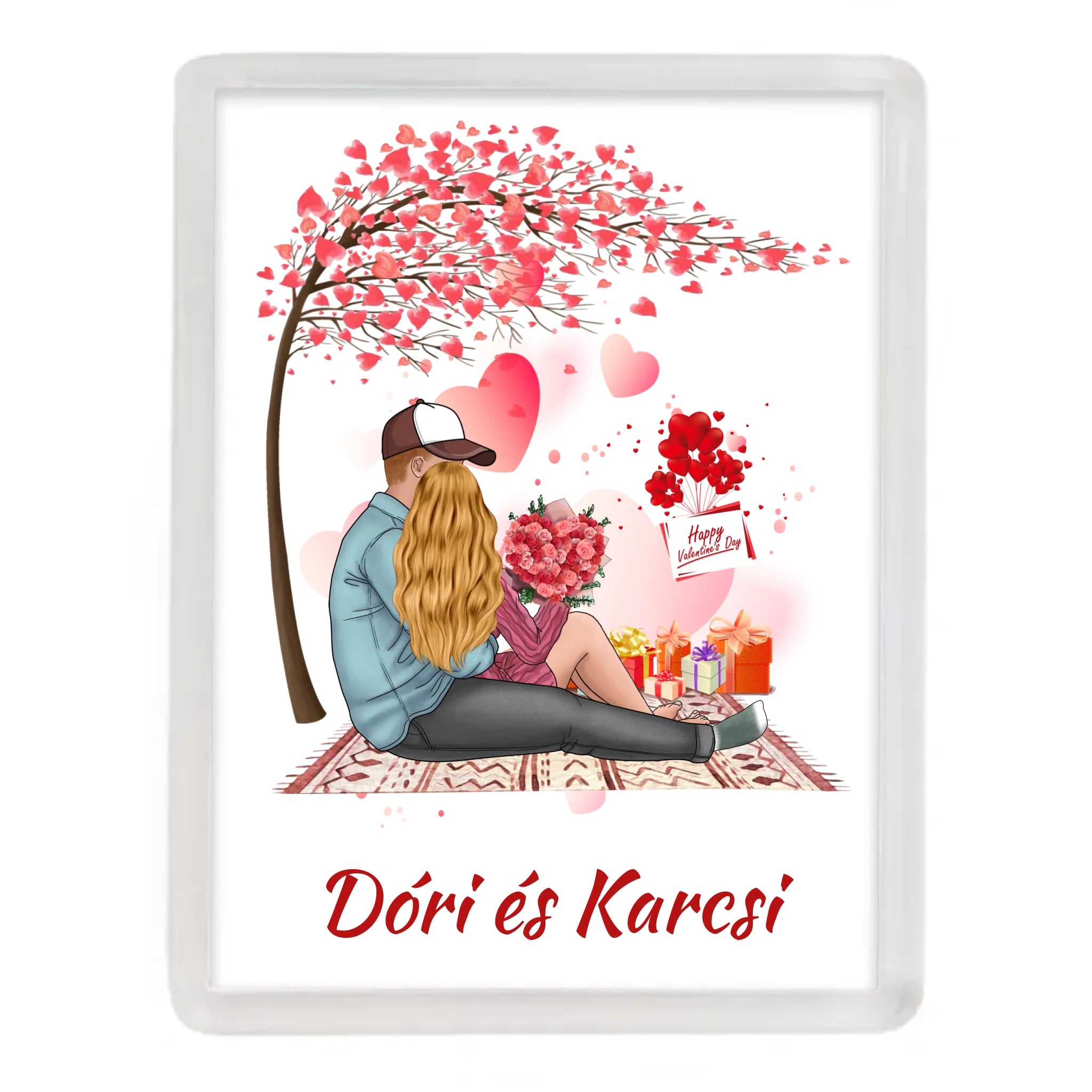 Egyedi hűtőmágnes Valentin napi mintával. Az egyedi hűtőmágnes remek ajándék párodnak Valentin napra, évfordulóra.