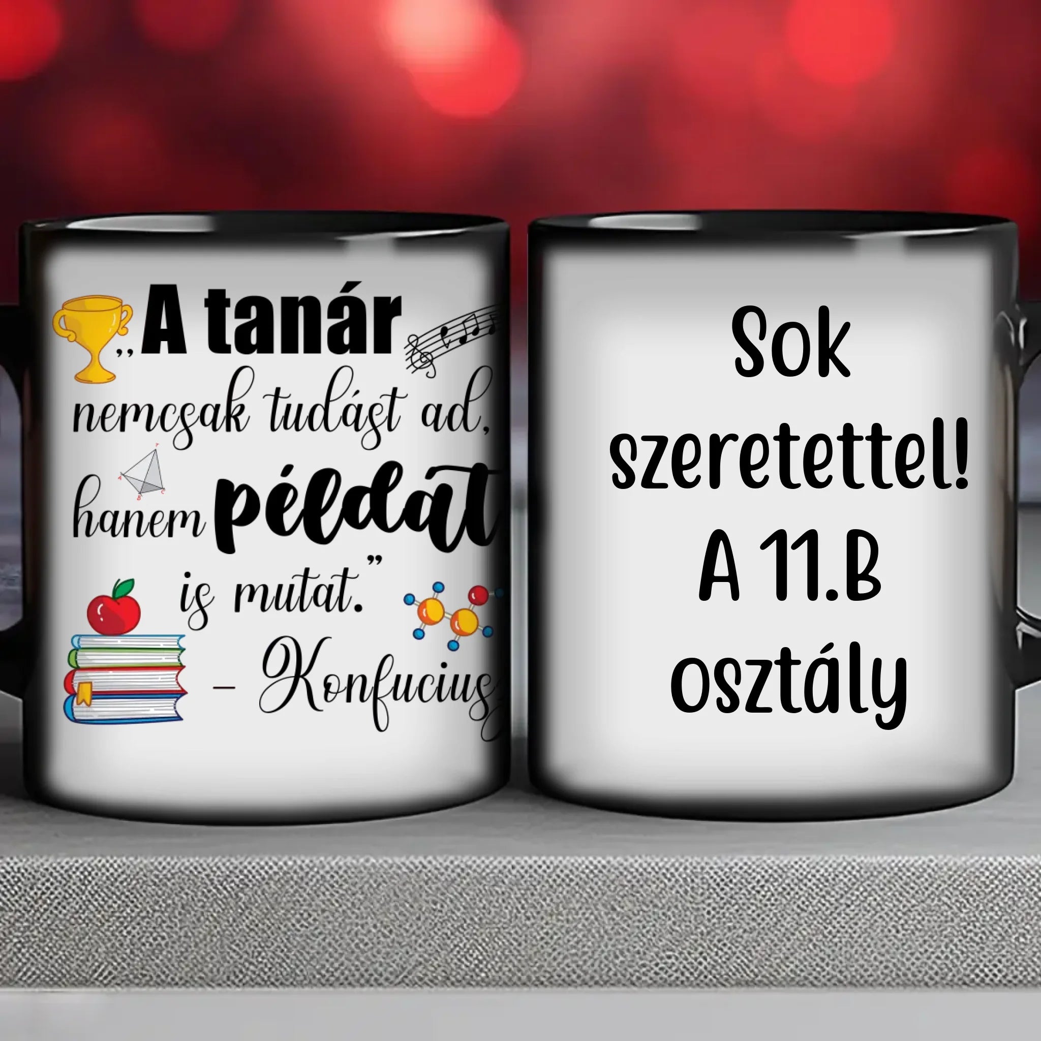 Egyedi bögre a tanároknak. Az egyedi bögre remek ajándék pedagógusnapra. Az egyedi bögre nyomtatása nagyon magas hőfokon történik, ezáltal az anyag szerkezetébe sütjük bele, így a nyomat rendkívül tartós lesz és nem kopik, nem fakul ki. A fényképes bögréhez bármilyen fotót választhatsz, illetve feliratot is adhatsz hozzá.