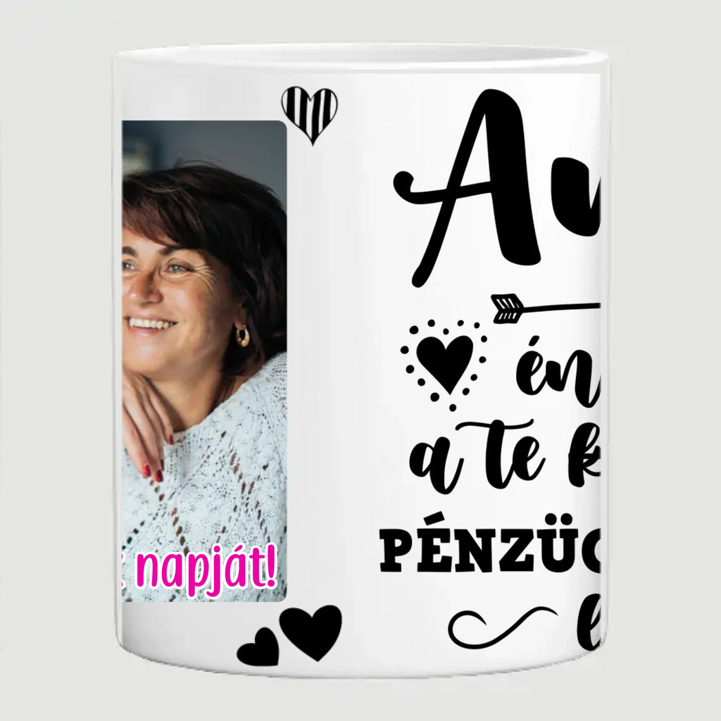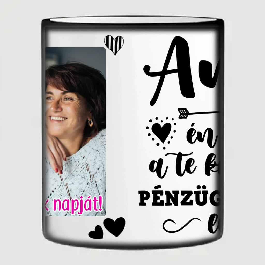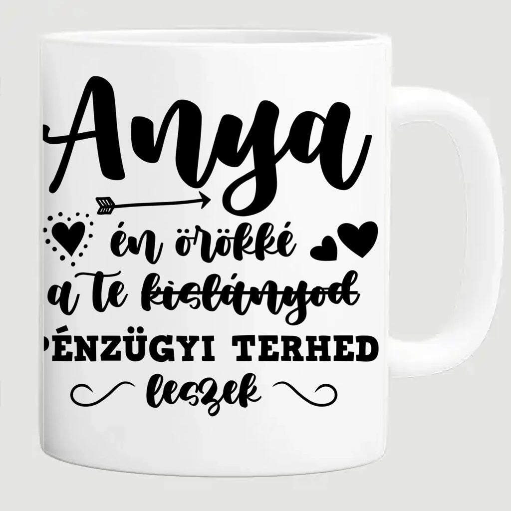 Anya én örökké a Te kislányod, pénzügyi terhed leszek - Vicces anyák napi bögre saját fotóval