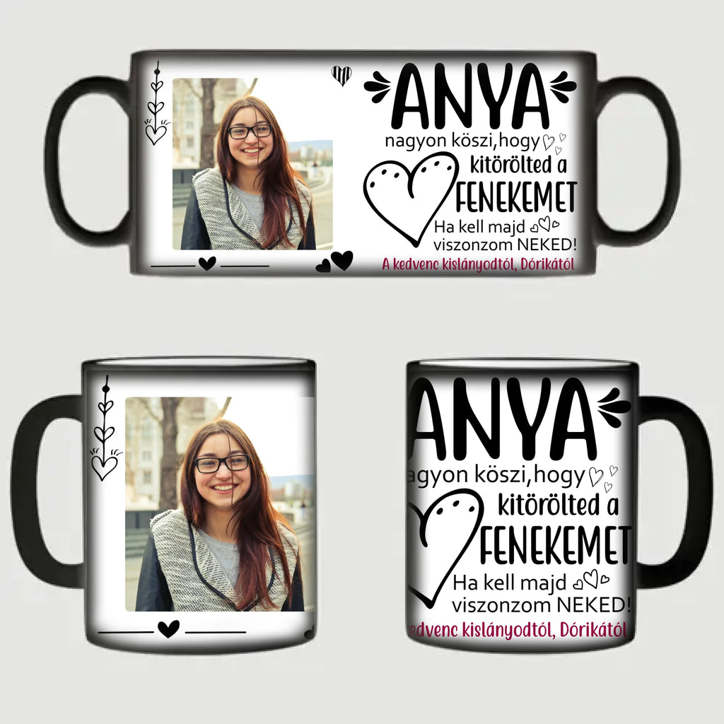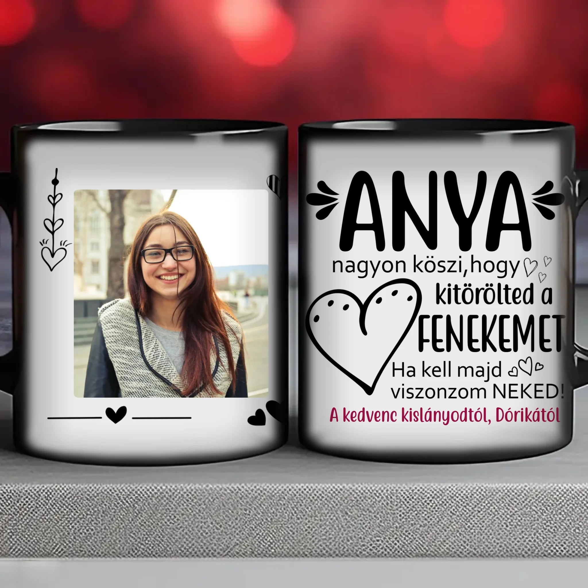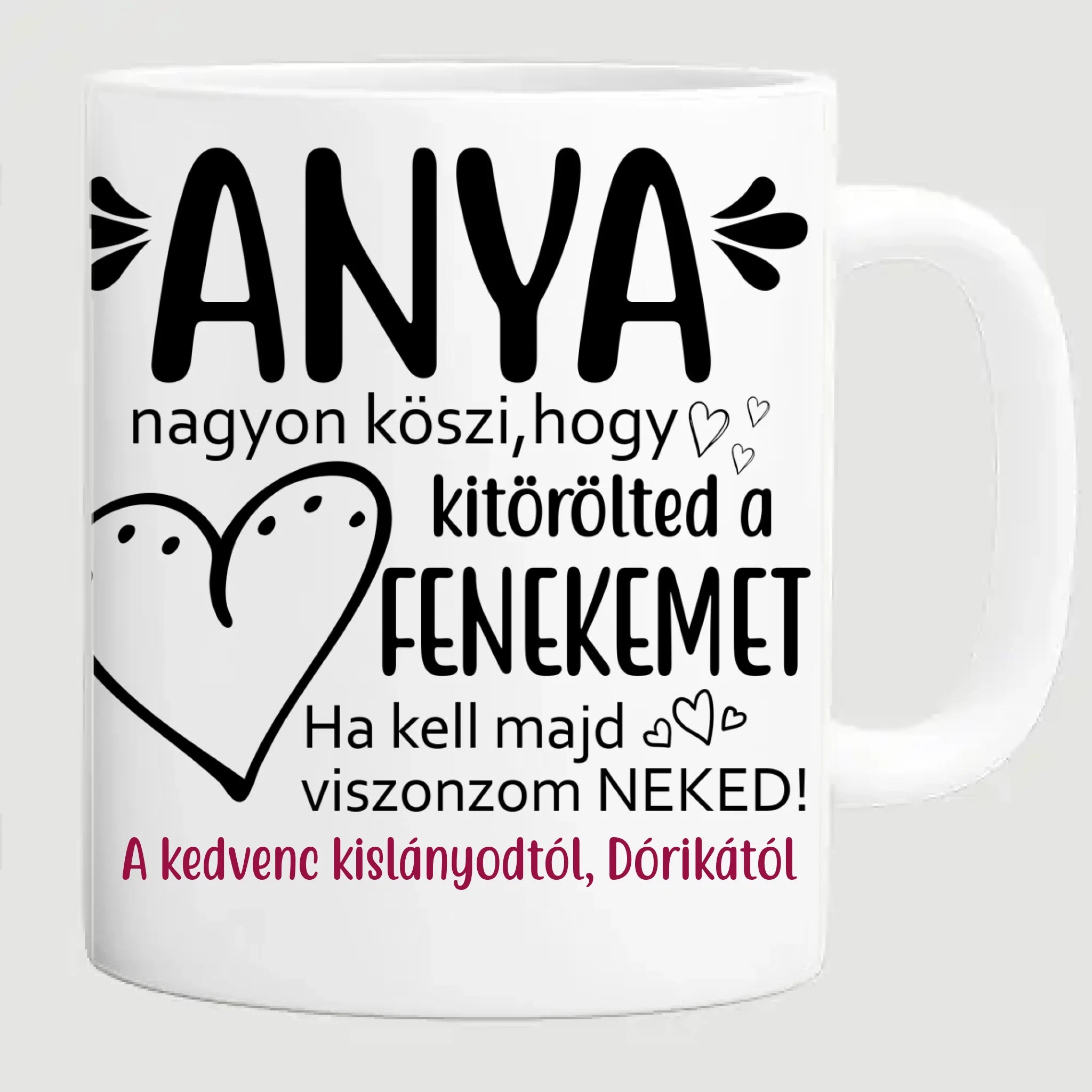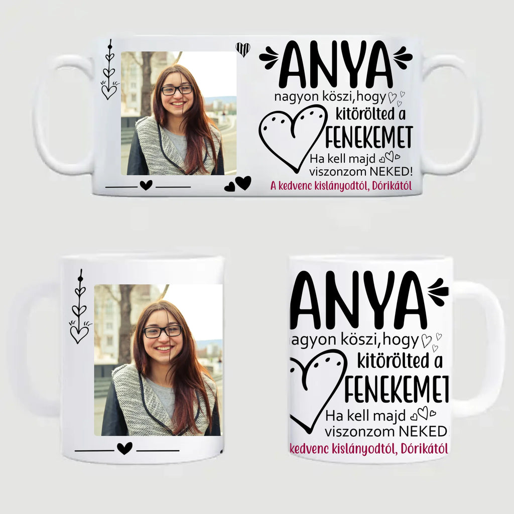 Anya nagyon köszi, hogy kitörölted a fenekemet. Ha kell majd viszonzom neked - Vicces anyák napi bögre saját fotóval