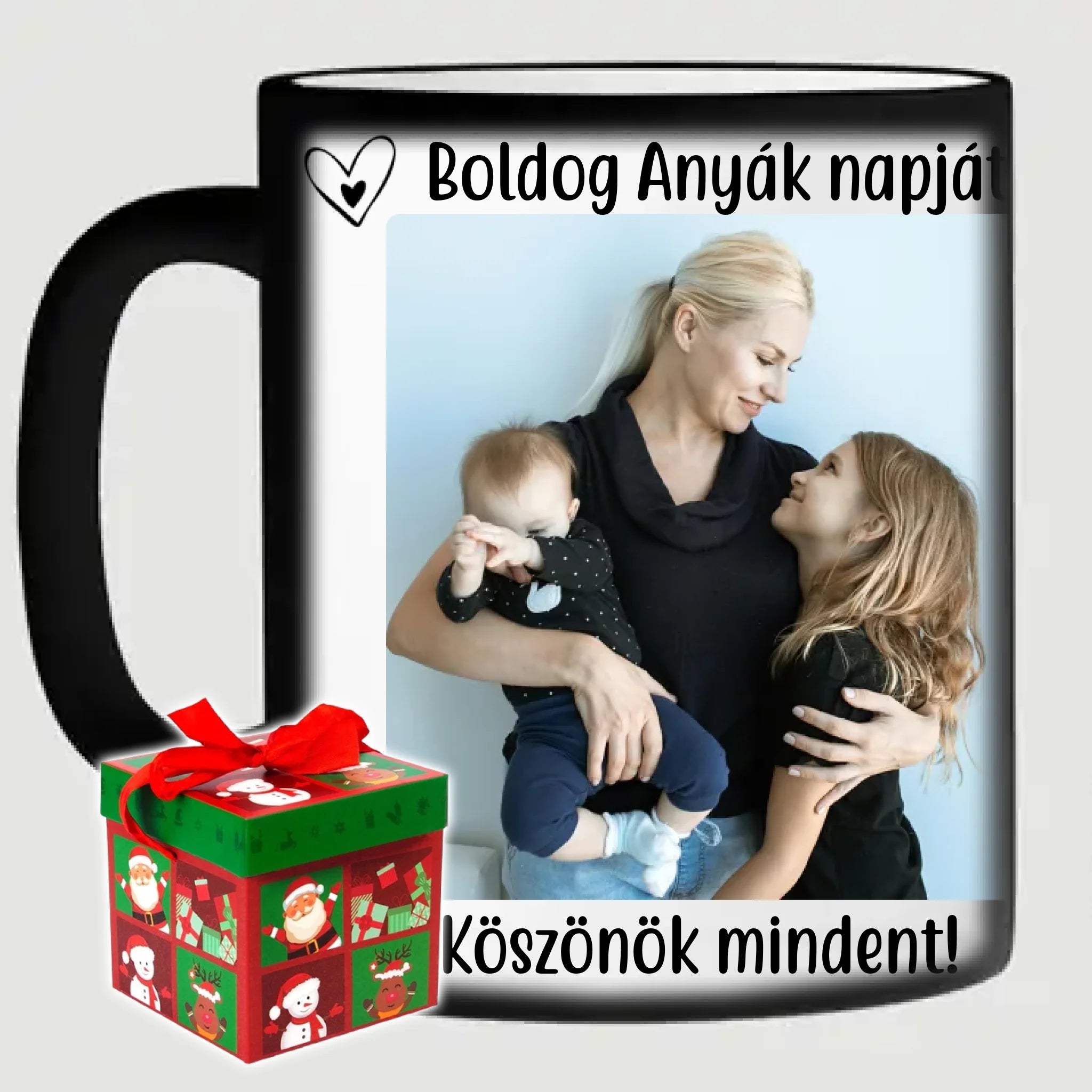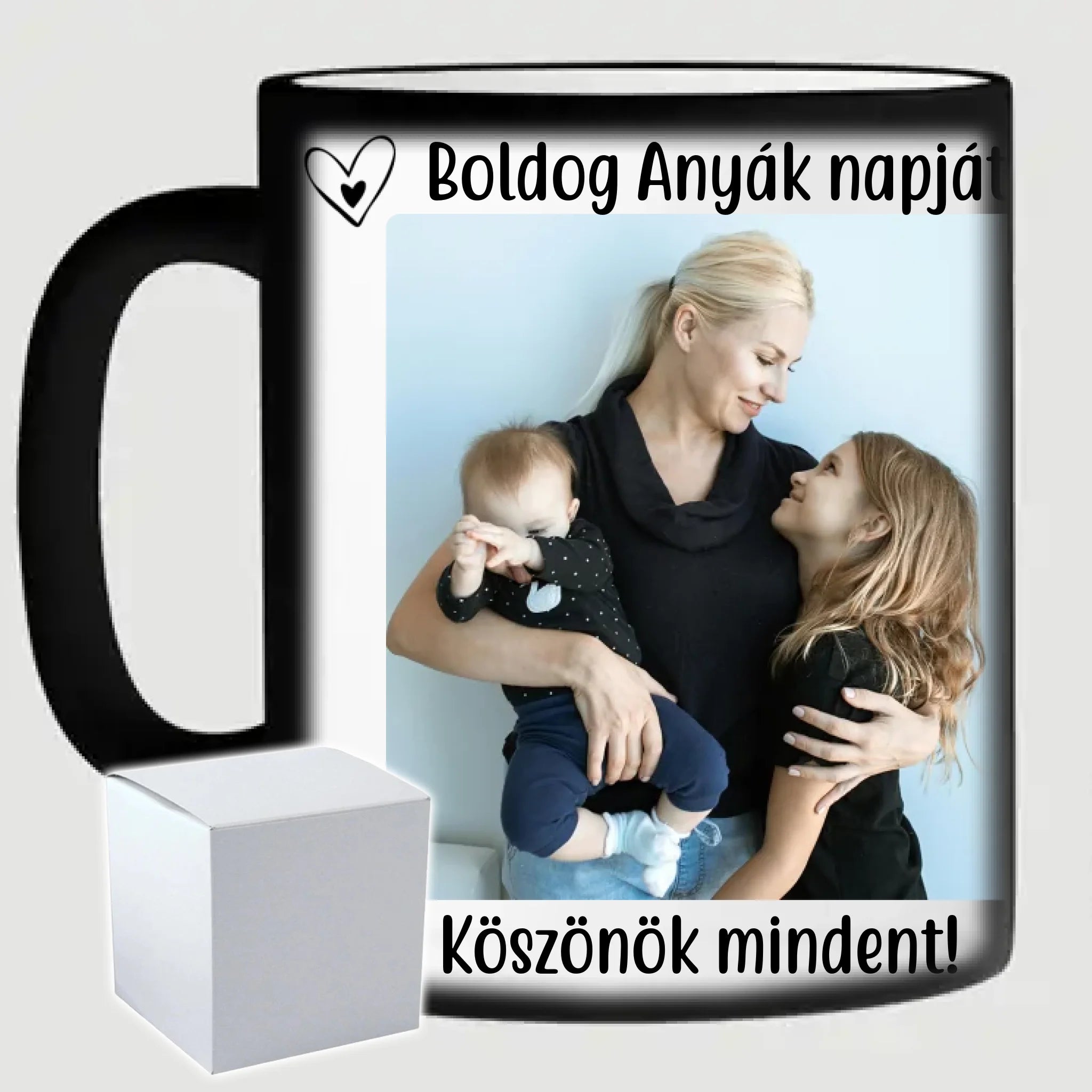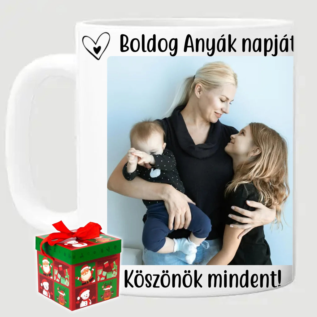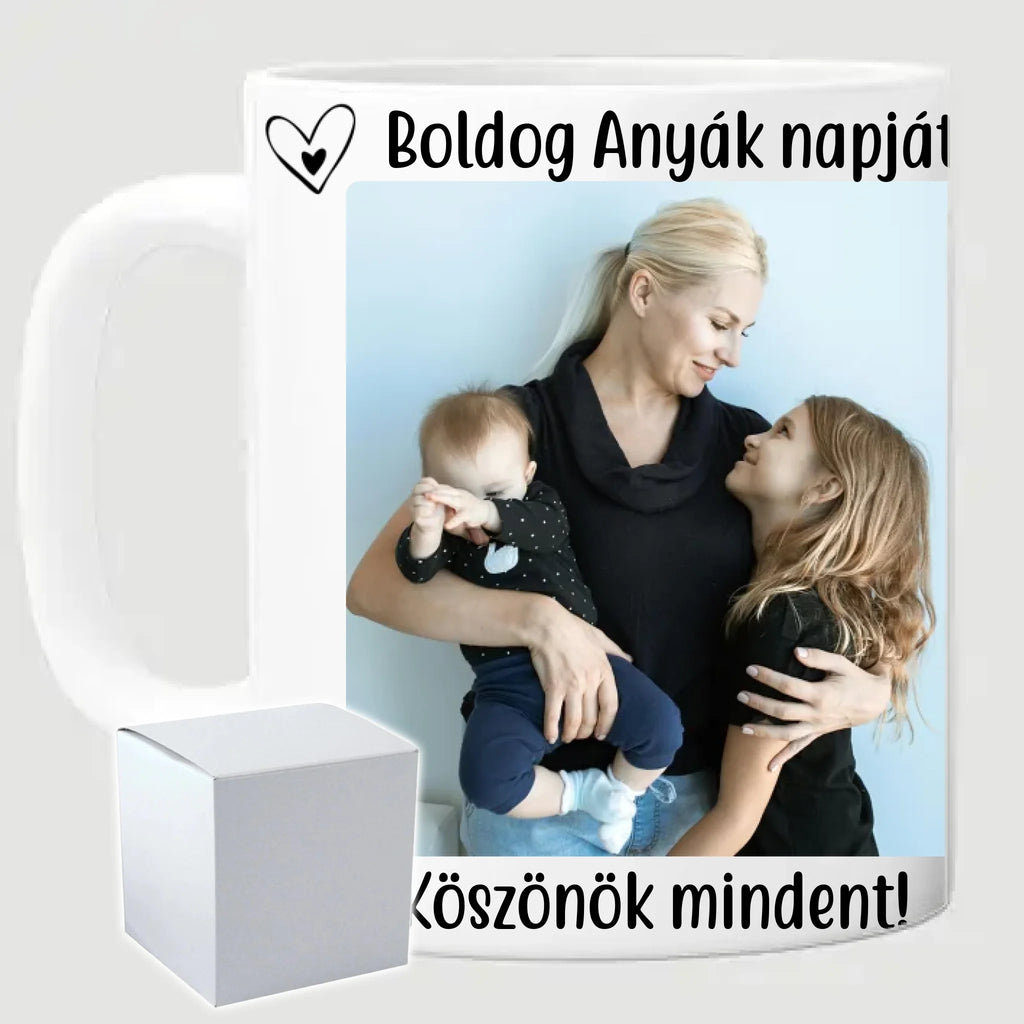 Egyedi anyák napi fényképes bögre a saját fotóddal. Az egyedi fényképes bögre remek ajándék Anyák napjára és születésnapra is. Az egyedi bögre nyomtatása nagyon magas hőfokon történik, ezáltal az anyag szerkezetébe sütjük bele, így a nyomat rendkívül tartós lesz és nem kopik, nem fakul ki. A fényképes bögréhez bármilyen fotót választhatsz, illetve feliratot is adhatsz hozzá.