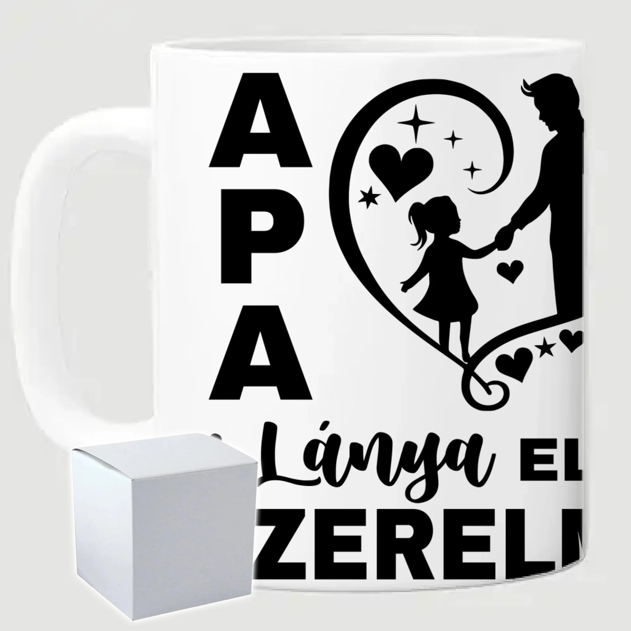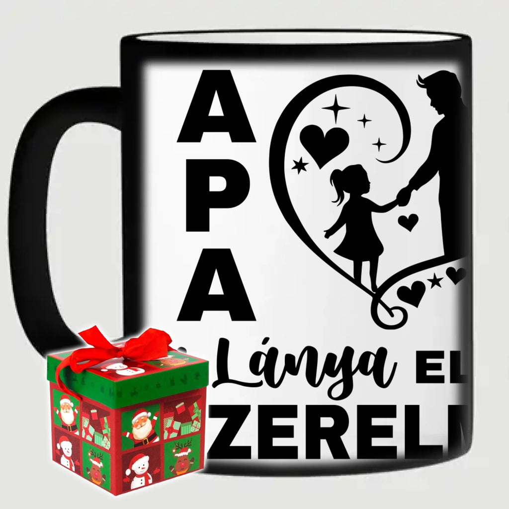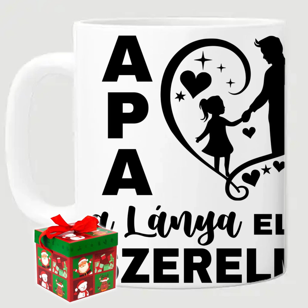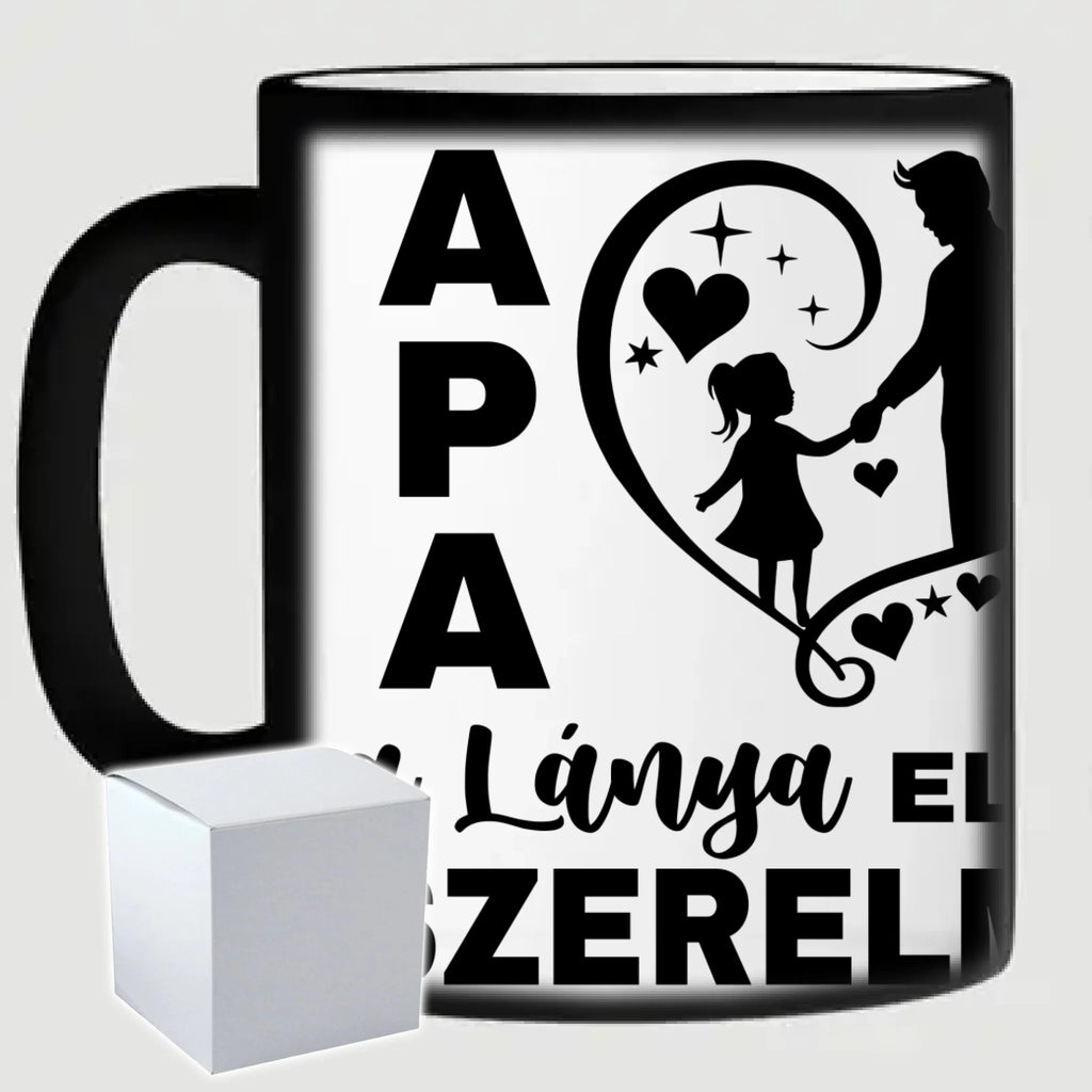 Egyedi fényképes bögre apának "Apa a lánya első szerelme" felirattal. Az egyedi fényképes bögre remek ajándék Apák napjára és születésnapra is. Az egyedi bögre nyomtatása nagyon magas hőfokon történik, ezáltal az anyag szerkezetébe sütjük bele, így a nyomat rendkívül tartós lesz és nem kopik, nem fakul ki. A fényképes bögréhez bármilyen fotót választhatsz, illetve feliratot is adhatsz hozzá.